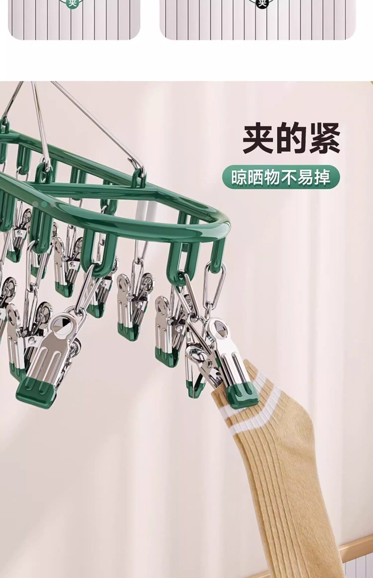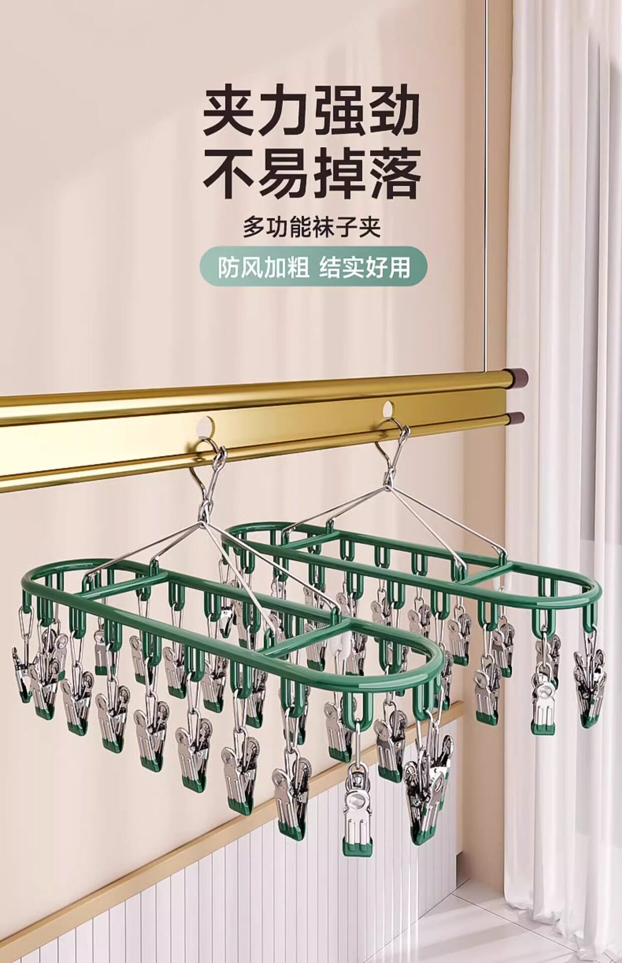 Stainless Steel Sock Drying Rack Windproof Clip Multifunctional Household Clothes Hanger Balcony Baby Windproof Drying Tool