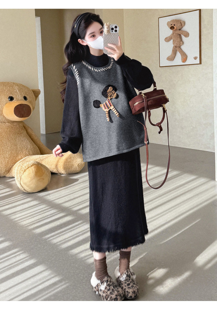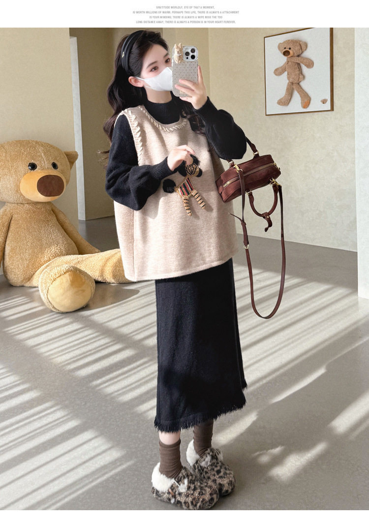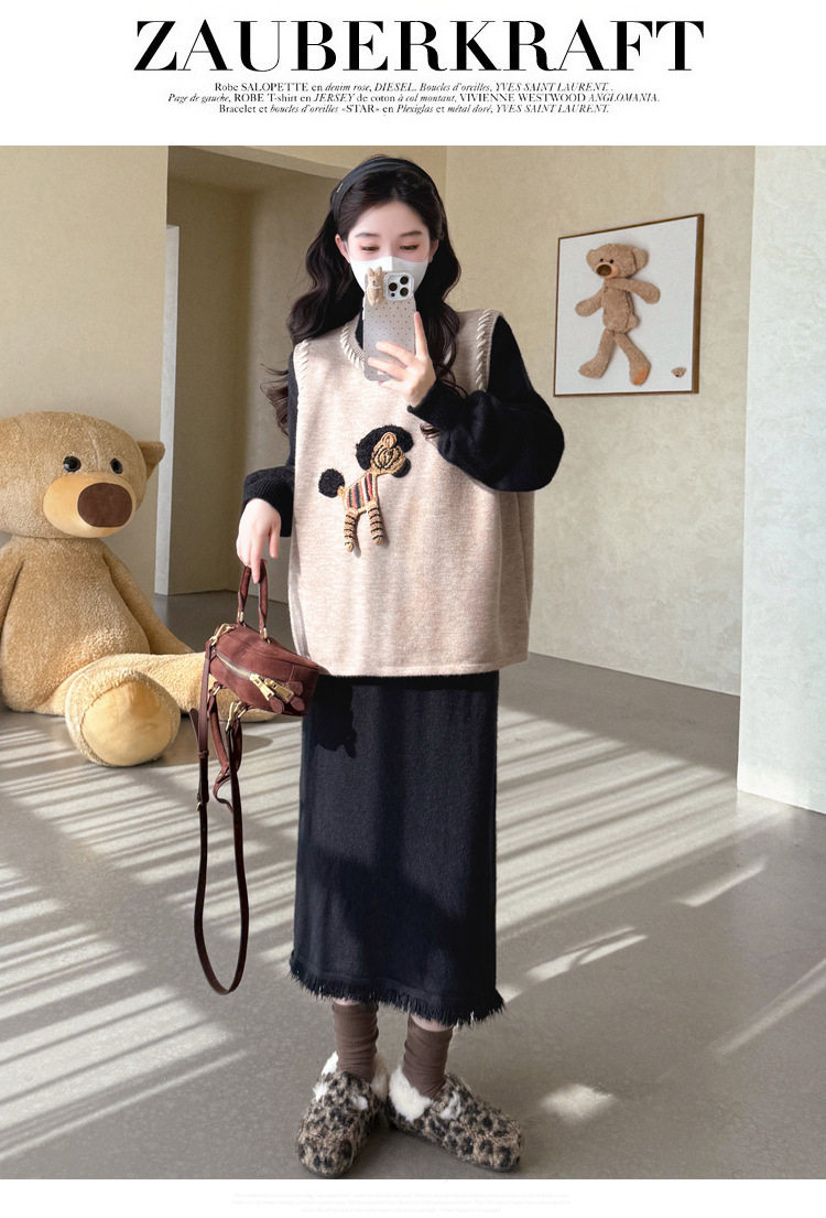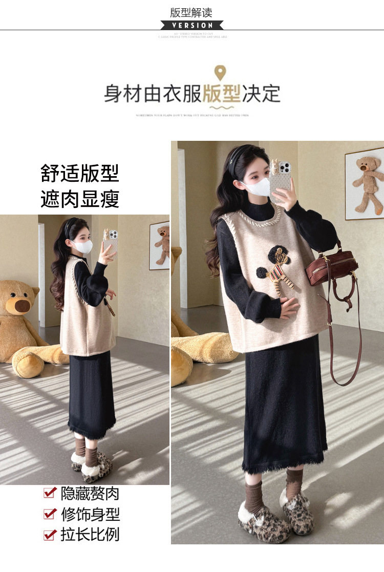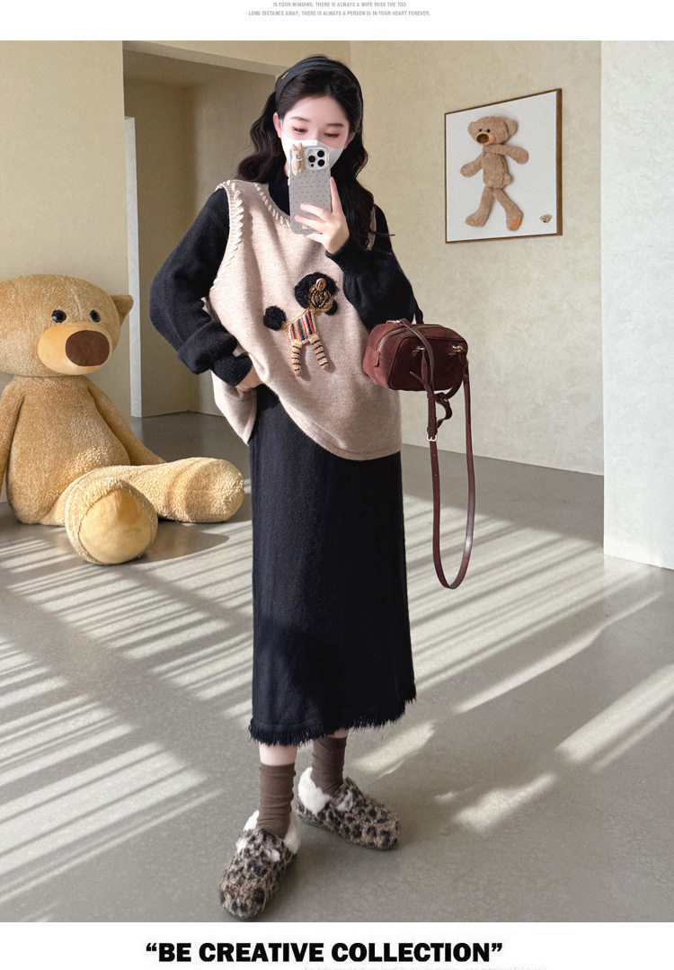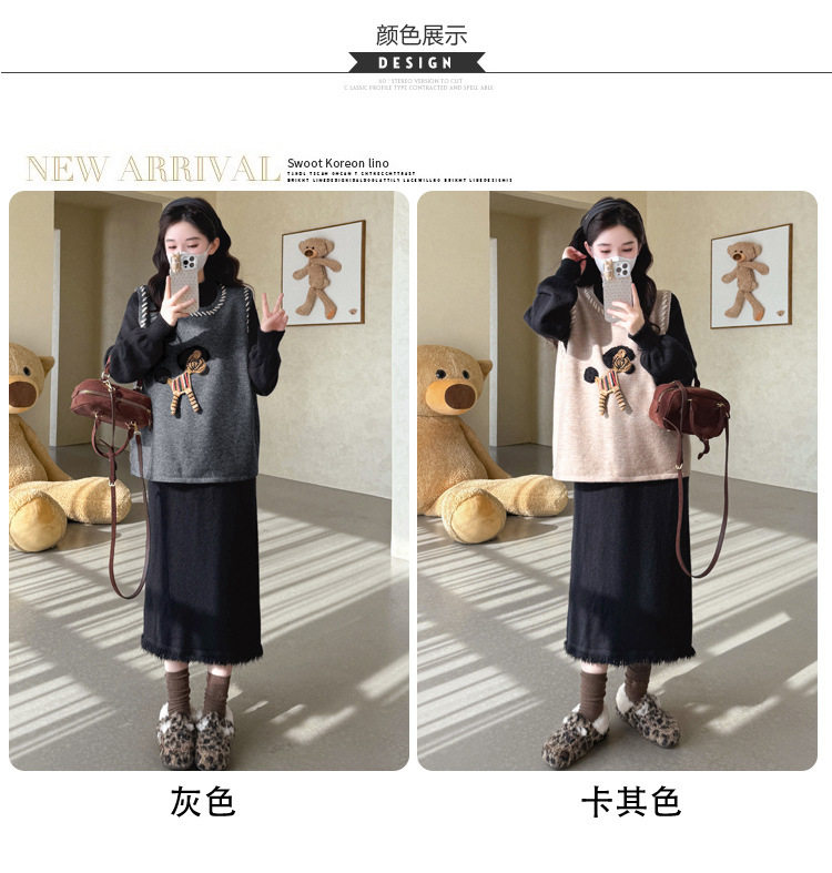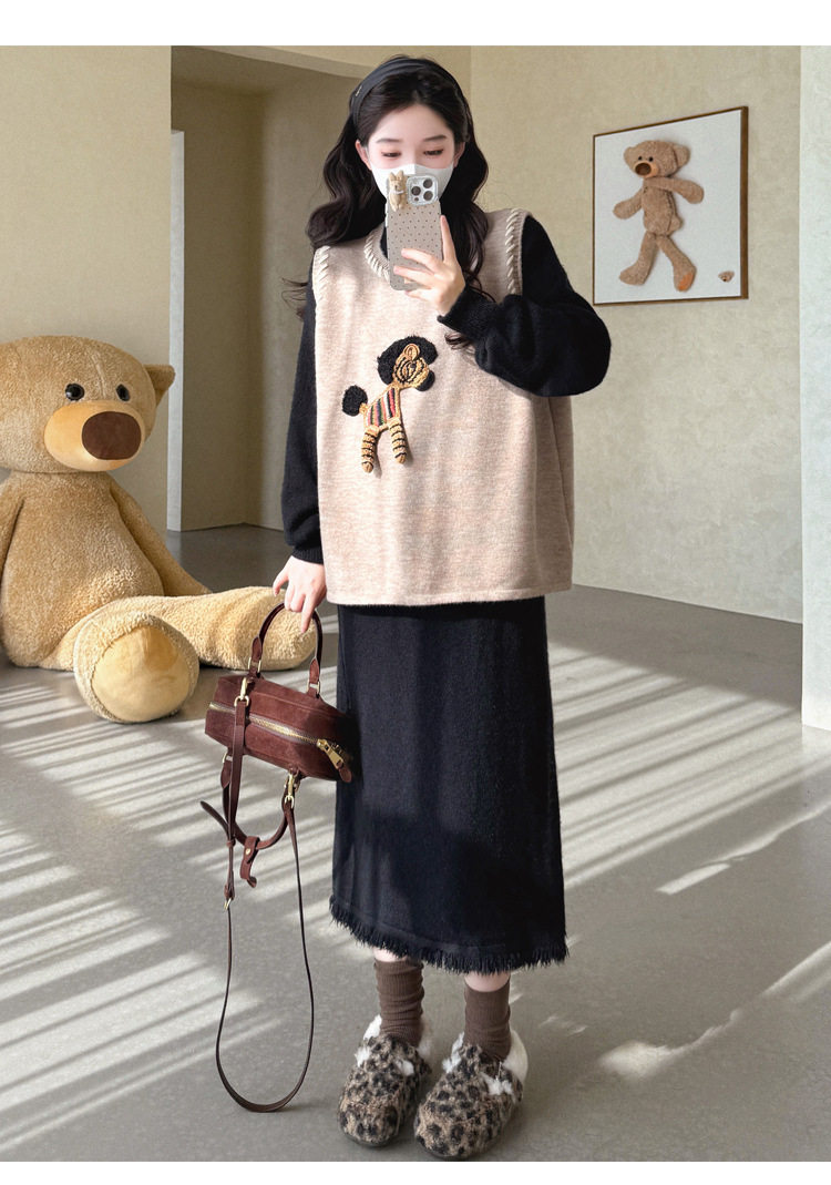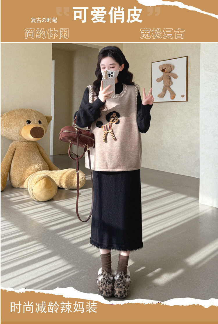 Maternity Autumn and Winter Dress Suit 2025 New French Thickeneded Sweater Vest Bottoming Knitted Skirt Two-Piece Set