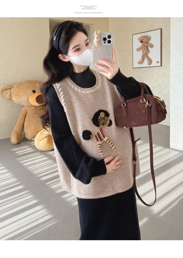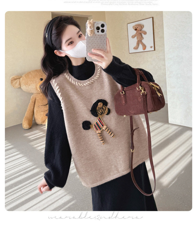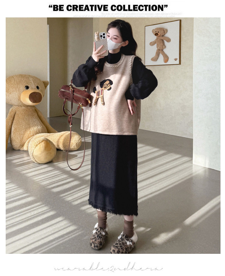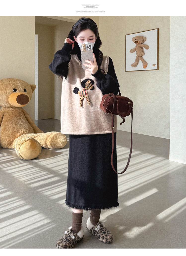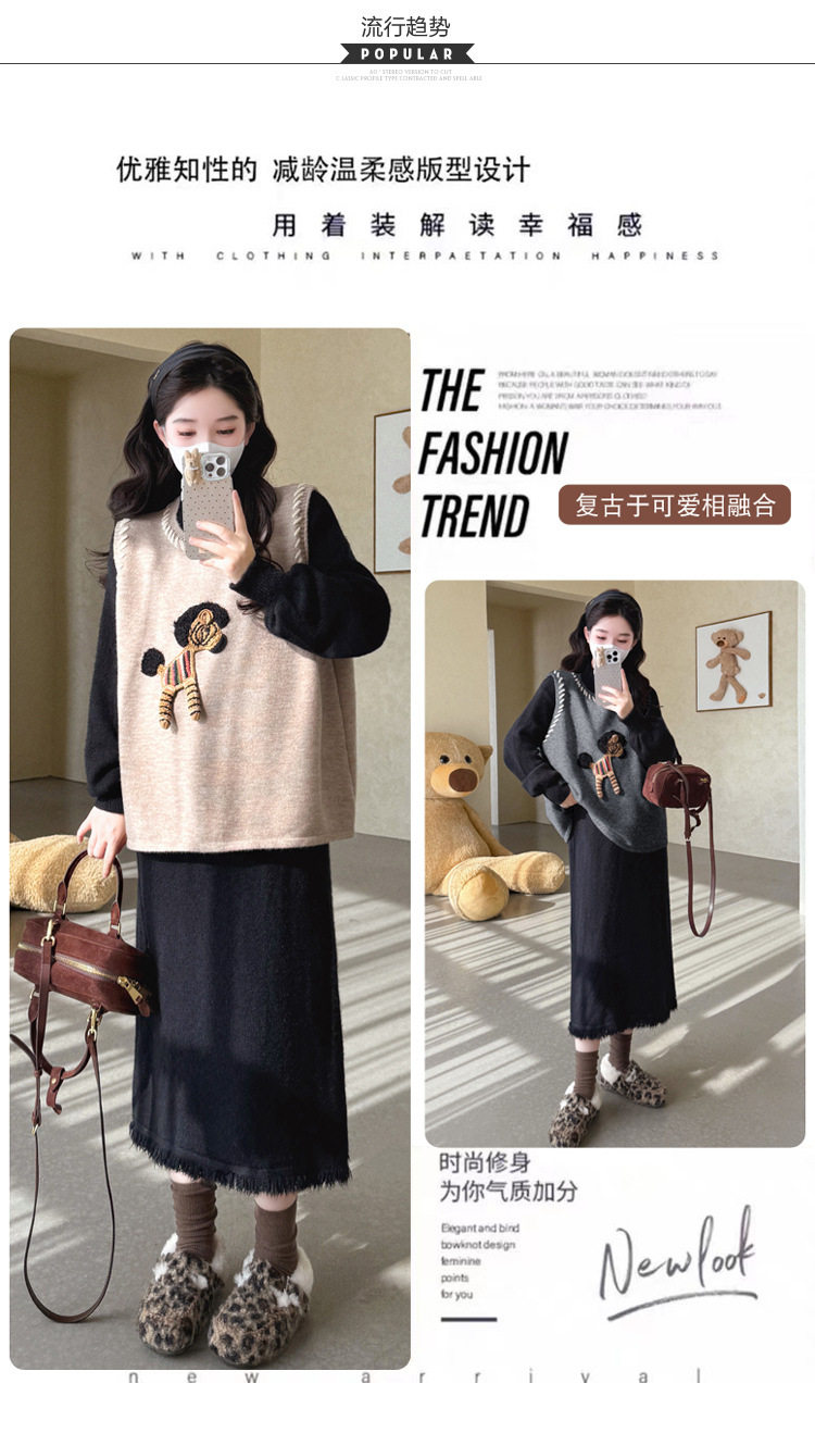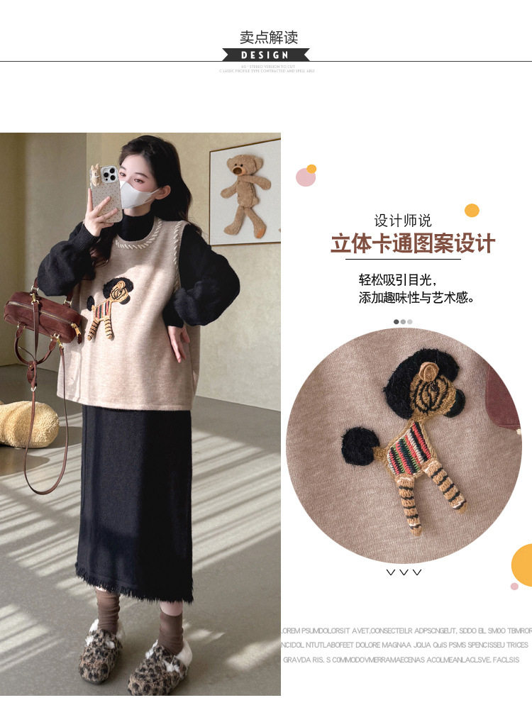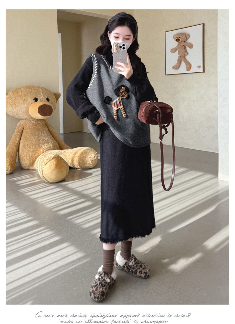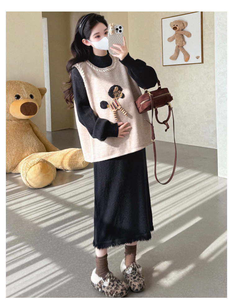 Maternity Autumn and Winter Dress Suit 2025 New French Thickeneded Sweater Vest Bottoming Knitted Skirt Two-Piece Set