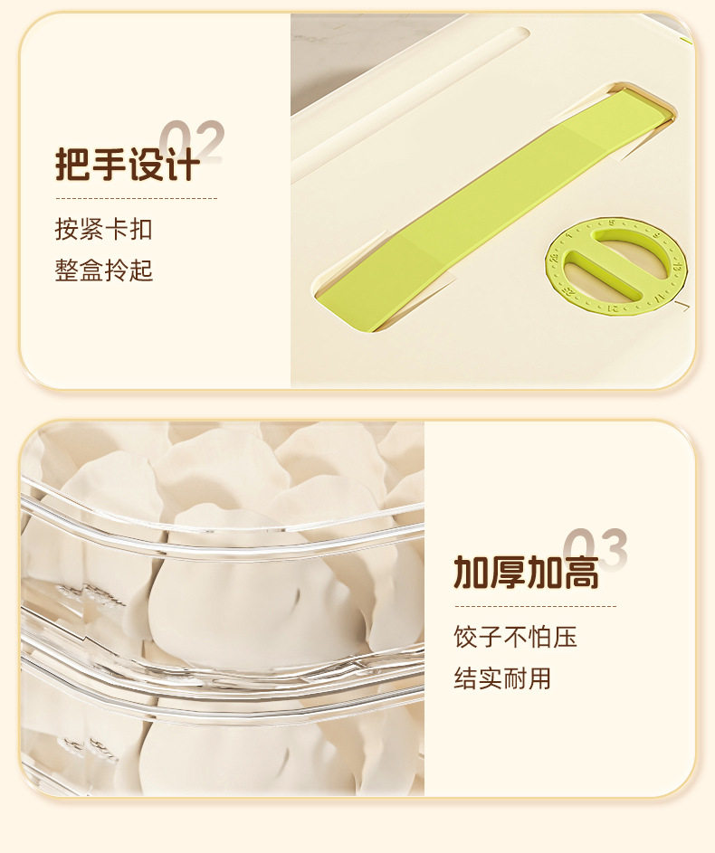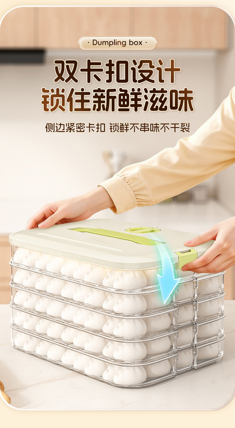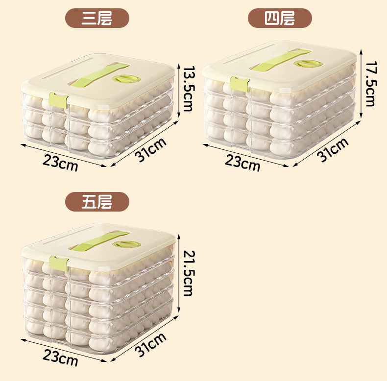 | Color | Dumpling storage box (2 layers) pink,Dumpling storage box (2 layers) blue,Dumpling storage box (2 layers) green color,Dumpling storage box (3 layers) pink,Dumpling storage box (3 layers) blue,Dumpling storage box (3 layers) green,Dumpling storage box (4 layers) pink,Dumpling storage box (4 layers) blue,Dumpling storage box (4 layers) green,Dumpling storage box (5 layers) pink,Dumpling storage box (5 layers) blue,Dumpling storage box (5 layers) green |