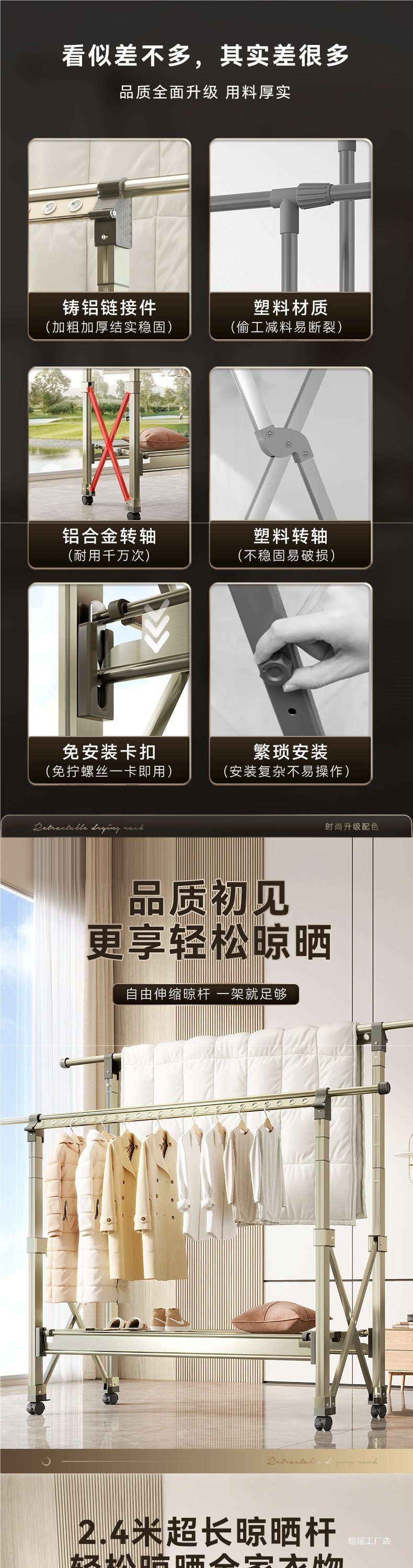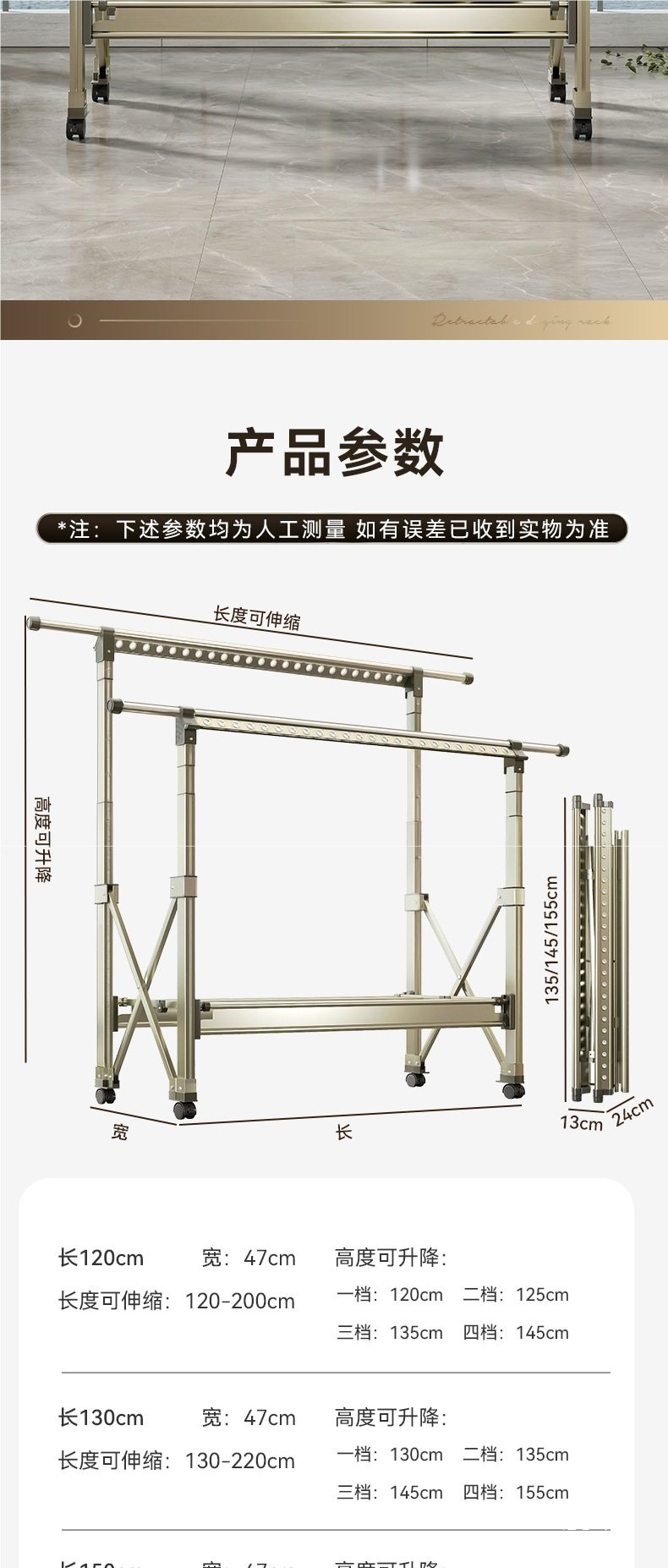 | Color | Dark gray [drying net model] 1.3- 2.3m telescopic-fixed height 1.4m (high cost-effectiveness) yunda delivery-free wheels,Dark gray [sf express free shipping] 1.2- 2.1m telescopic - fixed height 1.2m (aviation aluminum alloy) comes with wheels + 6 hangers lifetime warranty,Quiet gold [sf express free shipping] 1.2- 2.1m telescopic - fixed height 1.2m (aviation aluminum alloy) comes with wheels + hangers 6 lifetime warranty,Dark gray [sf express free shipping] 1.3- 2.2m telescopic - fixed height 1.3m (aviation aluminum alloy) comes with wheels + 6 hangers lifetime warranty,Quiet gold [sf express free shipping] 1.3- 2.2m telescopic - fixed height 1.3m (aviation aluminum alloy) comes with wheels + 6 hangers lifetime warranty,Dark gray [sf express free shipping] 1.5- 2.4m telescopic - fixed height 1.5m (aviation aluminum alloy) comes with wheels + 6 hangers lifetime warranty,Quiet gold [sf express free shipping] 1.5- 2.4m telescopic - fixed height 1.5m (aviation aluminum alloy) comes with wheels + 6 hangers lifetime warranty,Dark gray [drying net model] 1.5- 2.5m telescopic-fixed height 1.5m (high cost performance) shipped by yunda-free wheels,Dark gray [drying net model] 1.3- 2.3m telescopic-double row 3-speed lift (high cost-effectiveness) yunda delivery-free wheels,Cream white [drying net model] 1.3- 2.3m telescopic-double row 3-speed lift (high cost performance) shipped by yunda - free wheels,Dark gray [drying net model] 1.5- 2.5m telescopic - double row 3-speed lift (high cost-effectiveness) shipped by yunda - free wheels,Cream white [drying net model] 1.5- 2.5m telescopic-double row 3-speed lift (high cost performance) shipped by yunda - free wheels,Quiet gold [sf express free shipping] 1.2- 2.1m telescopic - double row 4-speed lift (aviation aluminum alloy) comes with wheels + 6 hangers, lifetime warranty,Dark gray [sf express free shipping] 1.2- 2.1m telescopic - double row 4-speed lift (aviation aluminum alloy) comes with wheels + 6 hangers lifetime warranty,Rose gold [sf express free shipping] 1.2- 2.1m telescopic - double row 4-speed lift (aviation aluminum alloy) comes with wheels + 6 hangers, lifetime warranty,Moonlight silver [sf express free shipping] 1.2- 2.1m telescopic - double row 4-speed lift (aviation aluminum alloy) comes with wheels + 6 hangers, lifetime warranty,Quiet gold [sf express free shipping] 1.3- 2.2m telescopic - double row 4-speed lift (aviation aluminum alloy) comes with wheels + 6 hangers, lifetime warranty,Dark gray [sf express free shipping] 1.3- 2.2m telescopic - double row 4-speed lift (aviation aluminum alloy) comes with wheels + 6 hangers lifetime warranty,Rose gold [sf express free shipping] 1.3- 2.2m telescopic - double row 4-speed lift (aviation aluminum alloy) comes with wheels + 6 hangers, lifetime warranty,Moonlight silver [sf express free shipping] 1.3- 2.2m telescopic - double row 4-speed lift (aviation aluminum alloy) comes with wheels + 6 hangers, lifetime warranty,Quiet gold [sf express free shipping] 1.5- 2.4m telescopic - double row 4-speed lift (aviation aluminum alloy) comes with wheels + 6 hangers, lifetime warranty,Dark gray [sf express free shipping] 1.5- 2.4m telescopic - double row 4-speed lift (aviation aluminum alloy) comes with wheels + 6 hangers lifetime warranty,Rose gold [sf express free shipping] 1.5- 2.4m telescopic - double row 4-speed lift (aviation aluminum alloy) comes with wheels + 6 hangers, lifetime warranty,Moonlight silver [sf express free shipping] 1.5- 2.4m telescopic - double row 4-speed lift (aviation aluminum alloy) comes with wheels + 6 hangers, lifetime warranty |