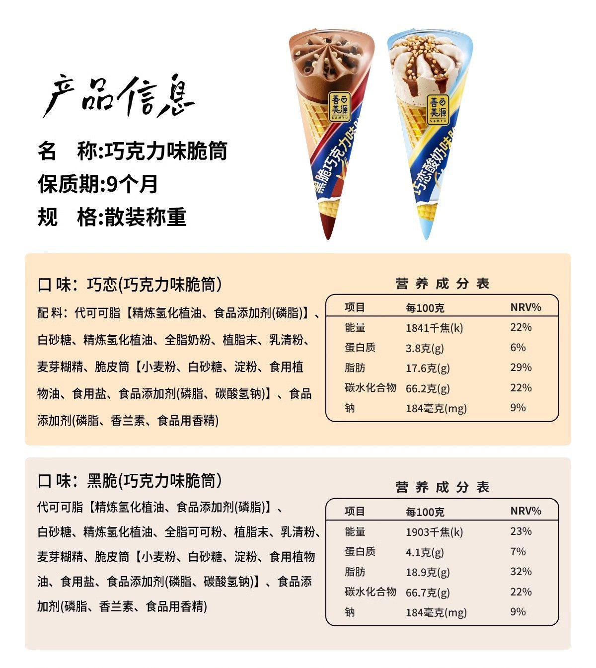 | Taste | Chocolate flavored crispy cones 400g [about 40 pieces] yogurt flavored crispy cones 400g [about 40 pieces] mixed flavor crispy cones 400g [about 40 pieces] |