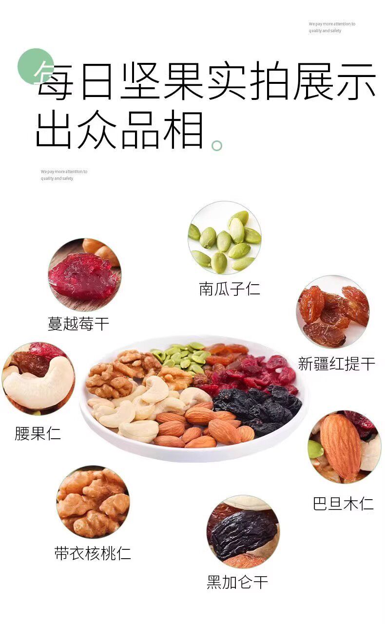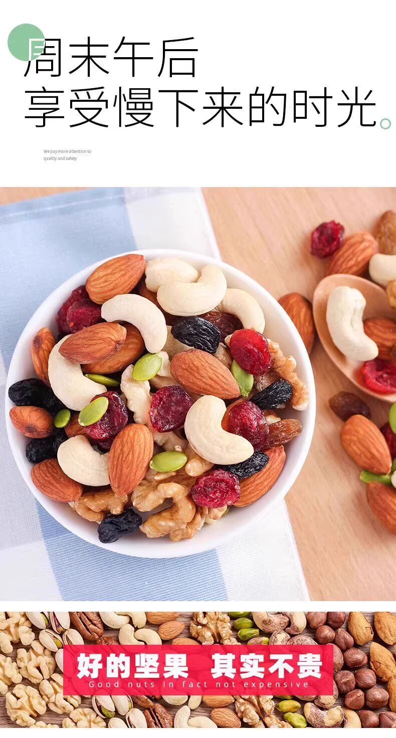 | Packaging specifications | Daily nuts * 20 packs (classic standard),Daily nuts * 30 packs (classic standard),Daily nuts*50 packs (8 kinds mixed),Daily nuts * 15 packs (classic standard),Daily nuts * 10 packs (classic standard),Daily nuts * 5 packs (classic standard),Daily nuts * 20 packs (premium deluxe edition),Daily nuts * 30 packs (premium deluxe edition),Daily nuts * 50 packs (premium deluxe edition),Daily nuts * 15 packs (premium deluxe edition),Daily nuts * 10 packs (premium deluxe edition),Daily nuts * 5 packs (premium deluxe edition) |