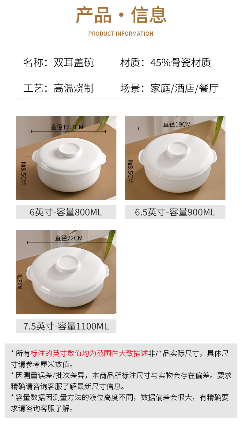 | Color | ★ ☆ 6inch double-eared bowl [with lid] suitable for steamed eggs/microwave/oven ★ ☆,★ ☆ 6.5inch double-eared bowl [with lid] suitable for steamed eggs/microwave/oven ★ ☆,★ ☆ 7.5inch double-eared bowl [with lid] suitable for steamed eggs/microwave/oven ★ ☆,★ ☆ 6inch double-eared bowl suitable for steamed eggs/microwave/oven ★ ☆,★ ☆ 6.5inch double-eared bowl suitable for steamed eggs/microwave/oven ★ ☆,★ ☆ 7.5inch double-eared bowl suitable for steamed eggs/microwave/oven ★ ☆ |