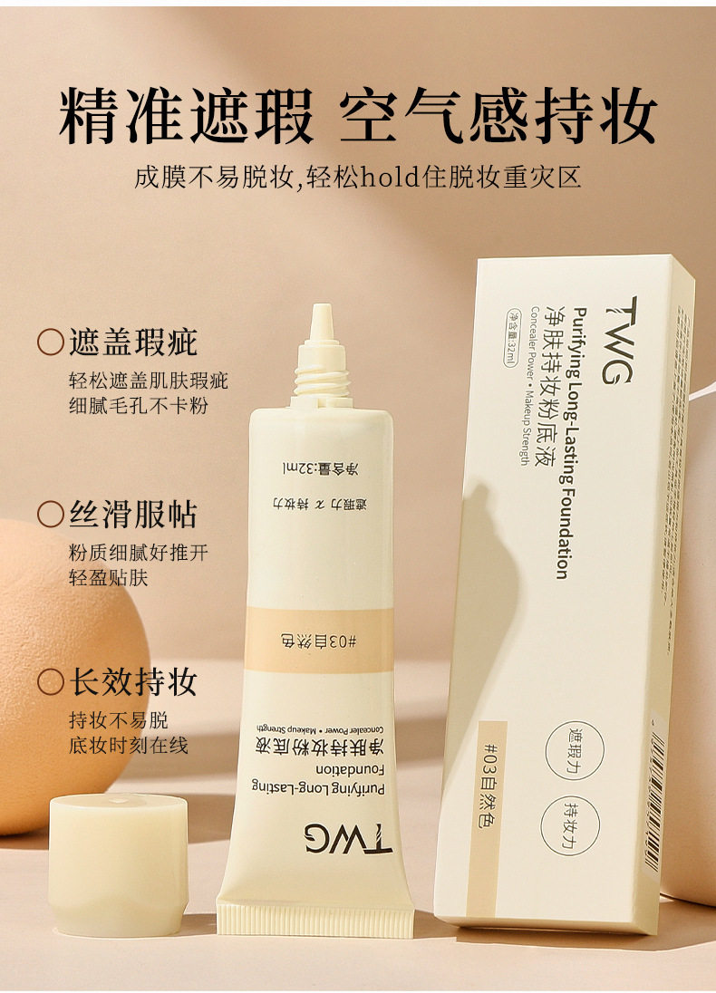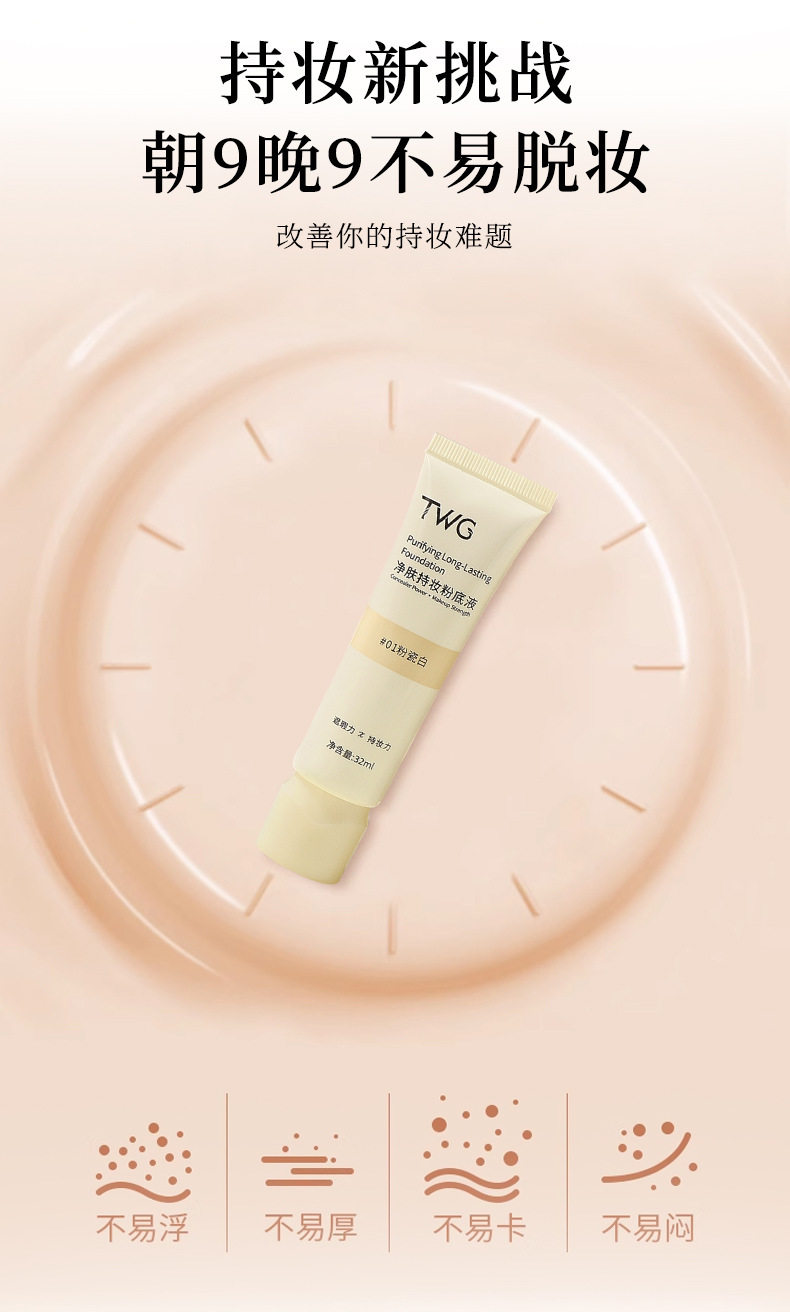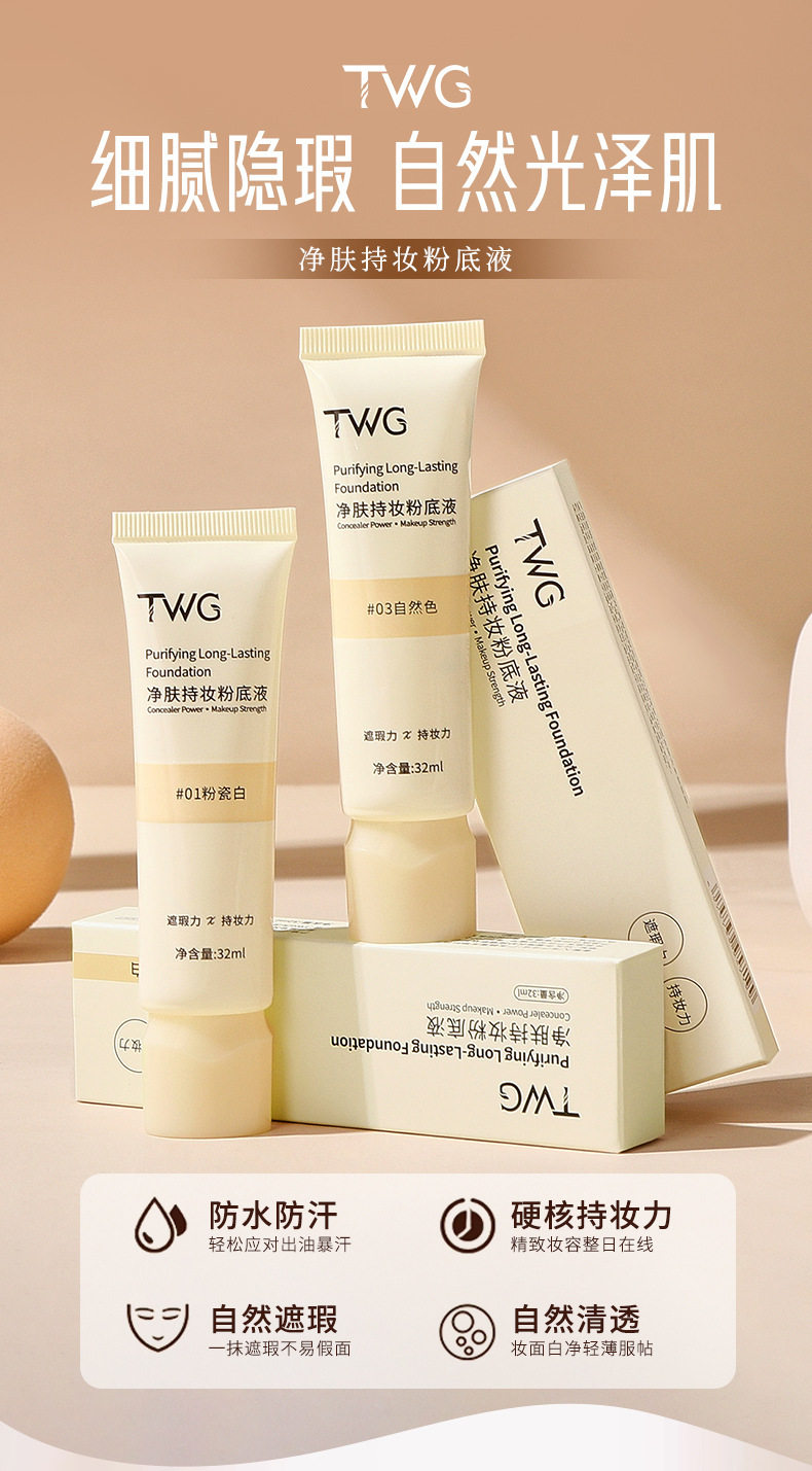 Twg Purifying Long-Lasting Makeup Liquid Foundation Long-Lasting Makeup Non-Stuck Powder Moisturizing and Fit Natural Light Glowing Liquid Foundation