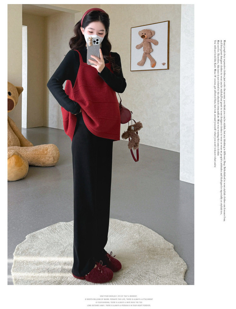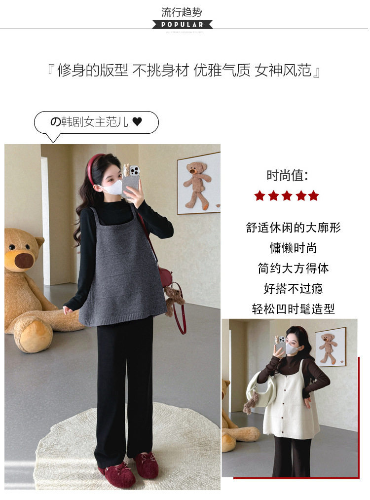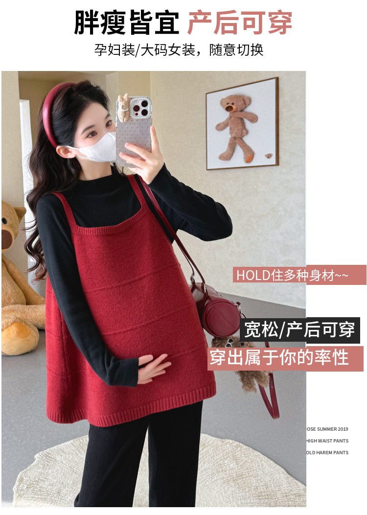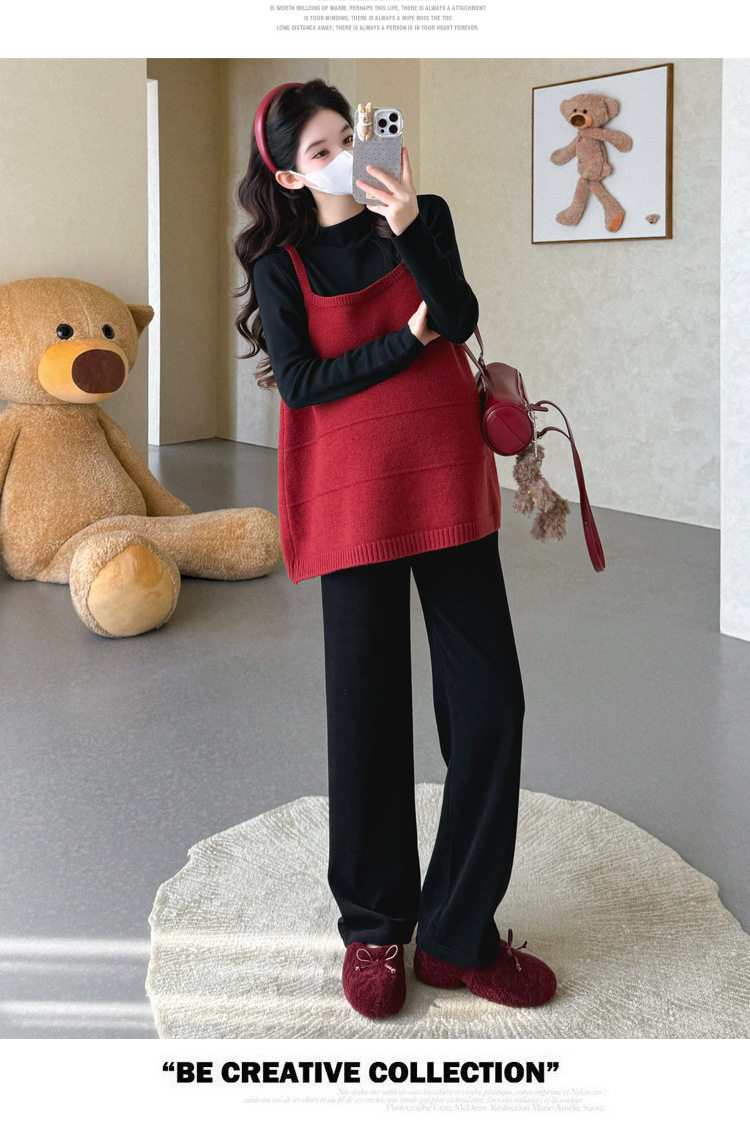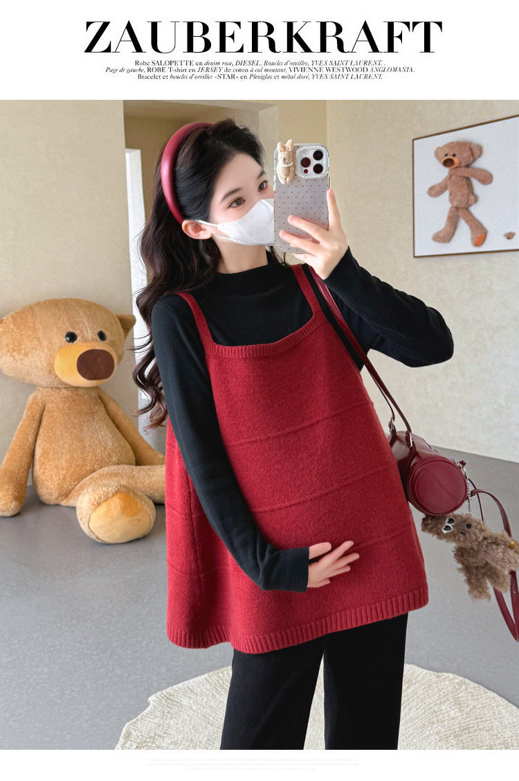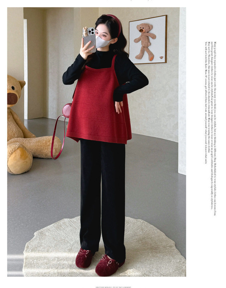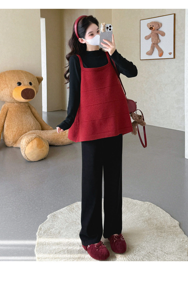 Maternity Autumn New Fashion Stylish Loose Camisole Knit Top Half-Neck Slimming Base Shirt Korean Style Two-Piece Set