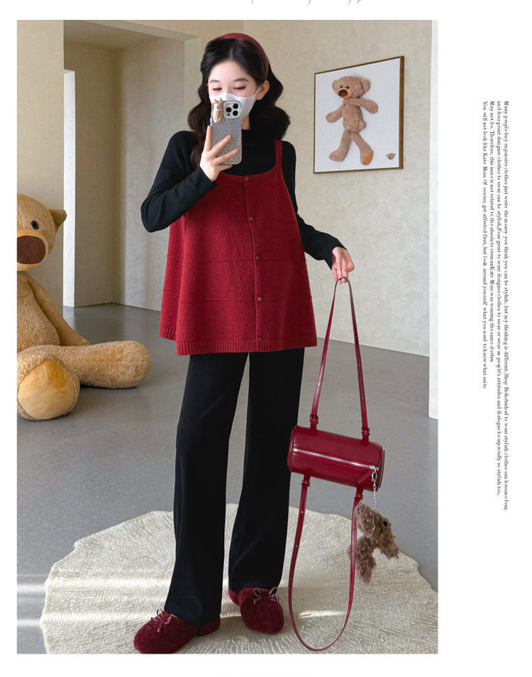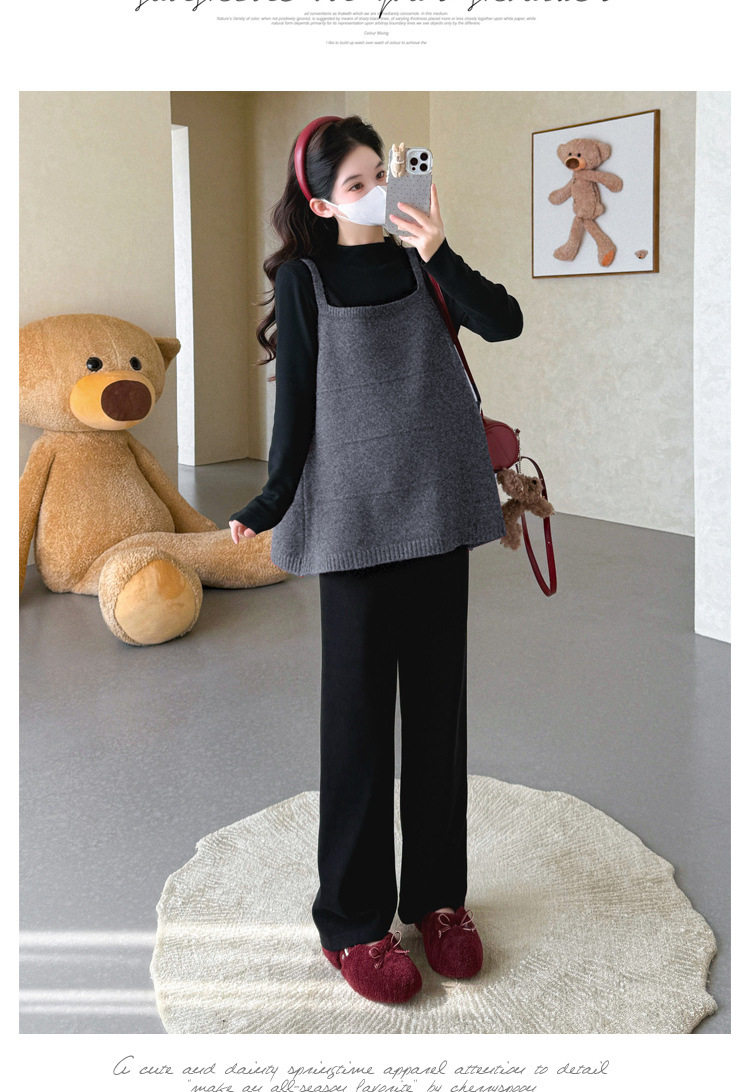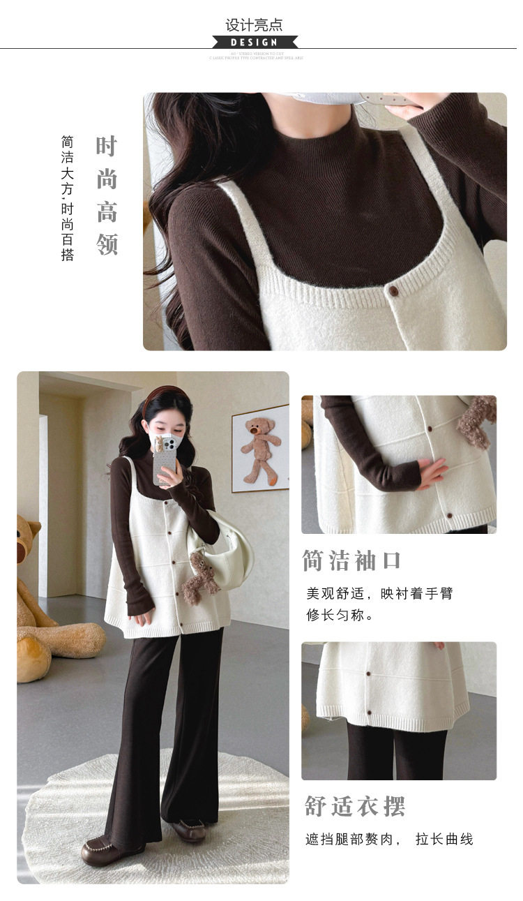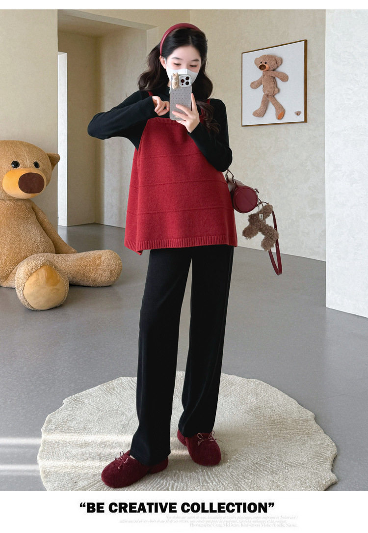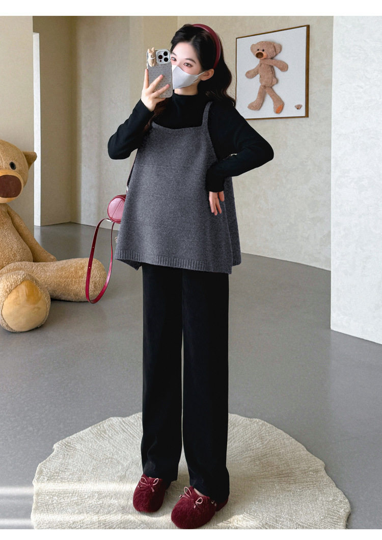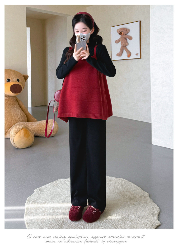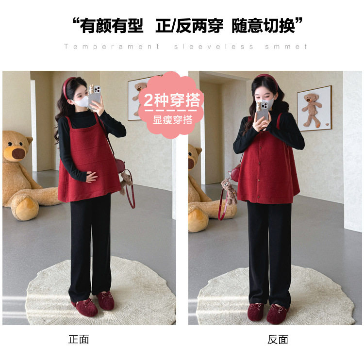 Maternity Autumn New Fashion Stylish Loose Camisole Knit Top Half-Neck Slimming Base Shirt Korean Style Two-Piece Set