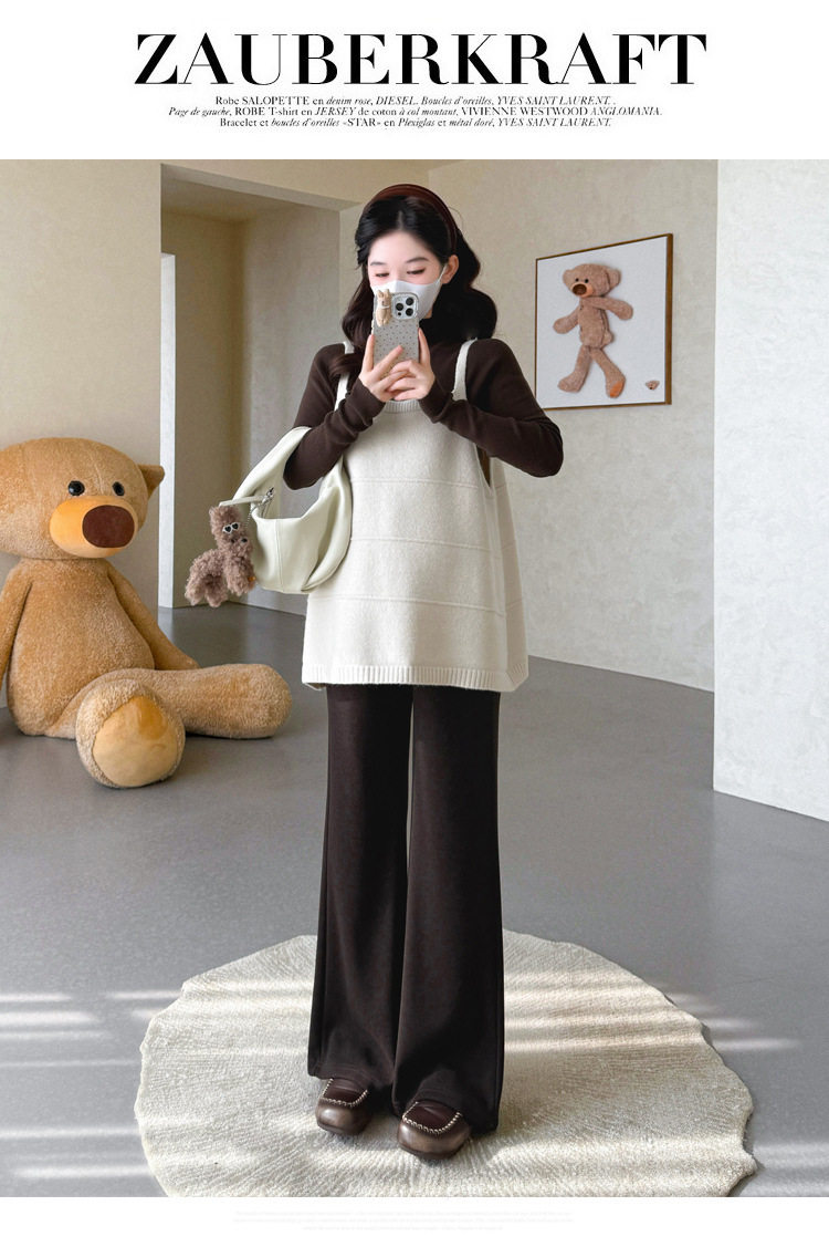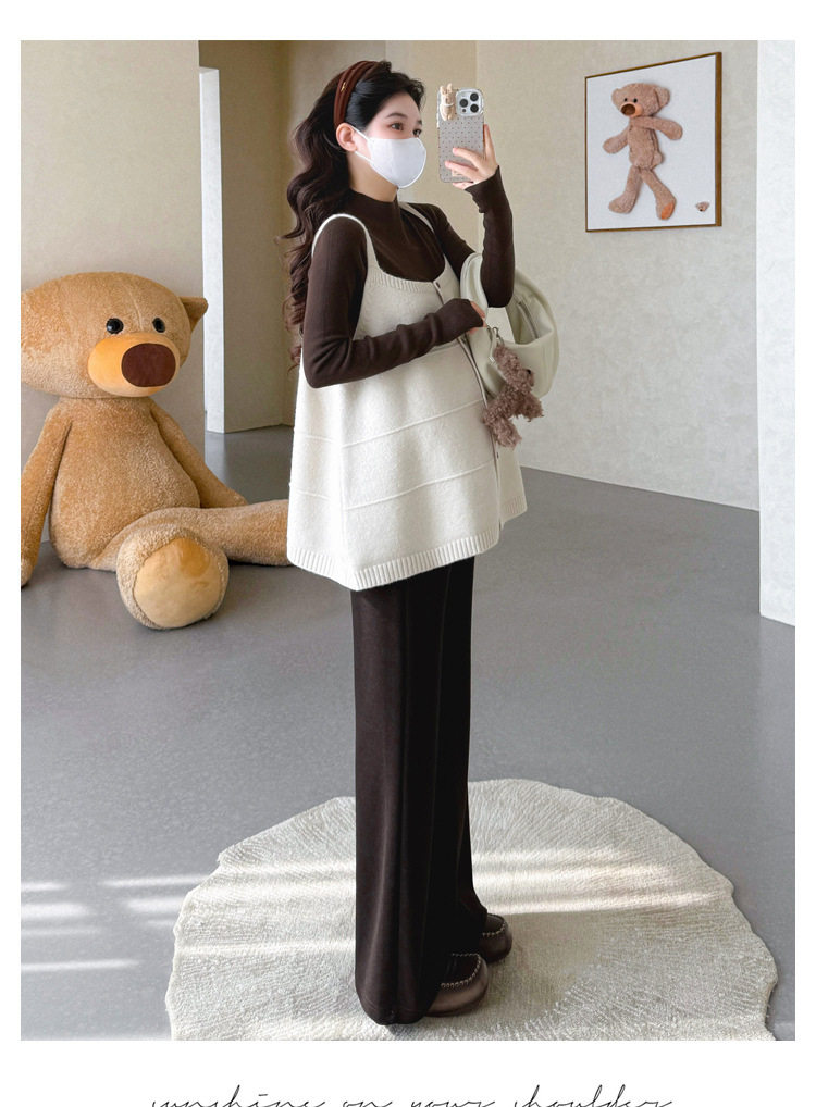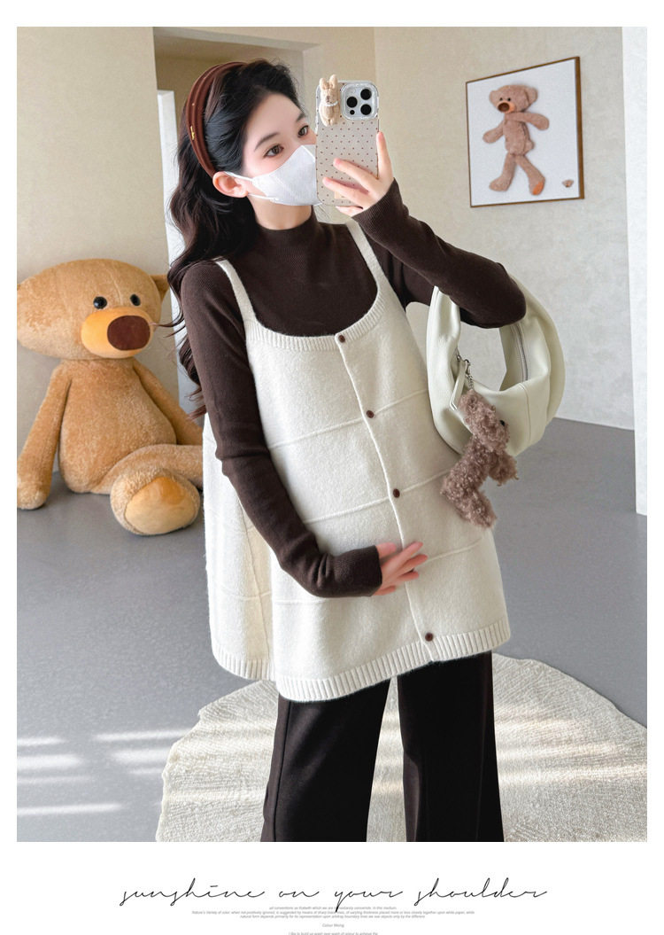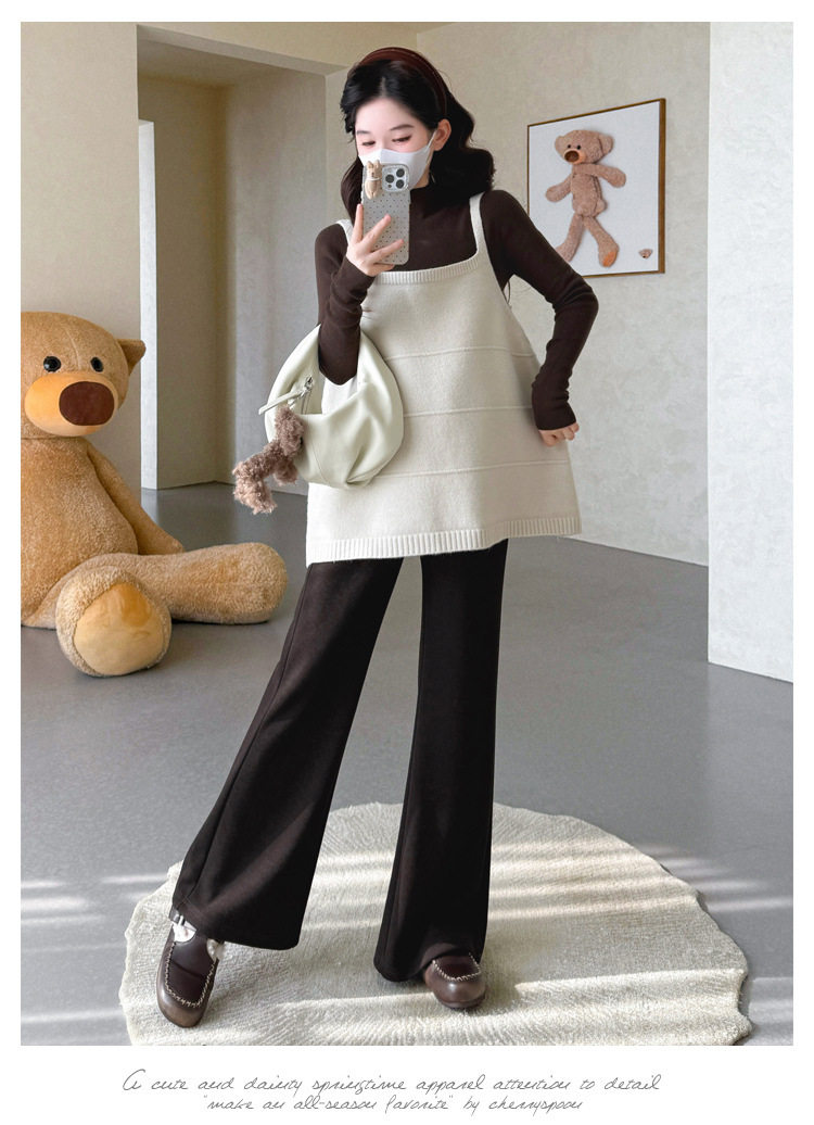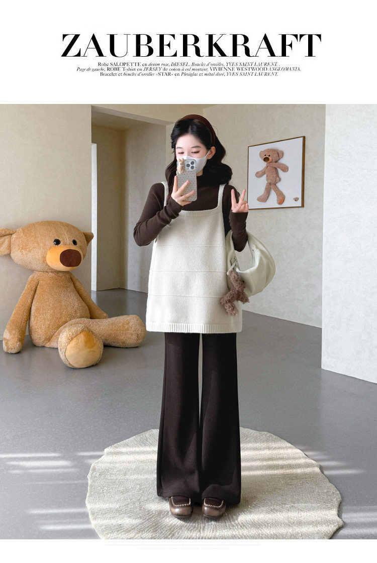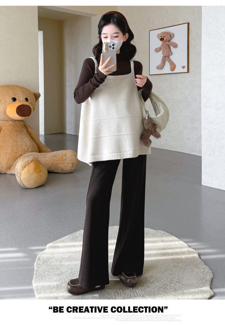 Maternity Autumn New Fashion Stylish Loose Camisole Knit Top Half-Neck Slimming Base Shirt Korean Style Two-Piece Set
