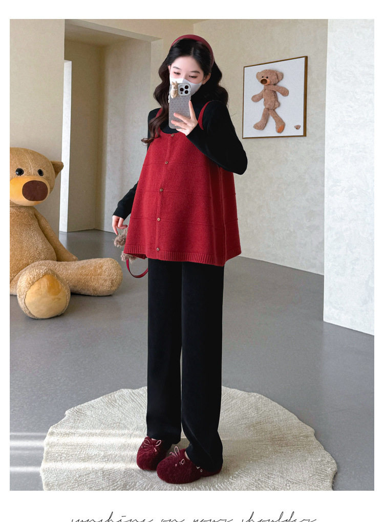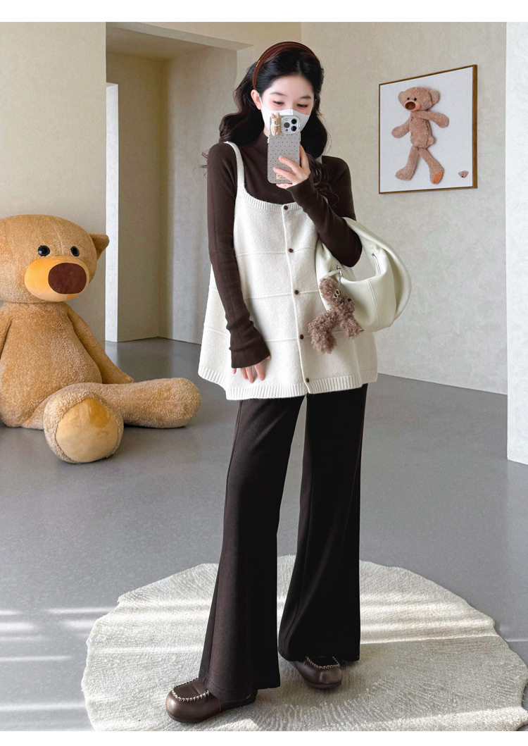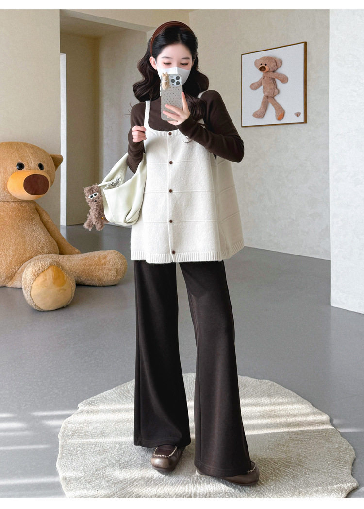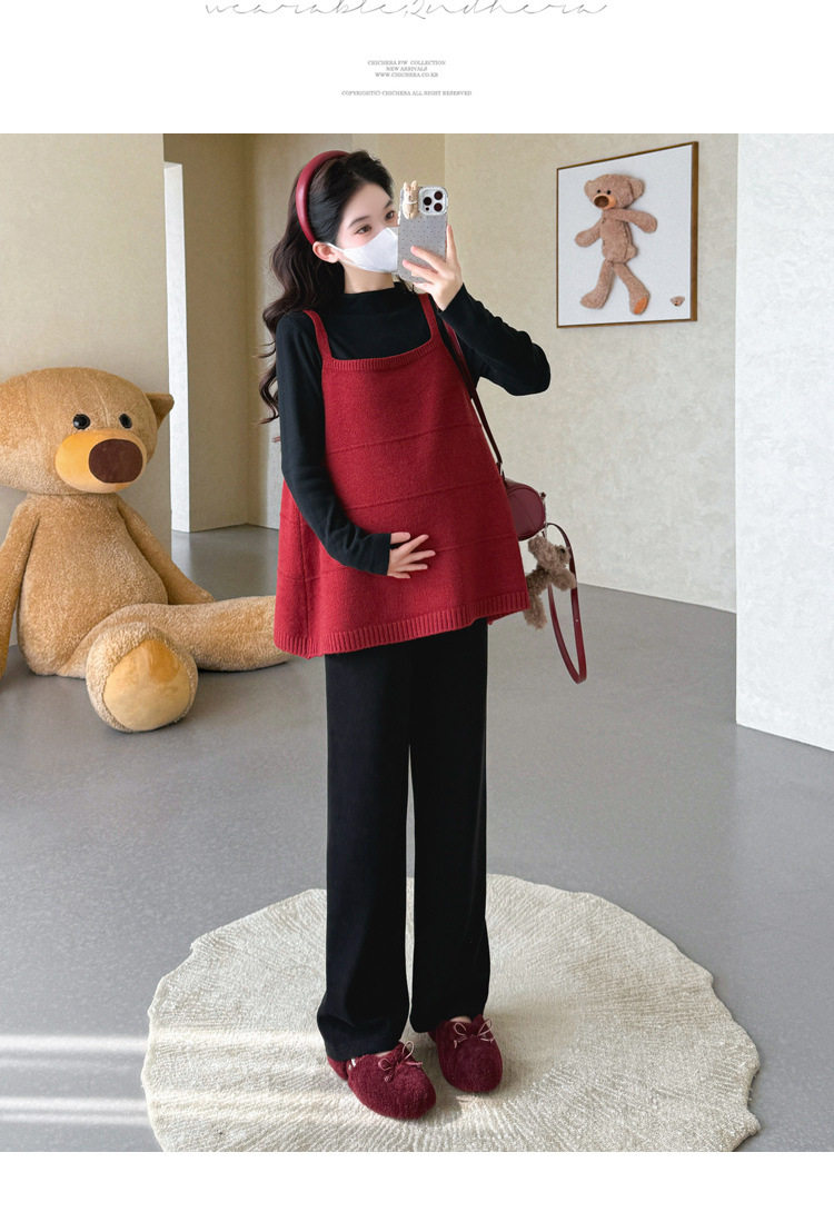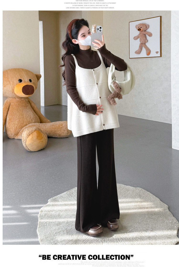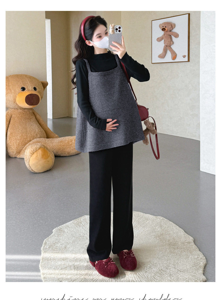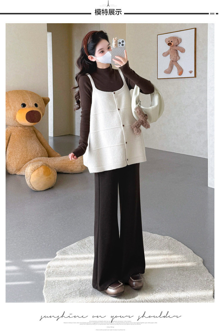 Maternity Autumn New Fashion Stylish Loose Camisole Knit Top Half-Neck Slimming Base Shirt Korean Style Two-Piece Set