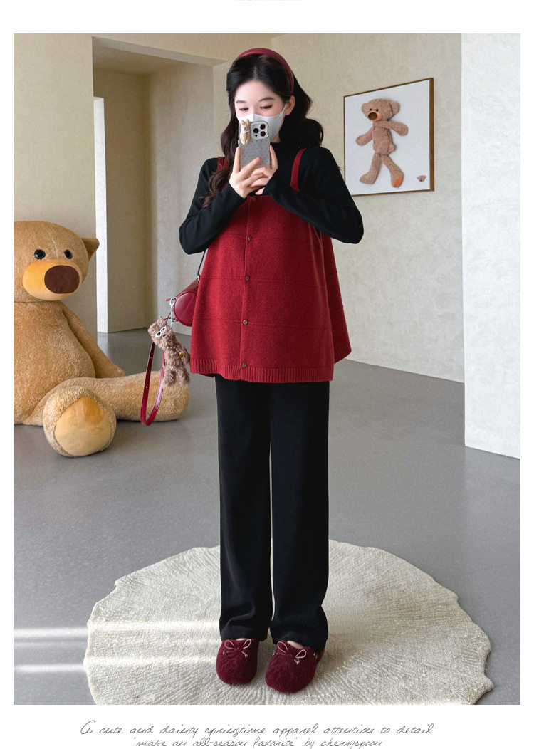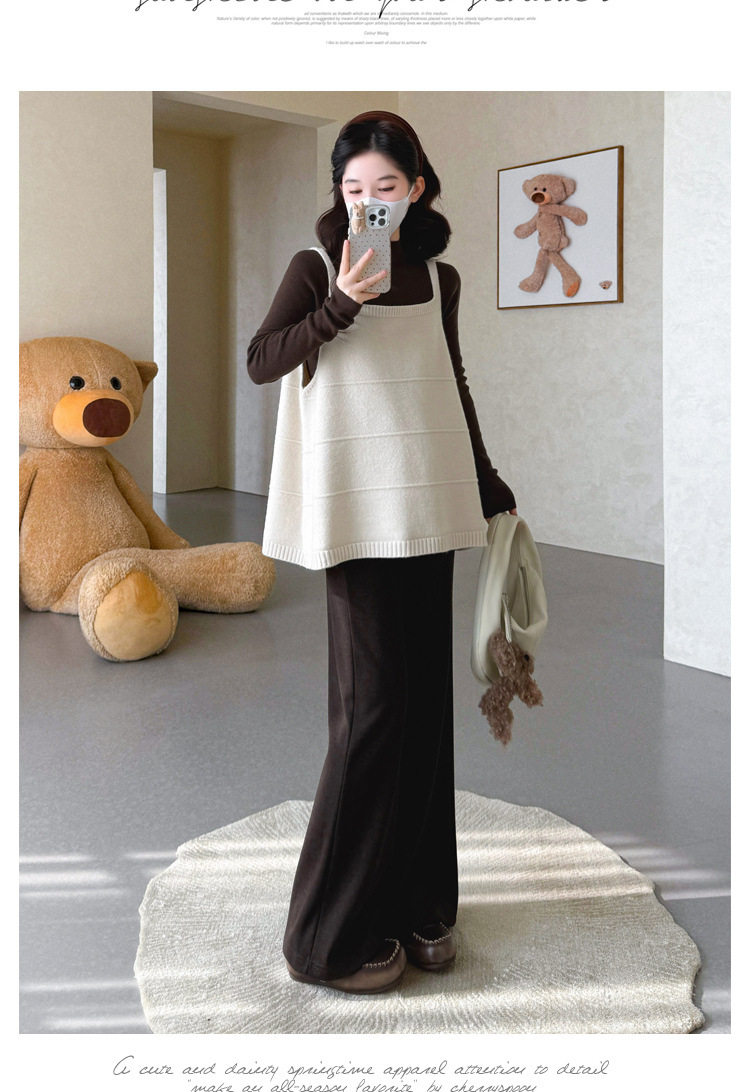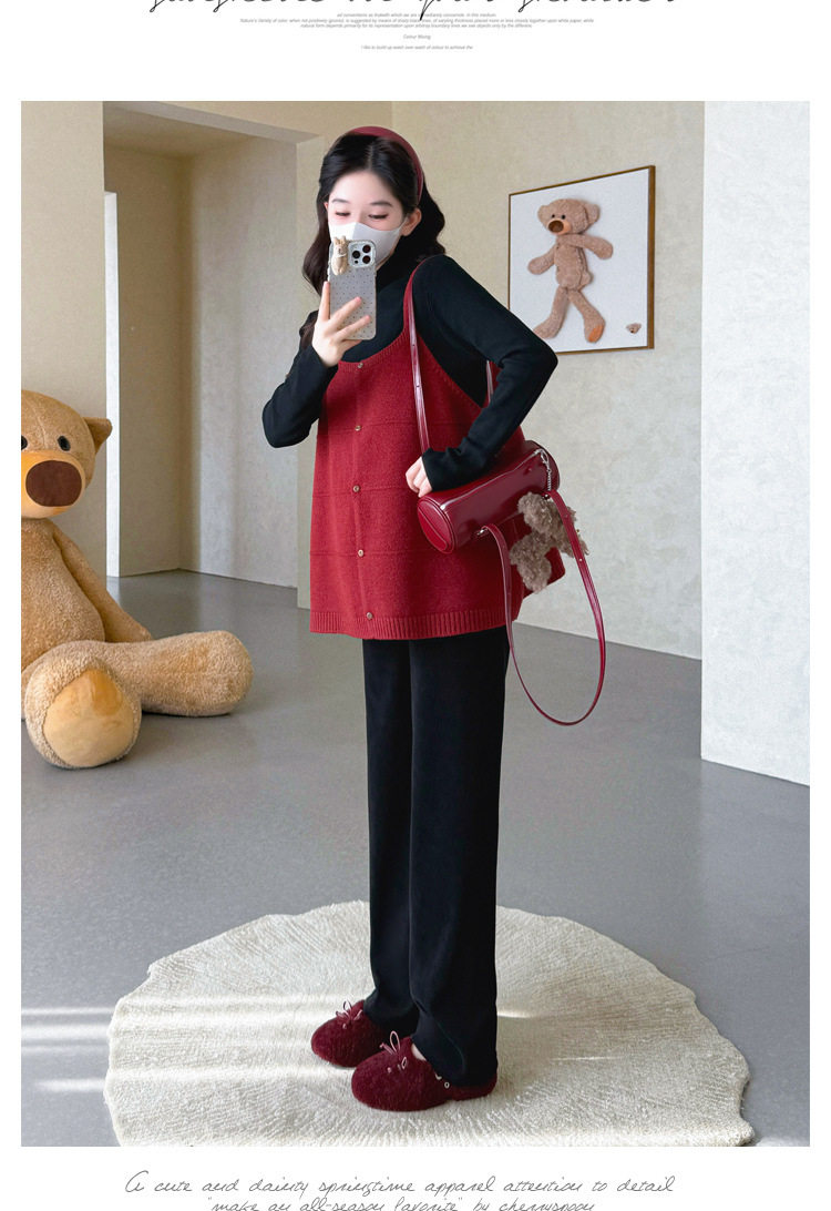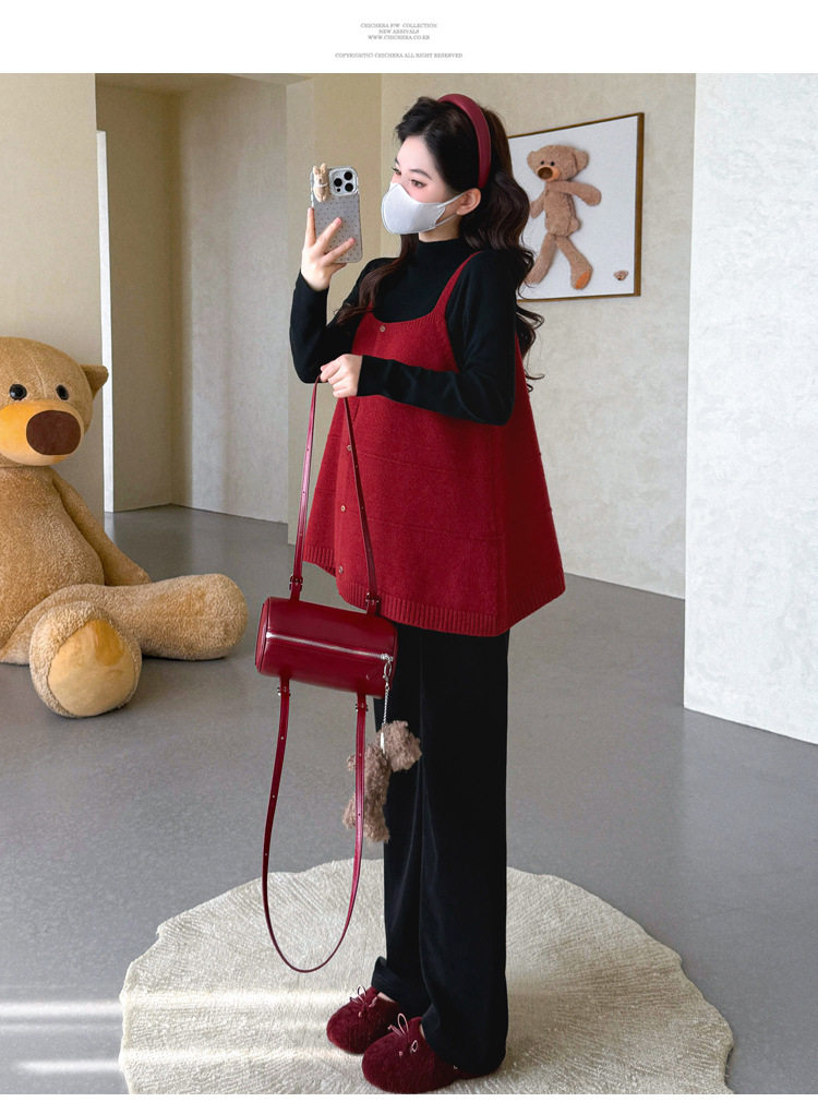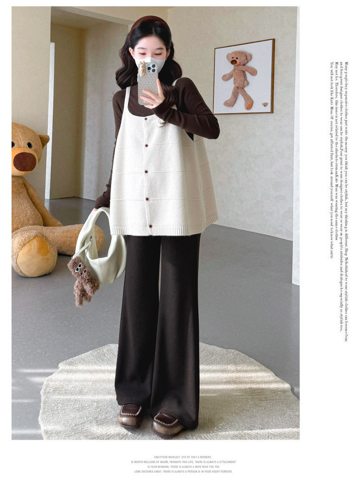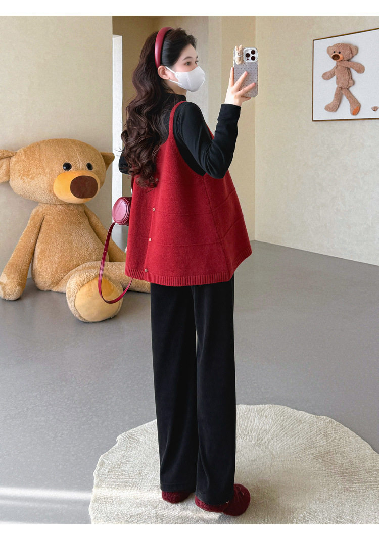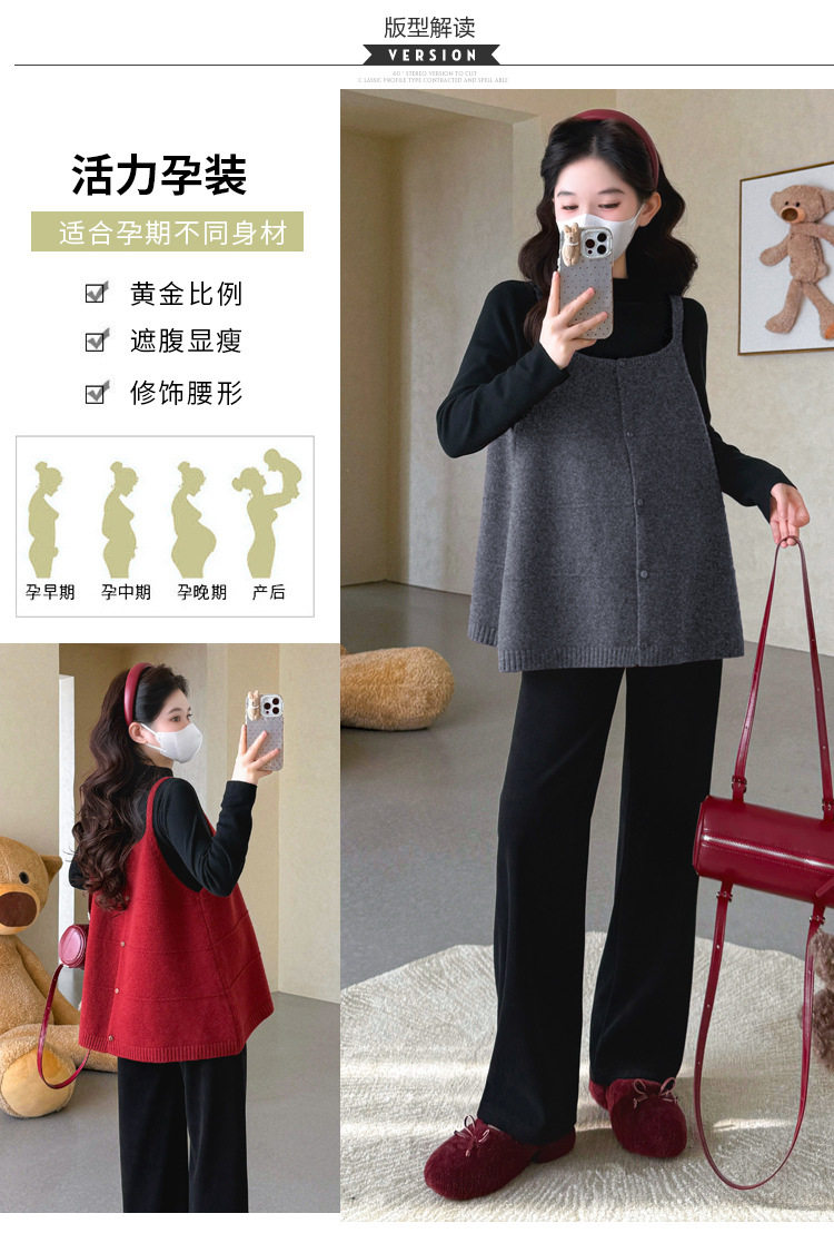 Maternity Autumn New Fashion Stylish Loose Camisole Knit Top Half-Neck Slimming Base Shirt Korean Style Two-Piece Set