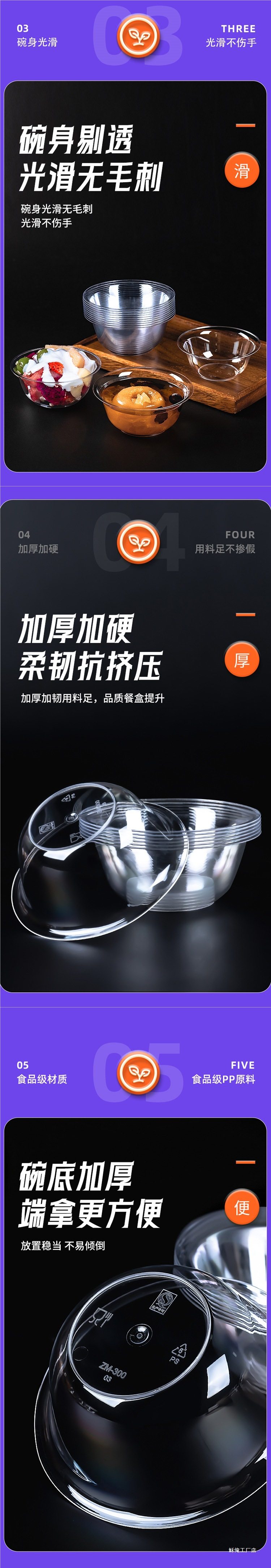 Thickened Disposable Aviation Crystal Bowl Household Hard Transparent Bowl Hot Pot Tableware Food Grade Soup Bowl Dessert Bowl
