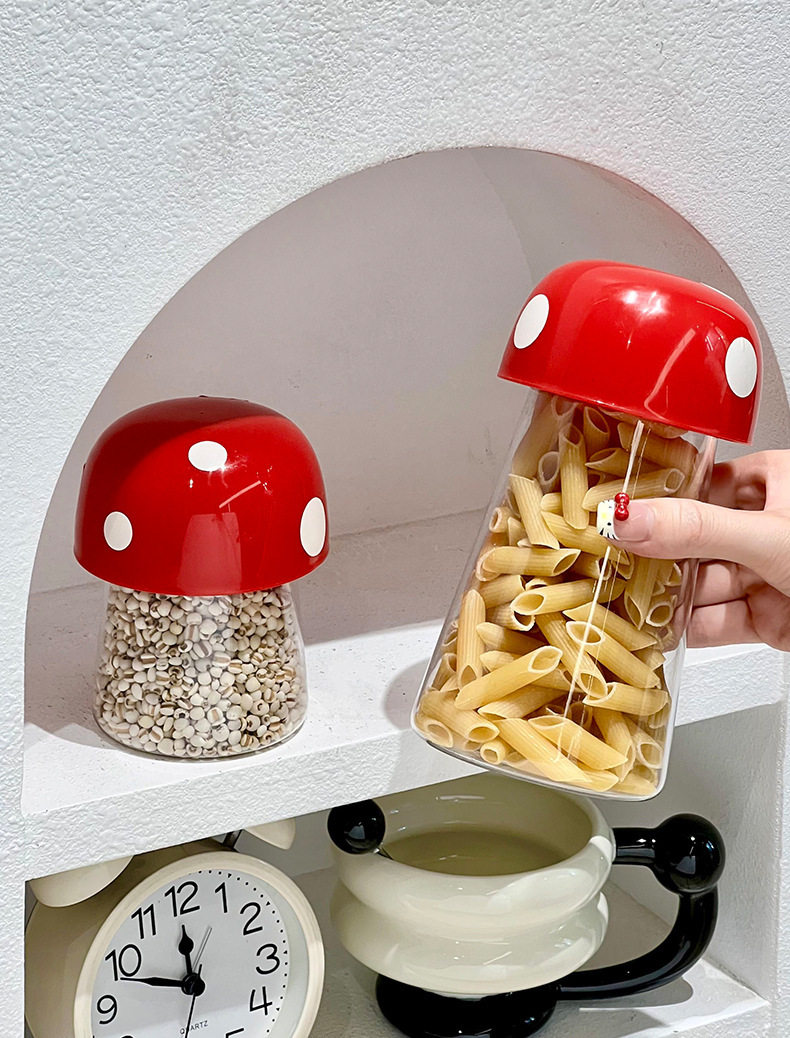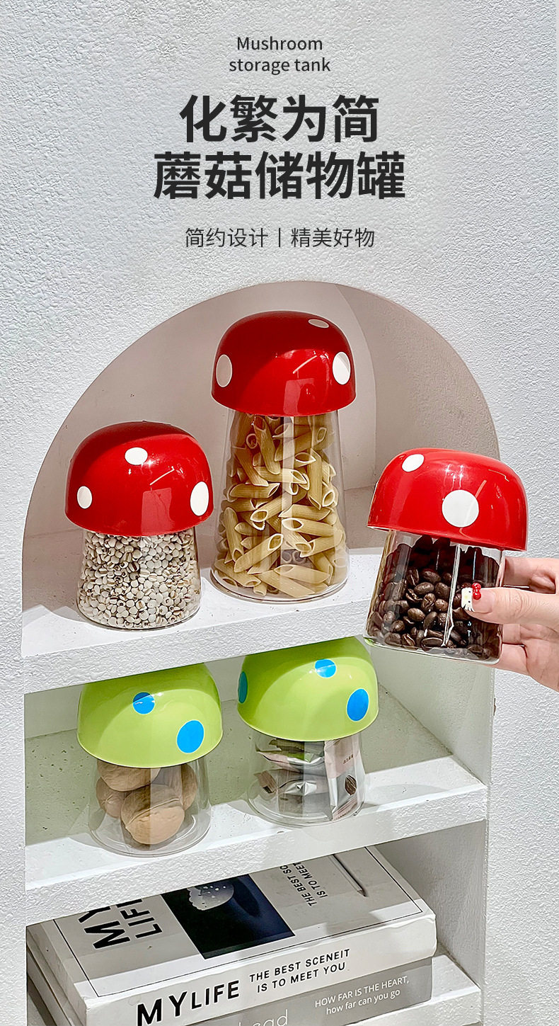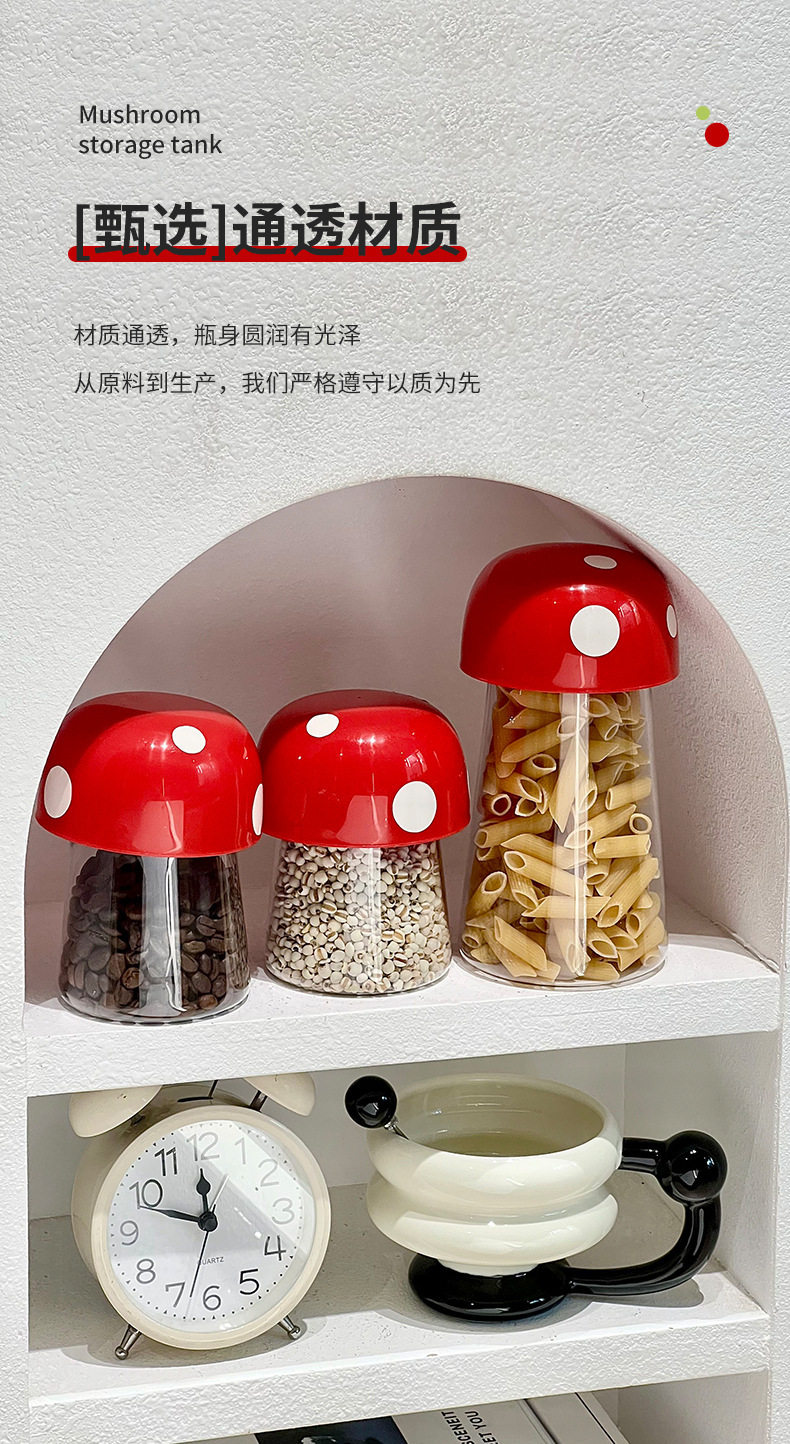 Sealed Jar Candy Jar Grain Storage Jar Kitchen Moisture-Proof Storage Cartoon Mushroom Beans Household Jar