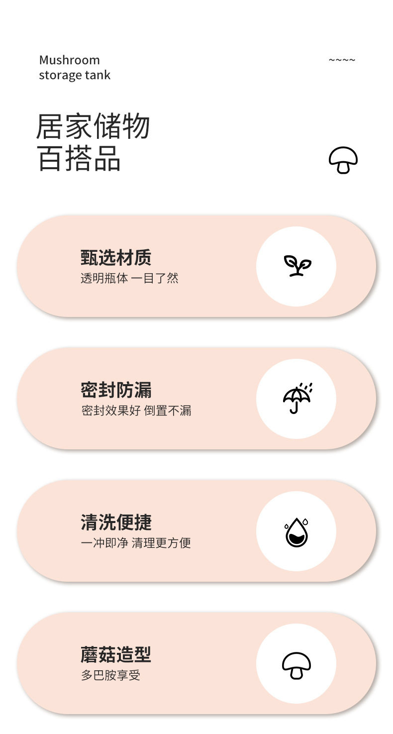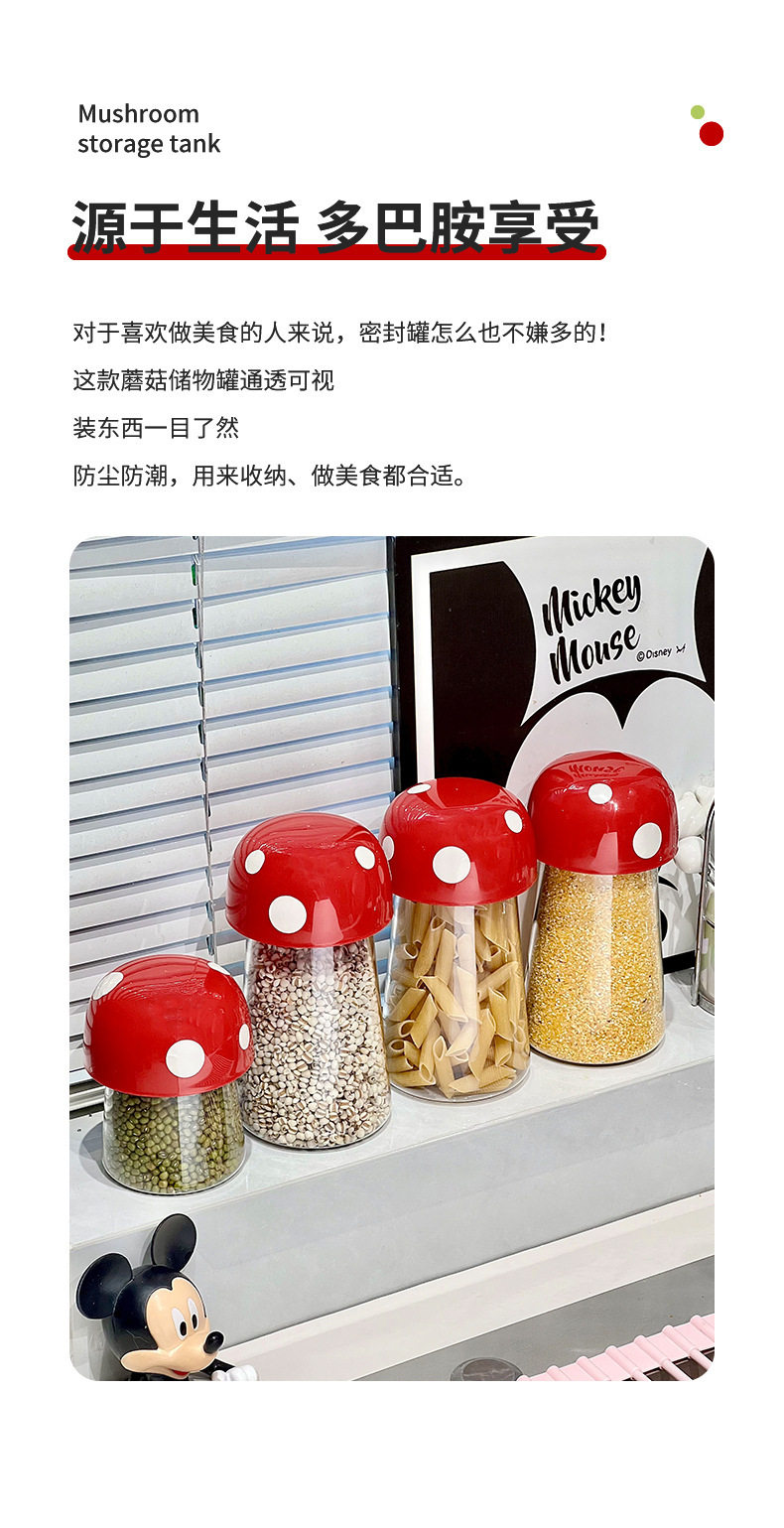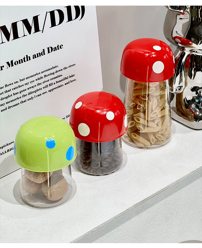 Sealed Jar Candy Jar Grain Storage Jar Kitchen Moisture-Proof Storage Cartoon Mushroom Beans Household Jar
