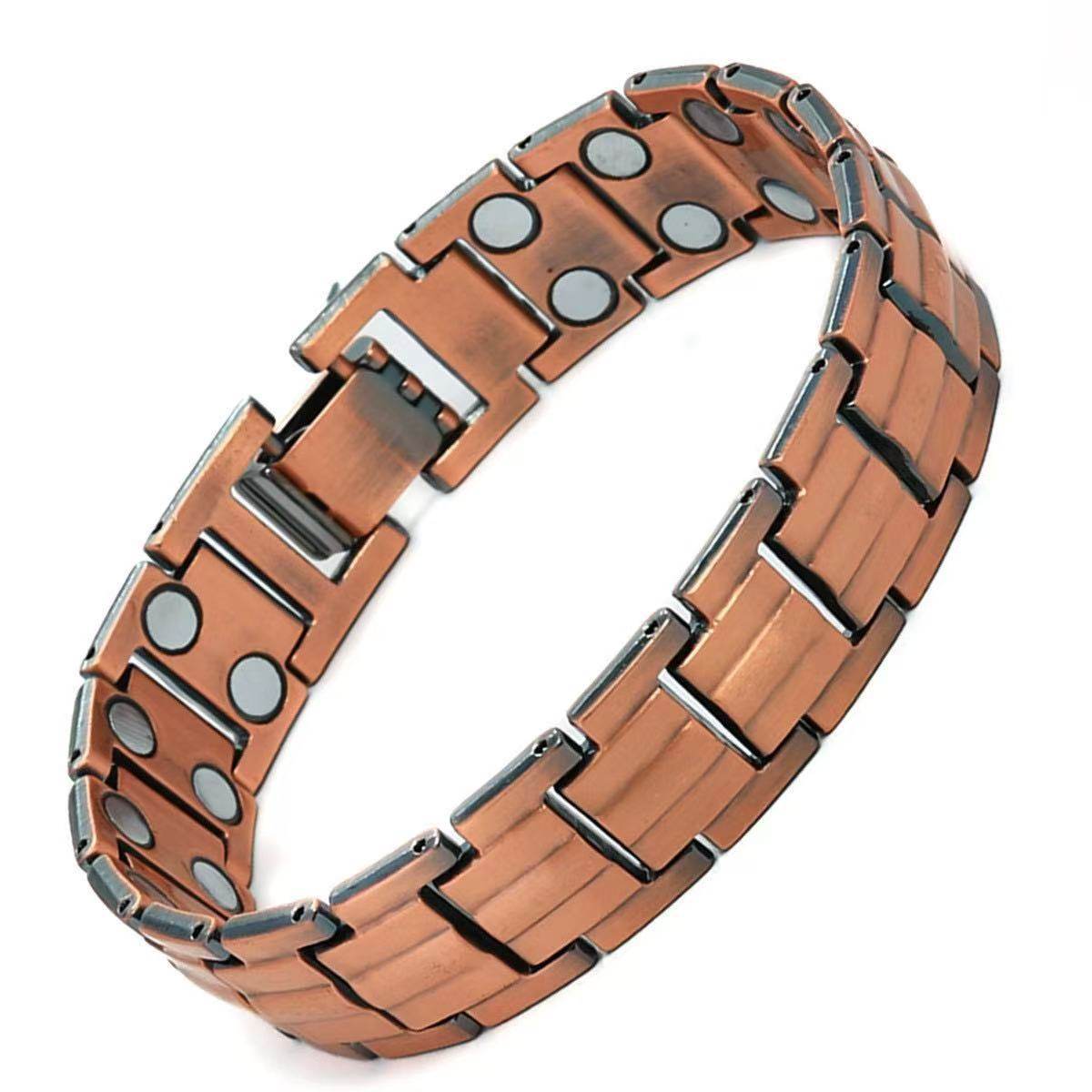 Amazon's Best-Selling European and American Cross-Border Twill Ancient Red Copper Men's Bracelet Three-Row Magnet Bracelet Wholesale