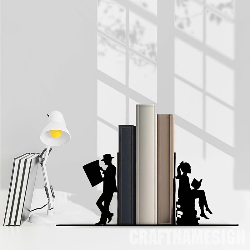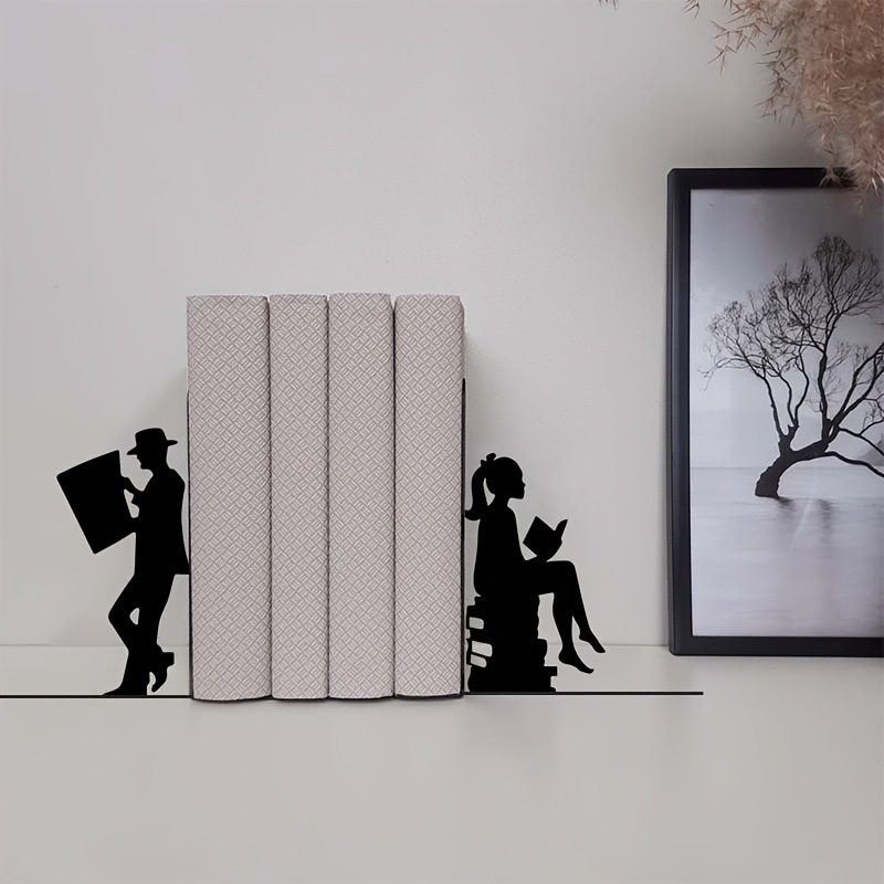 Creative Reader Metal Bookend Literary and Artistic Male and Female Style Bookend Study Book Storage Rack Personalized Desktop Decoration