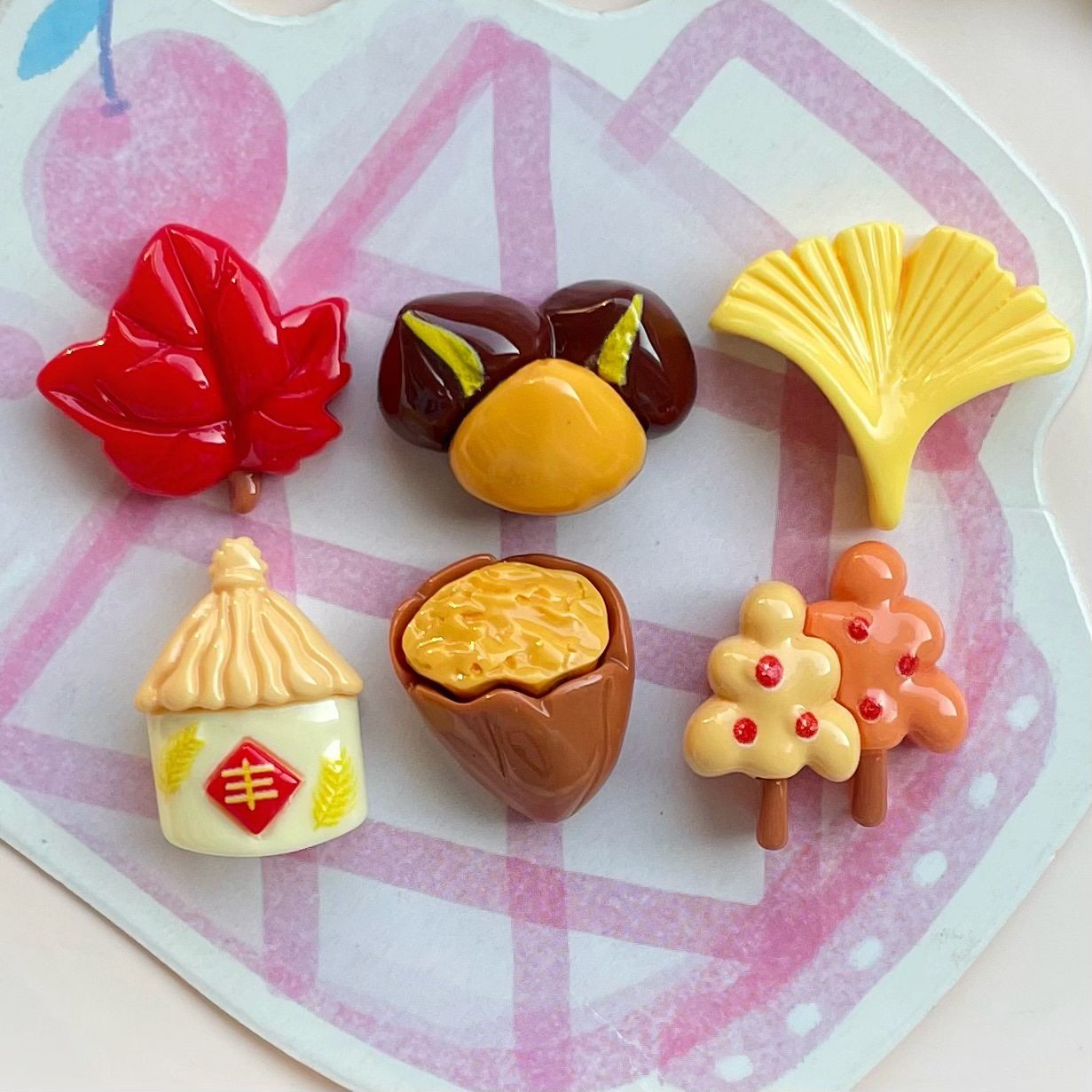| Color | Mixed random one,1*red maple leaf,2*grain warehouse with feng character,3*half hazelnuts,4*three chestnuts,5*yellow ginkgo leaves,6*yellow-orange two trees |