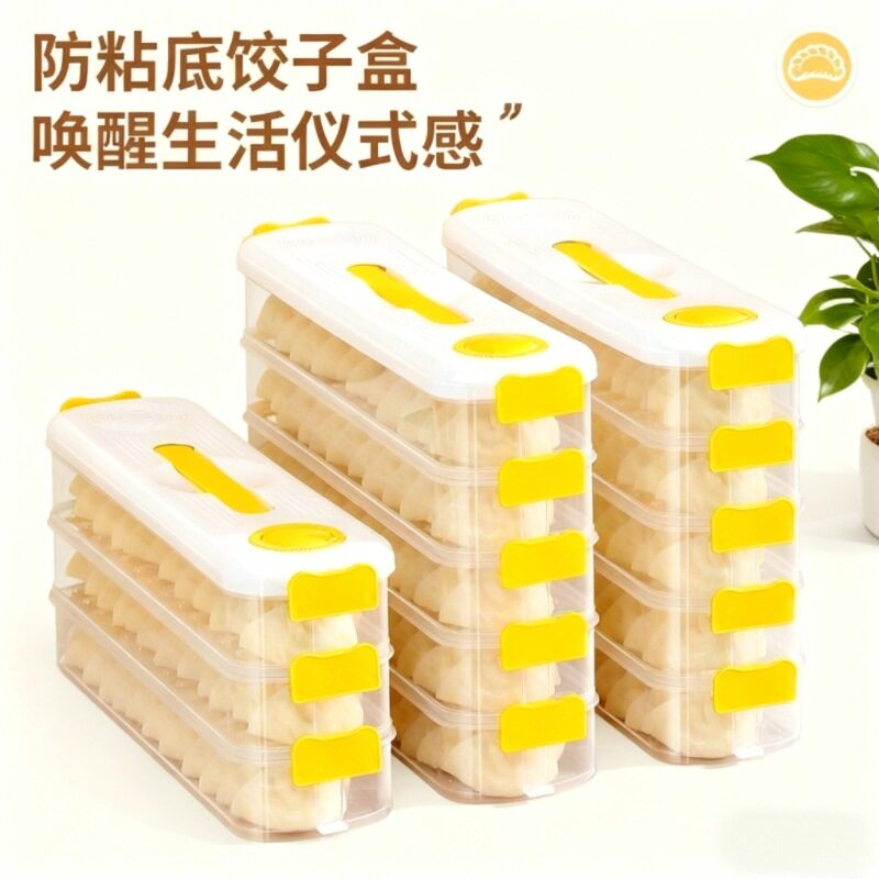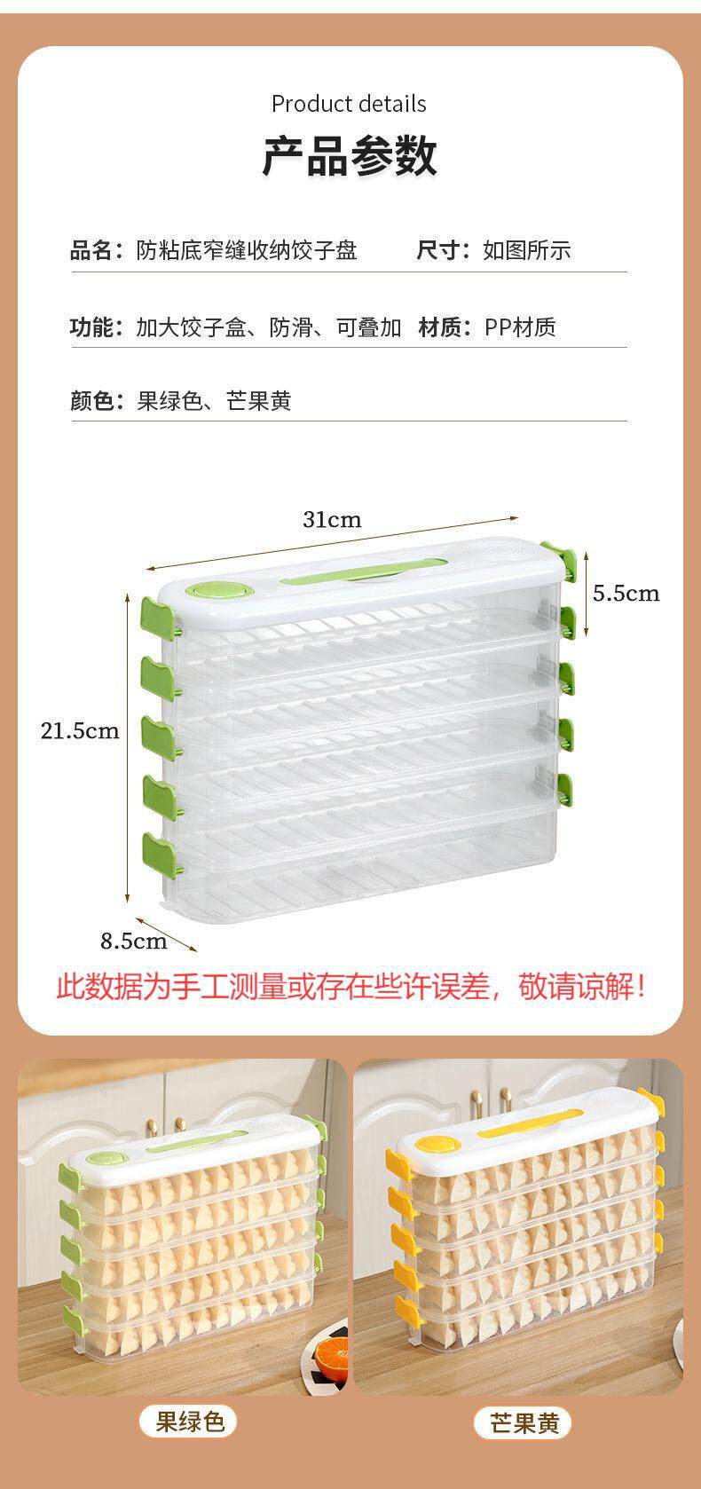 Narrow-Sided Dumpling Box for Frozen Dumplings, Multi-Layer Storage, Non-Stick Bottom, Large Capacity, Refrigerator Preservation, Sealed Dumpling Freezing Box