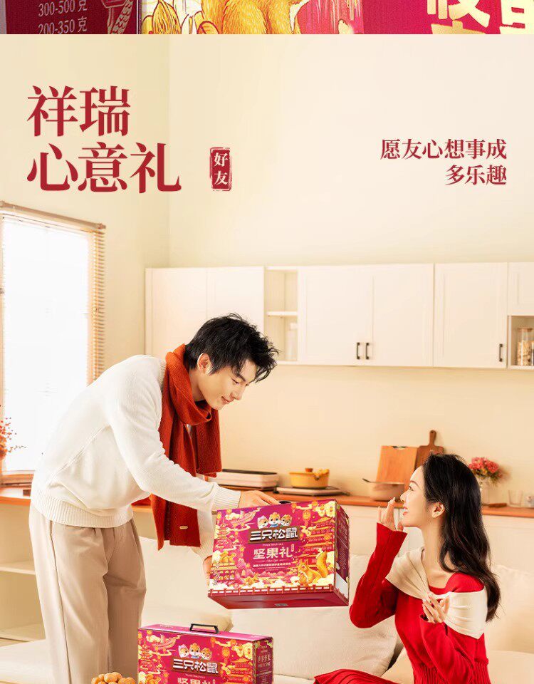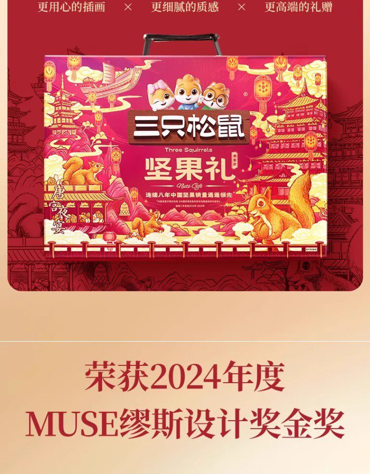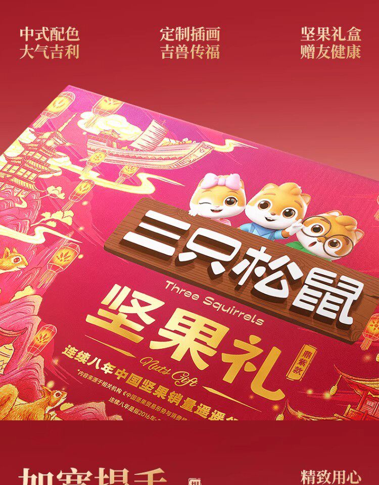 Sf Express Free Shipping Three Squirrels Golden Purple A-Type 2081g New Year Nut Gift Box Holiday Gift for Elders