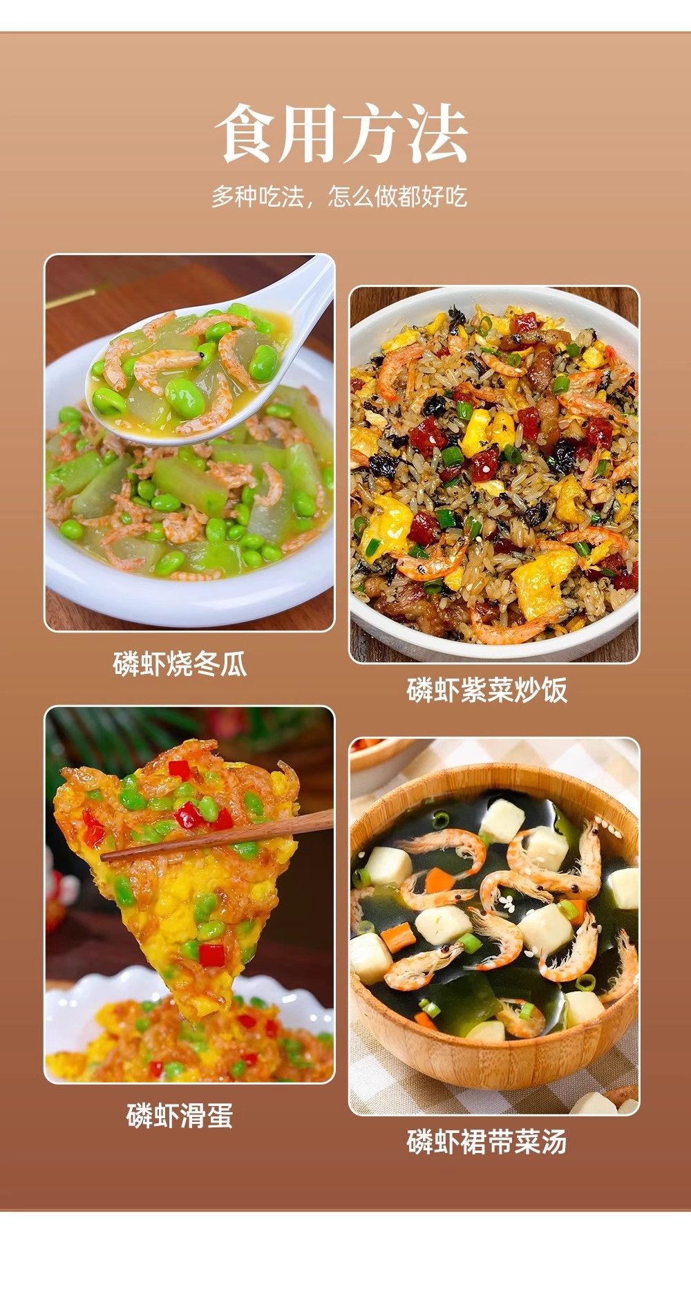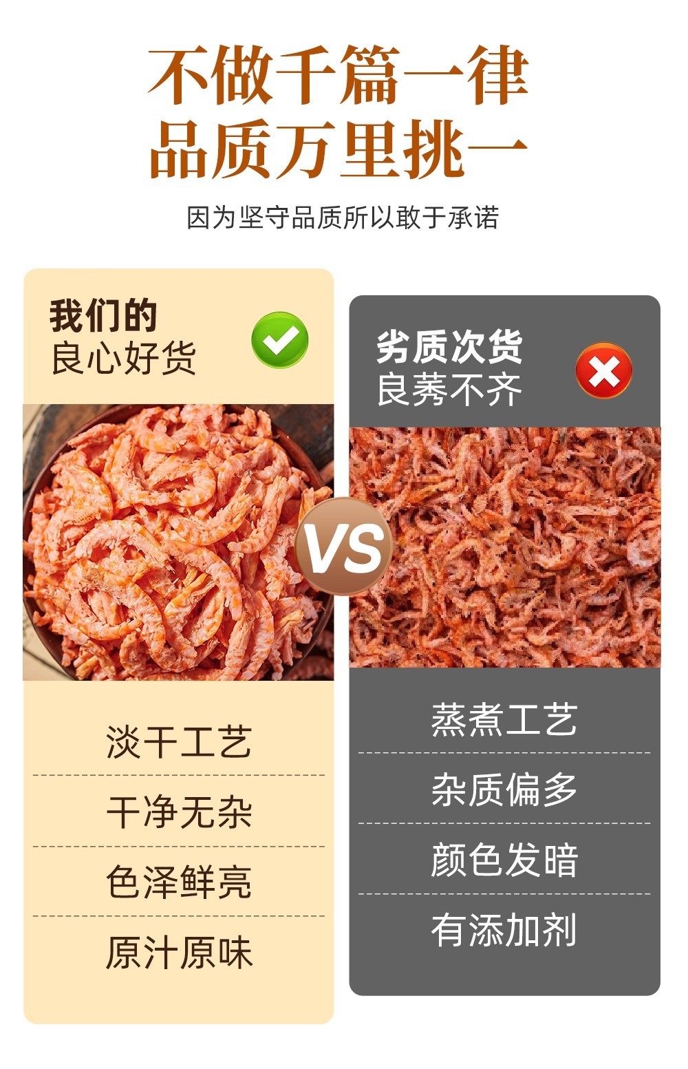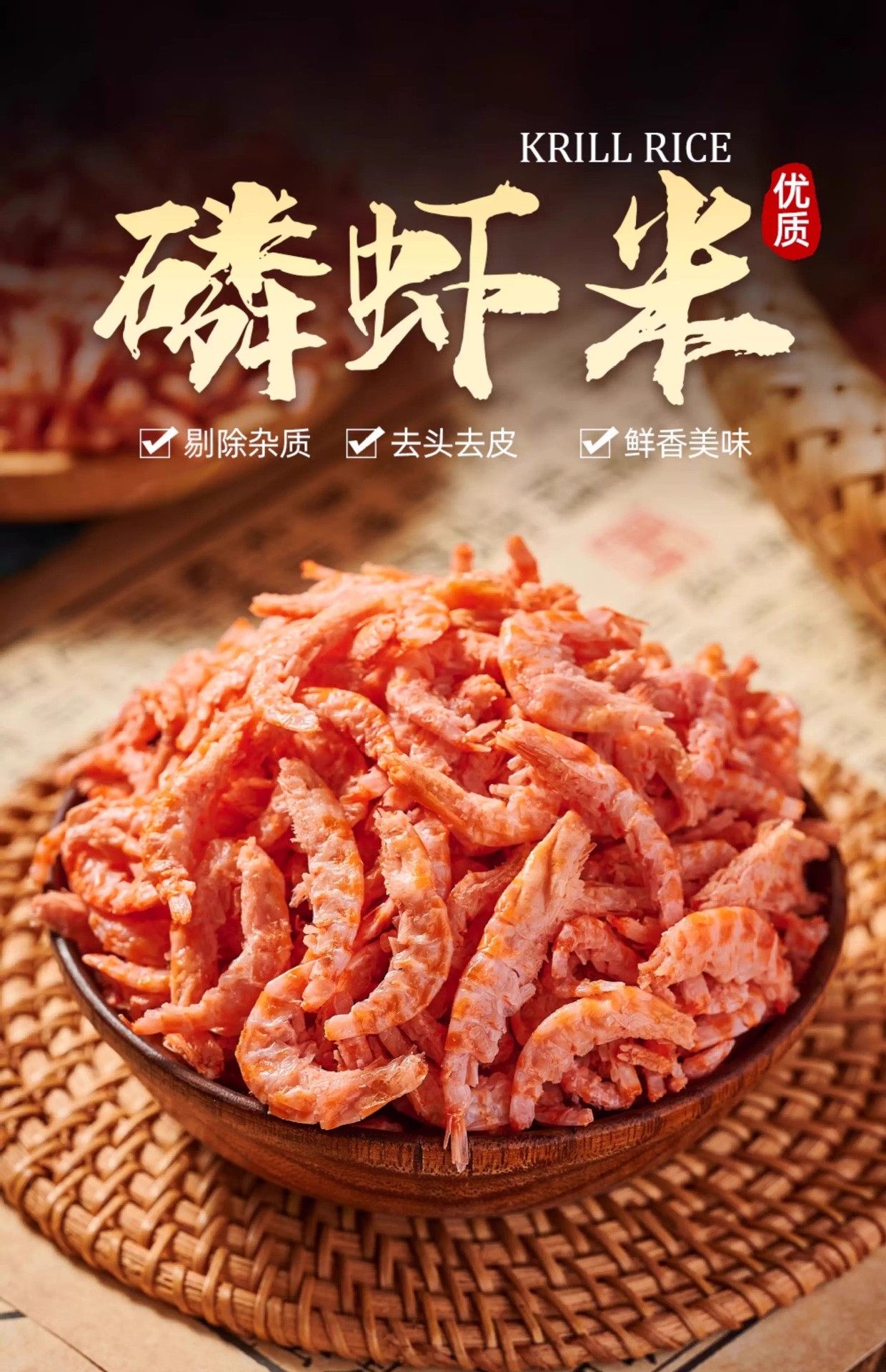 | Packaging specifications | Lightly dried and not salty [about 3-5cm] antarctic krill with head and skin removed 500g*1 bag (500g),New krill [buy 0.5kg get 0.5kg free] 500*2 bags,[cost-effective package] headless and peeled krill rice 500g*3 bags,[catering purchase] krill rice 500g*5 bags |