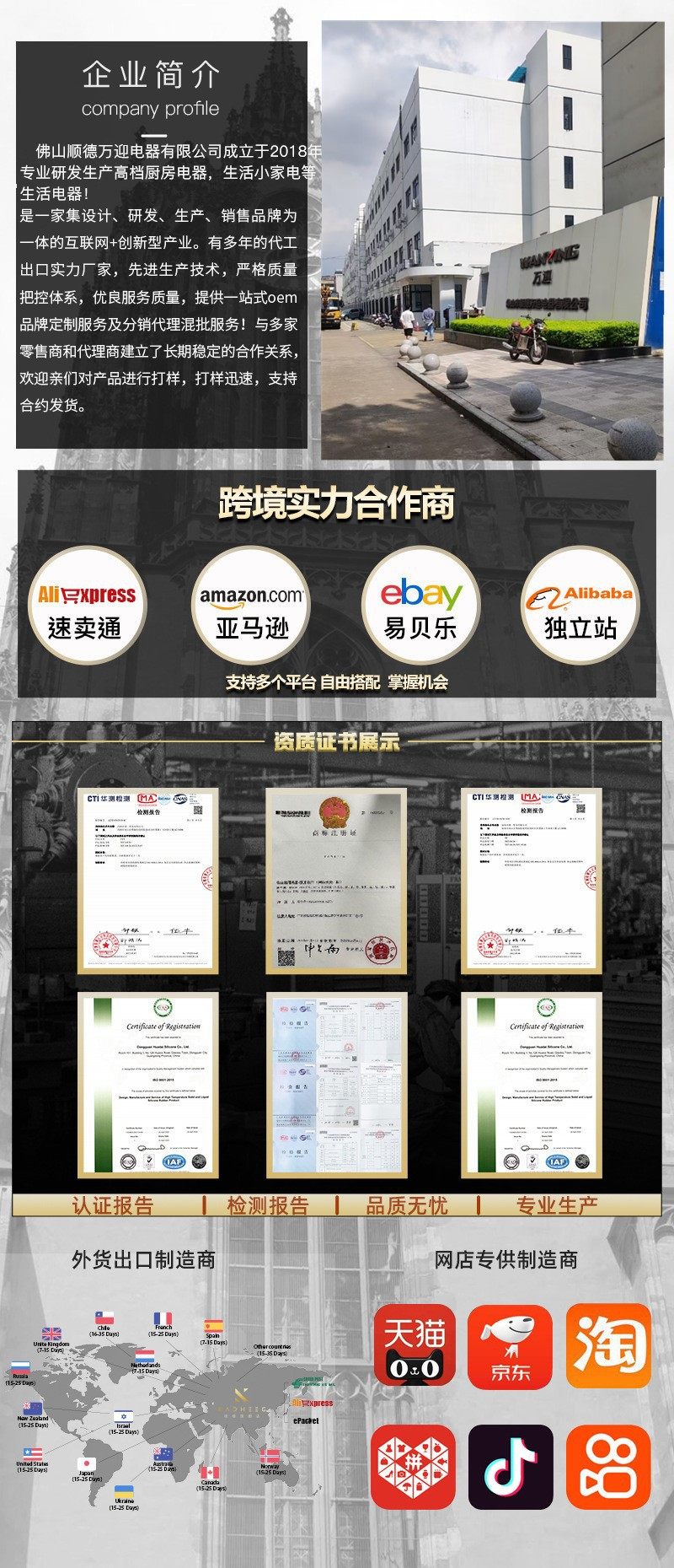 | Main downstream platforms | Ebay,Amazon,Wish,Aliexpress,Independent station,Lazada,Other |