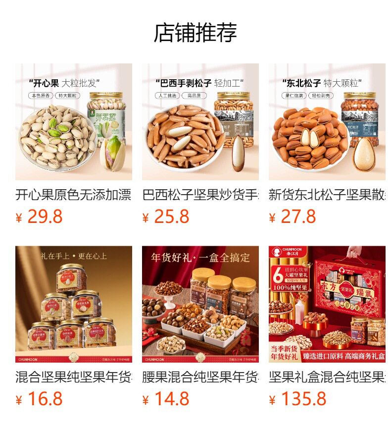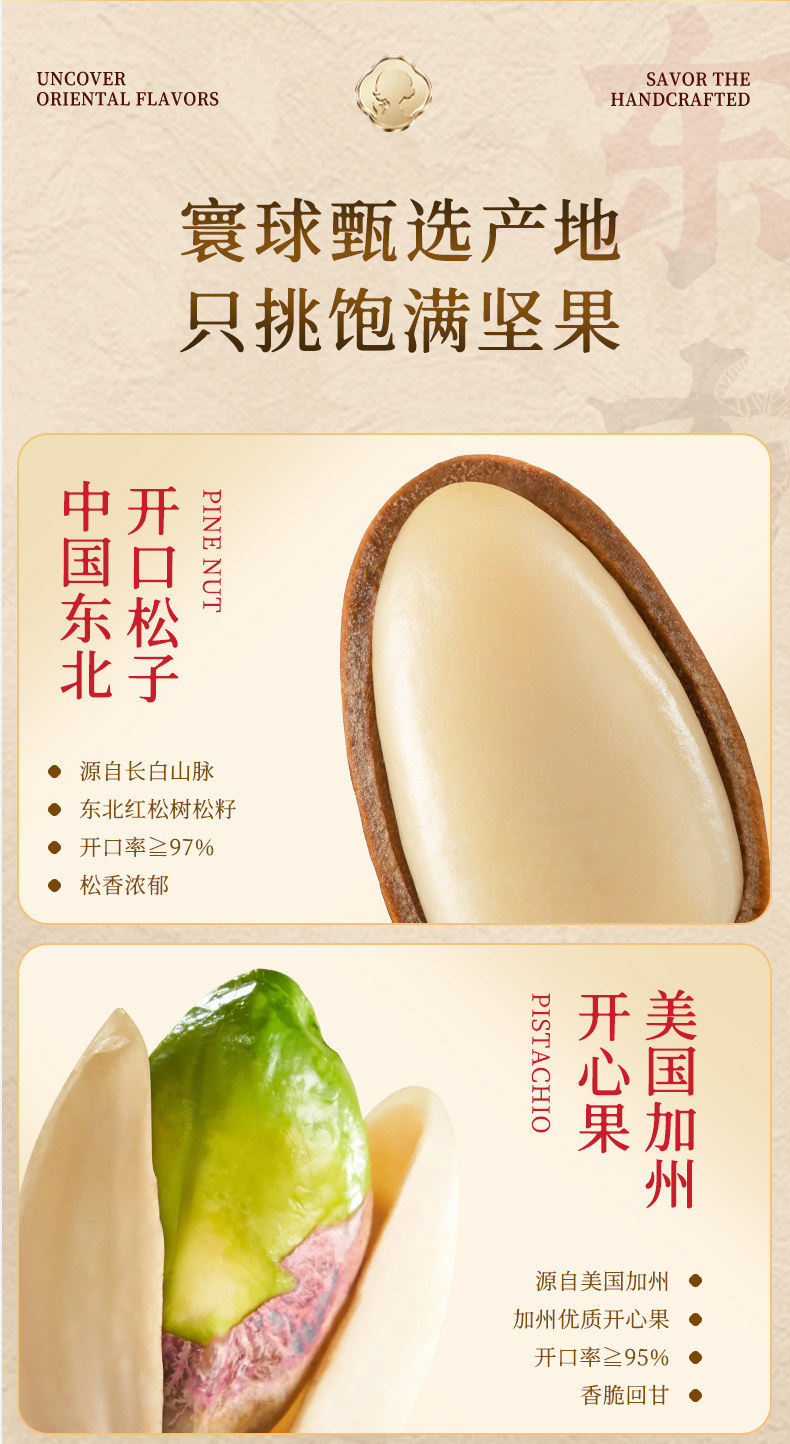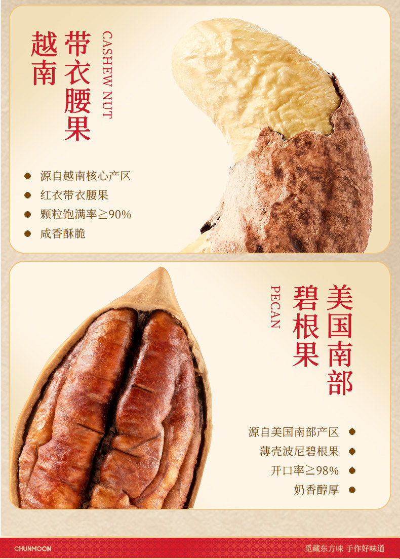 | Packaging specifications | [extra large 160 cashew nuts with skin] 500g*1 can,【macadamia nuts】extra large particles (net content 500gx1 can),[brazilian pine nuts] extra large capsules, net weight 500g (thin shell, easy to peel, full nuts),【large kernels northeast pine nuts】500g * 1 can (net weight),[pistachio] original flavor extra large particles (500g*1 can),【almond】thin shell milk flavor (500gx1 can),[lin'an pecans] net content 500g*1 can (boiled flavor),[torreya] net content 500g*1 can (good quality),[amber walnut kernel] net content 500g*1 can,[full box of bulk goods] a160 cashew nuts with skin 20kg *1 box,[full box of bulk goods] original flavor extra large pistachios 12.5kg *1 box,[full box of bulk goods] almond original flavor 14kg *1 box,[full box of bulk goods] almond kernel salt baked flavor 14kg *1 box,[full box of bulk goods] torreya 25kg *1 box,[full box of bulk goods] pumpkin seeds 25kg *1 box |