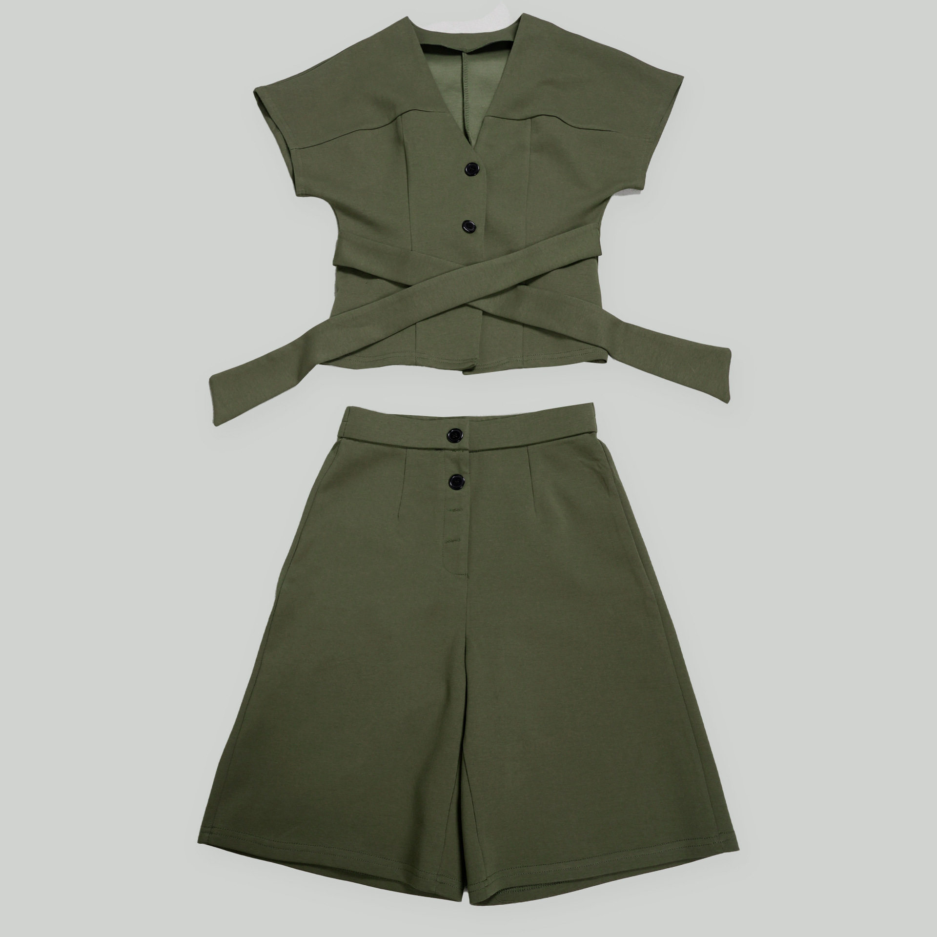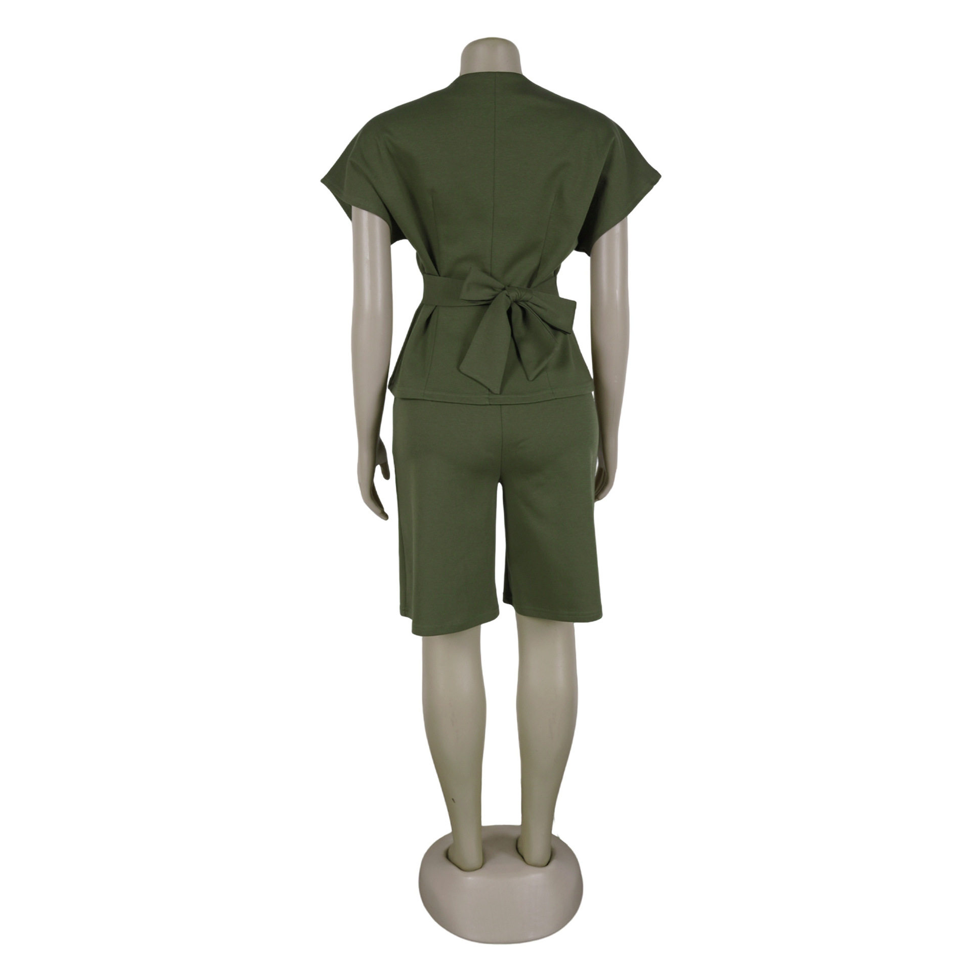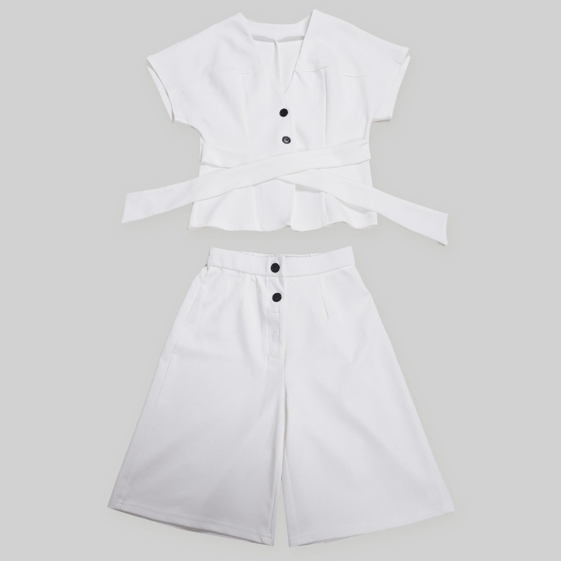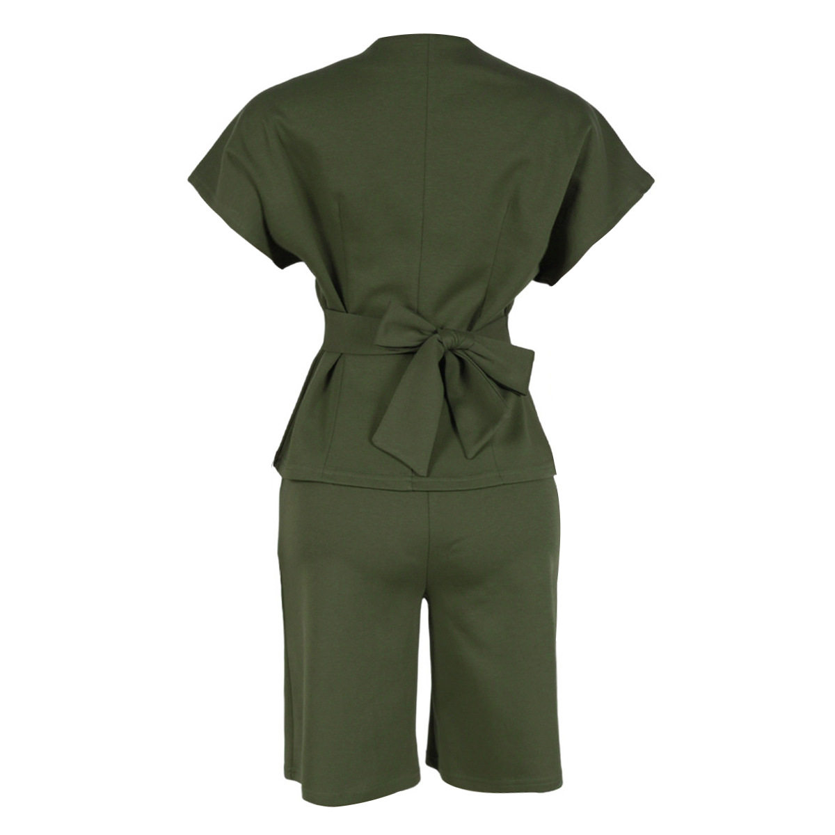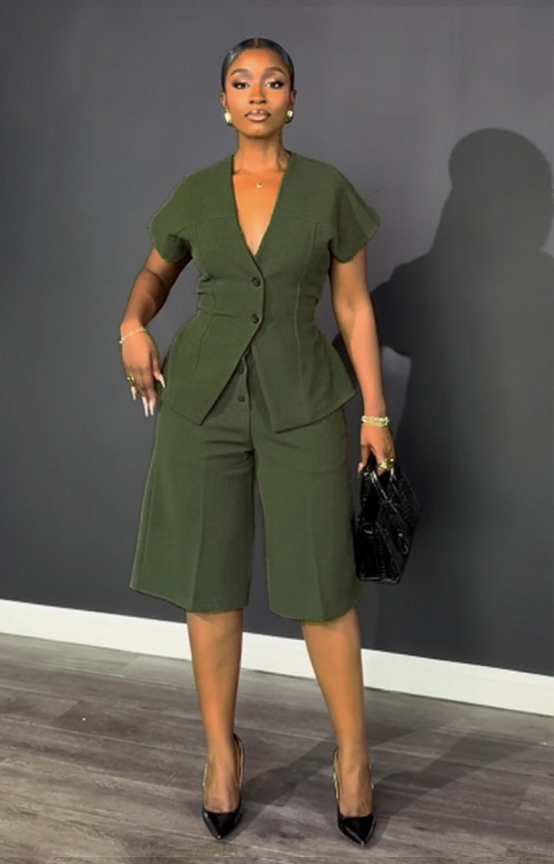 S11219 European Elegant Commuter Raglan Sleeves Waist Strap Mid-Pants Two-Piece Set
