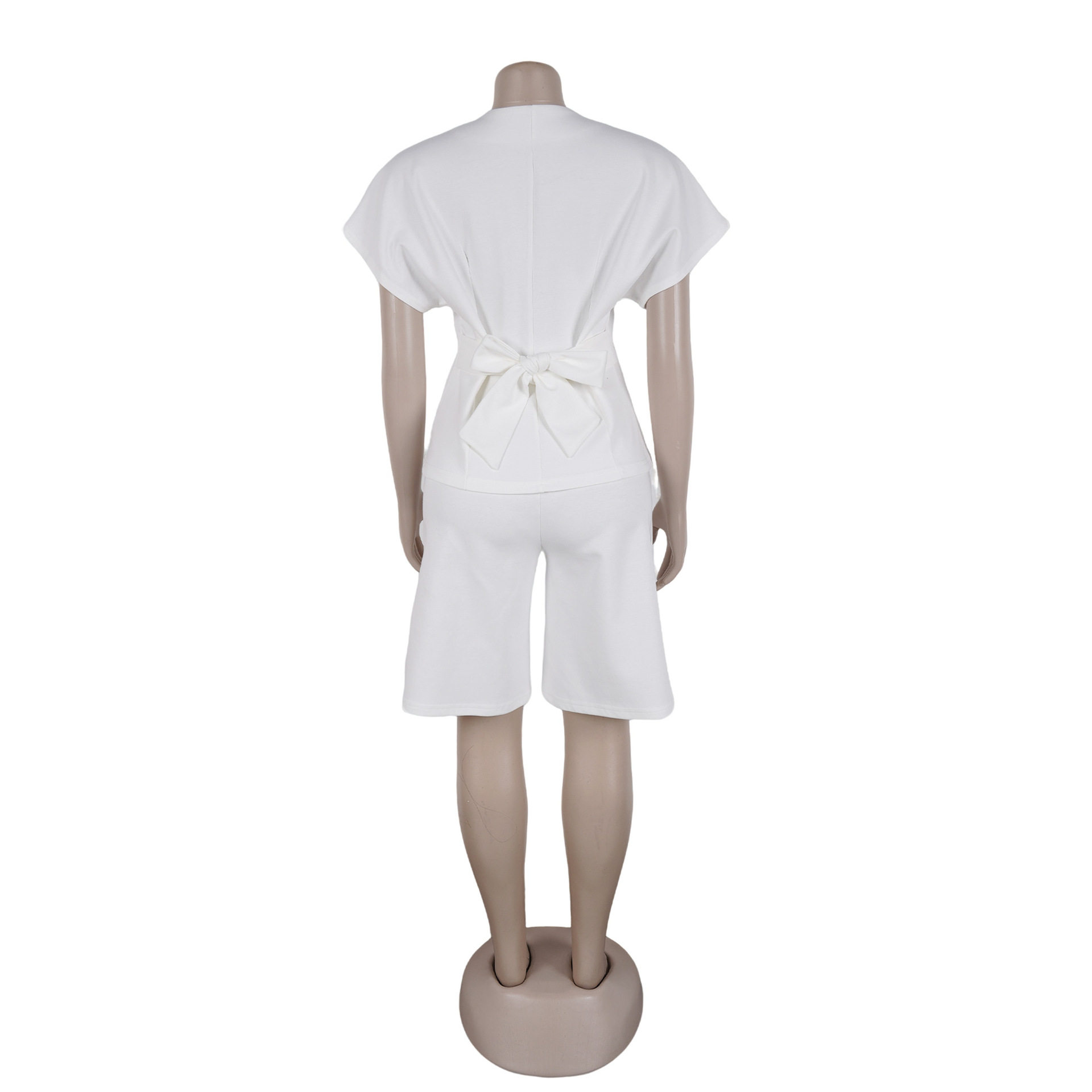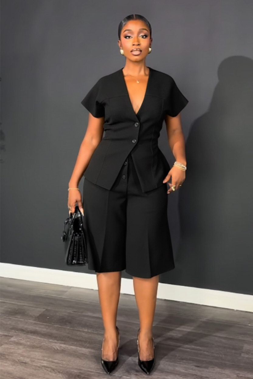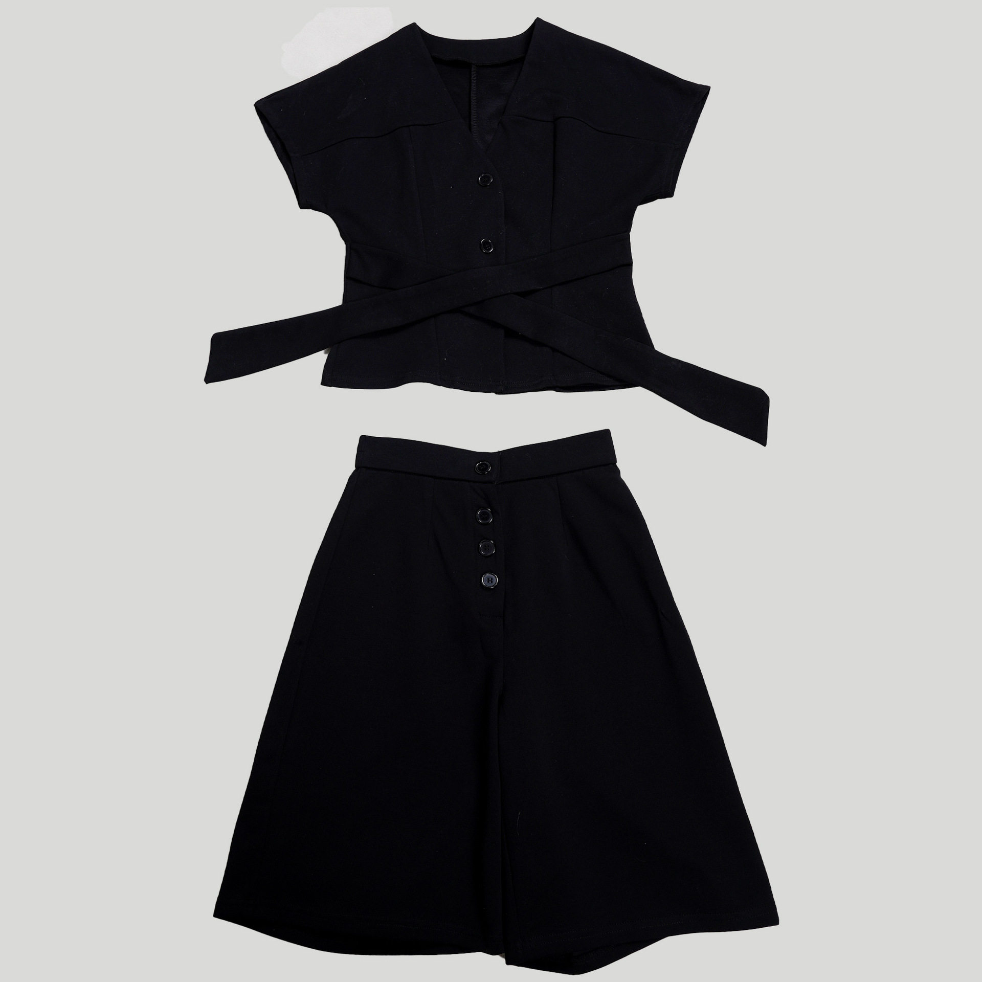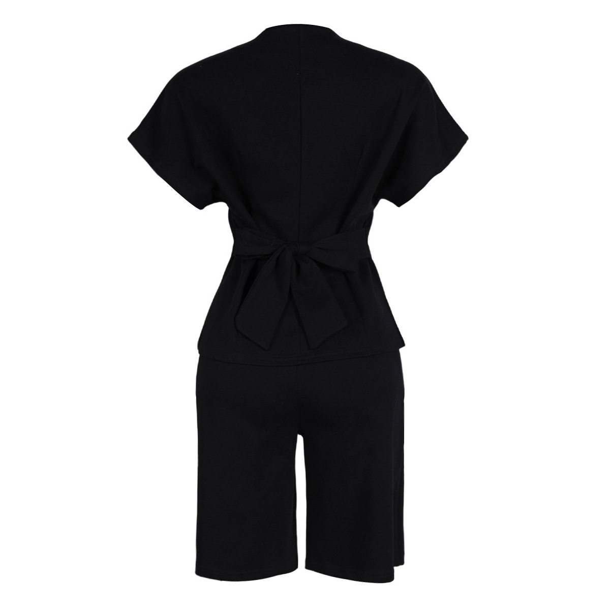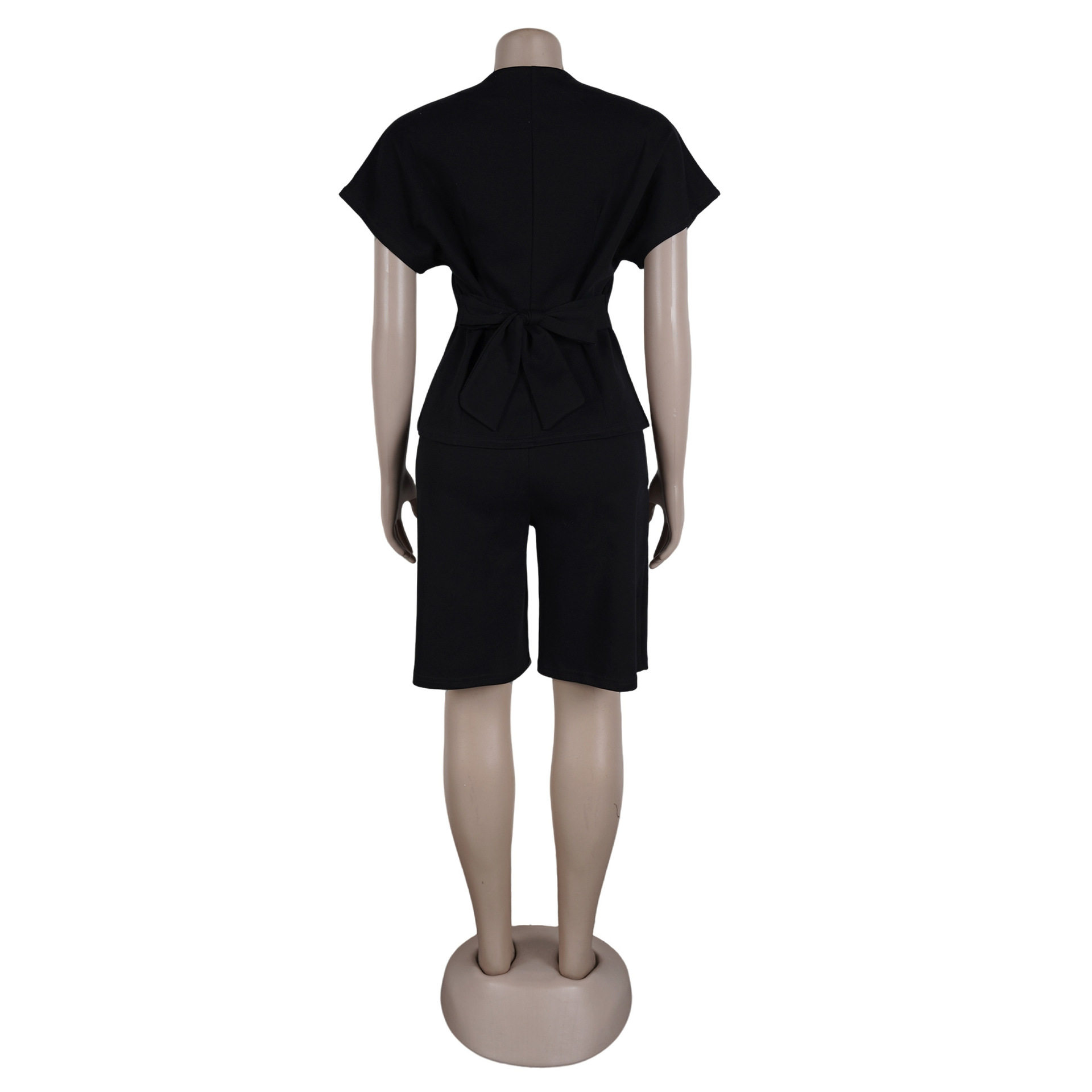 S11219 European Elegant Commuter Raglan Sleeves Waist Strap Mid-Pants Two-Piece Set