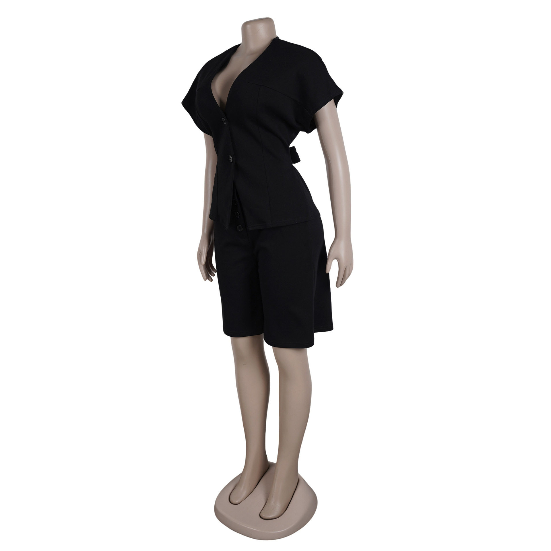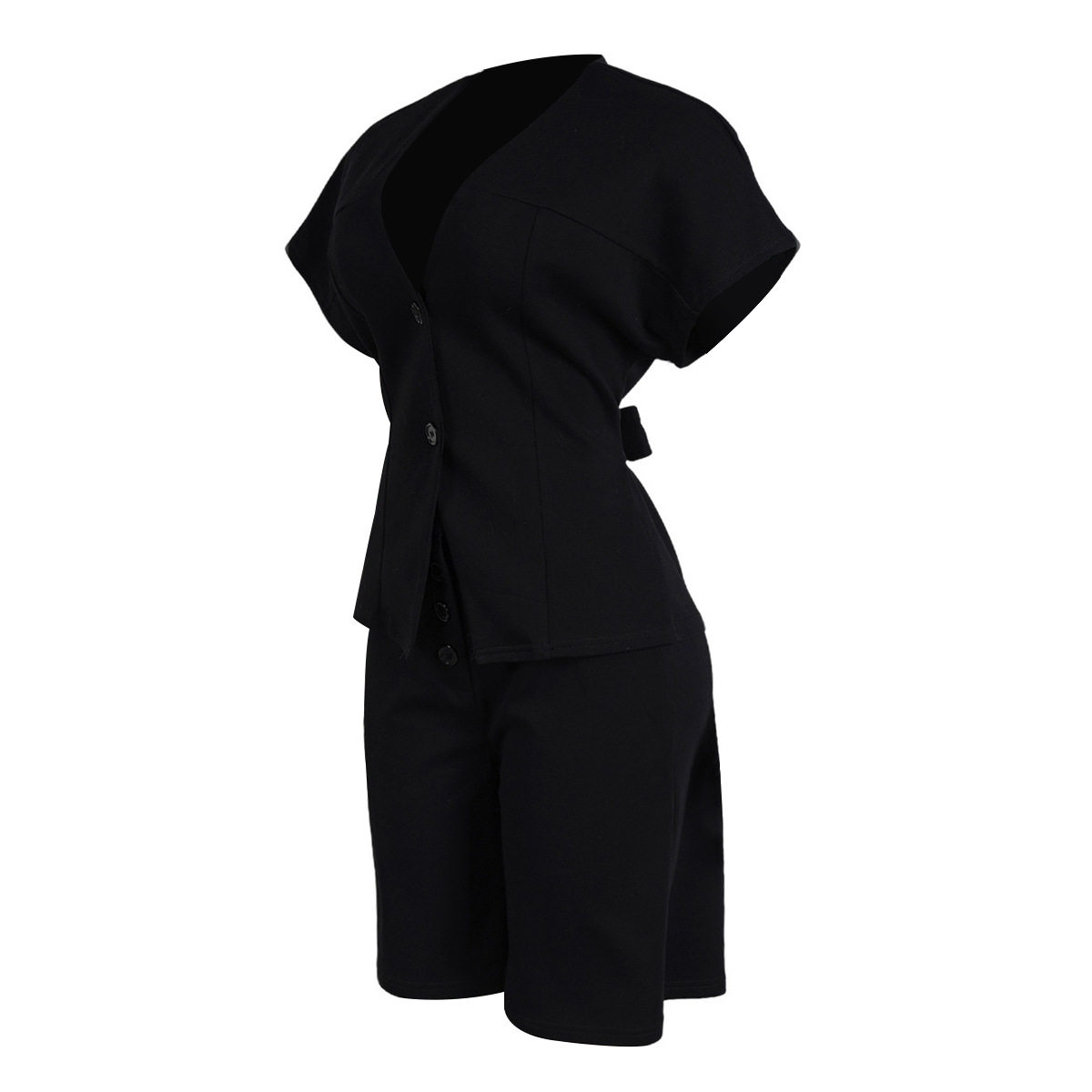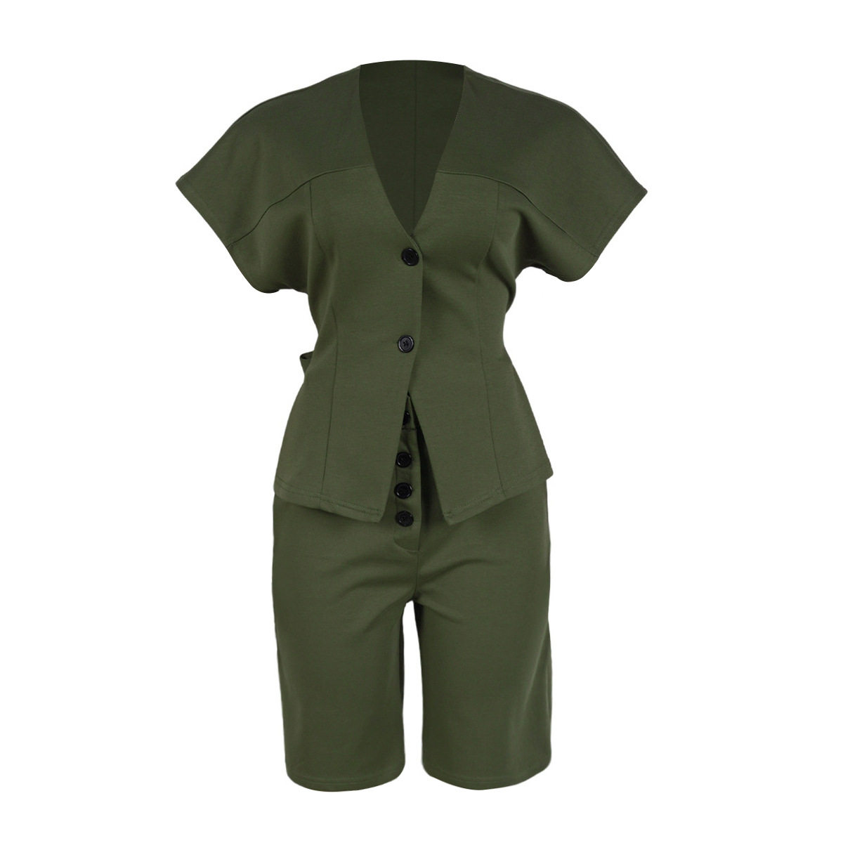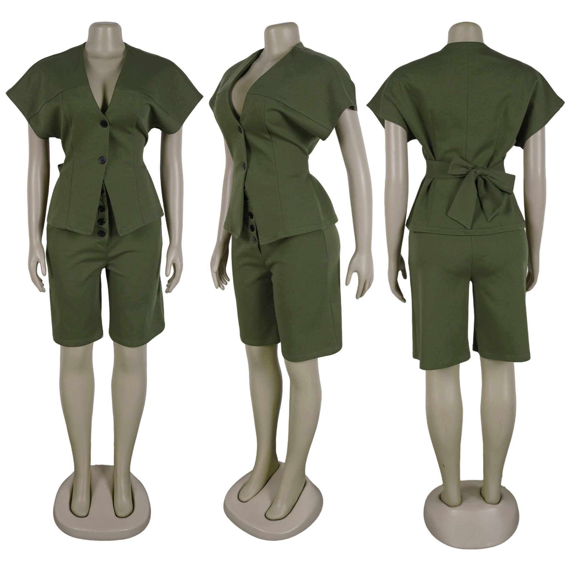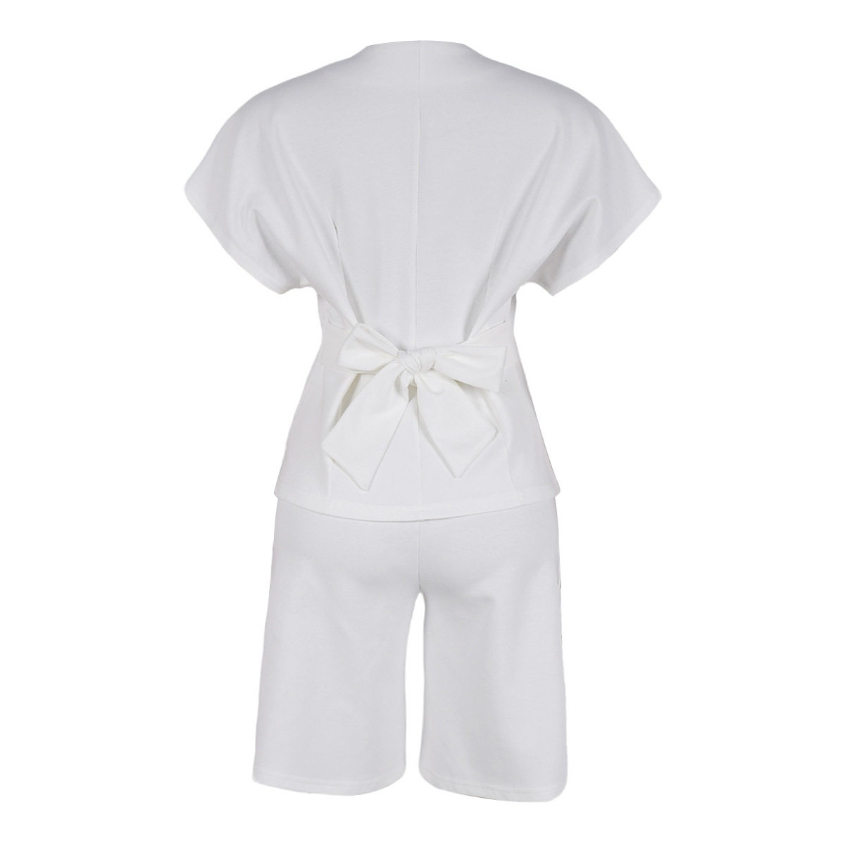 S11219 European Elegant Commuter Raglan Sleeves Waist Strap Mid-Pants Two-Piece Set