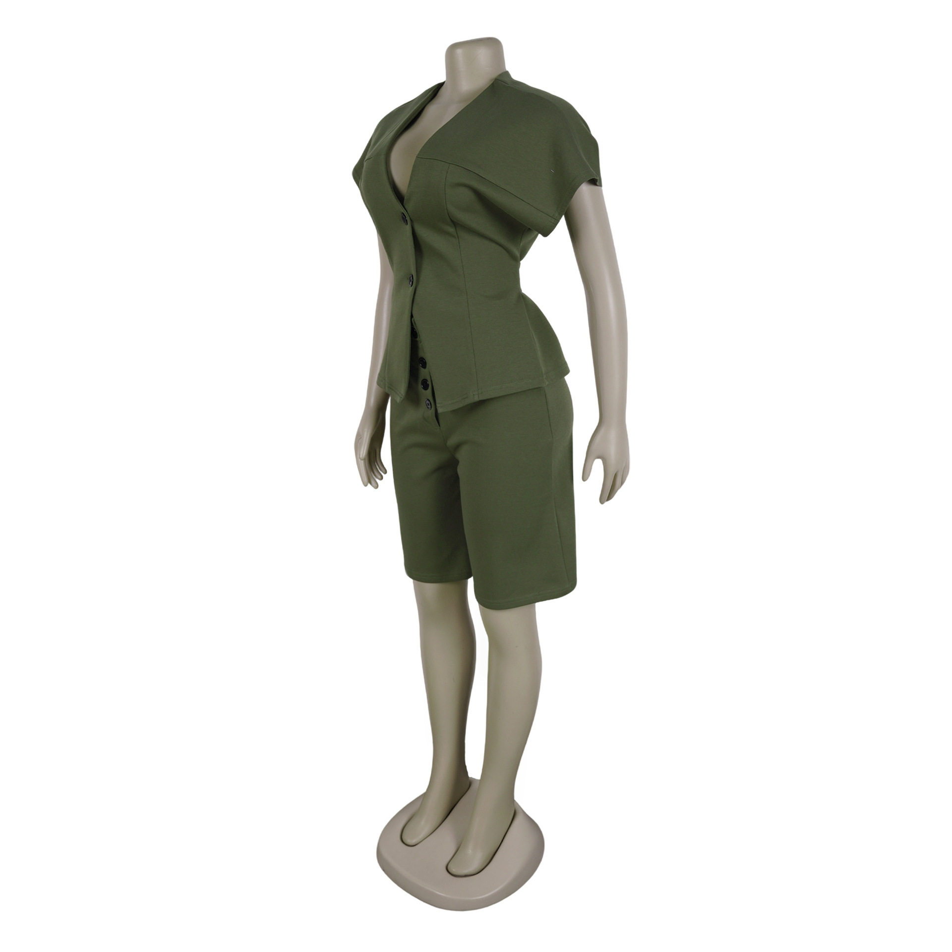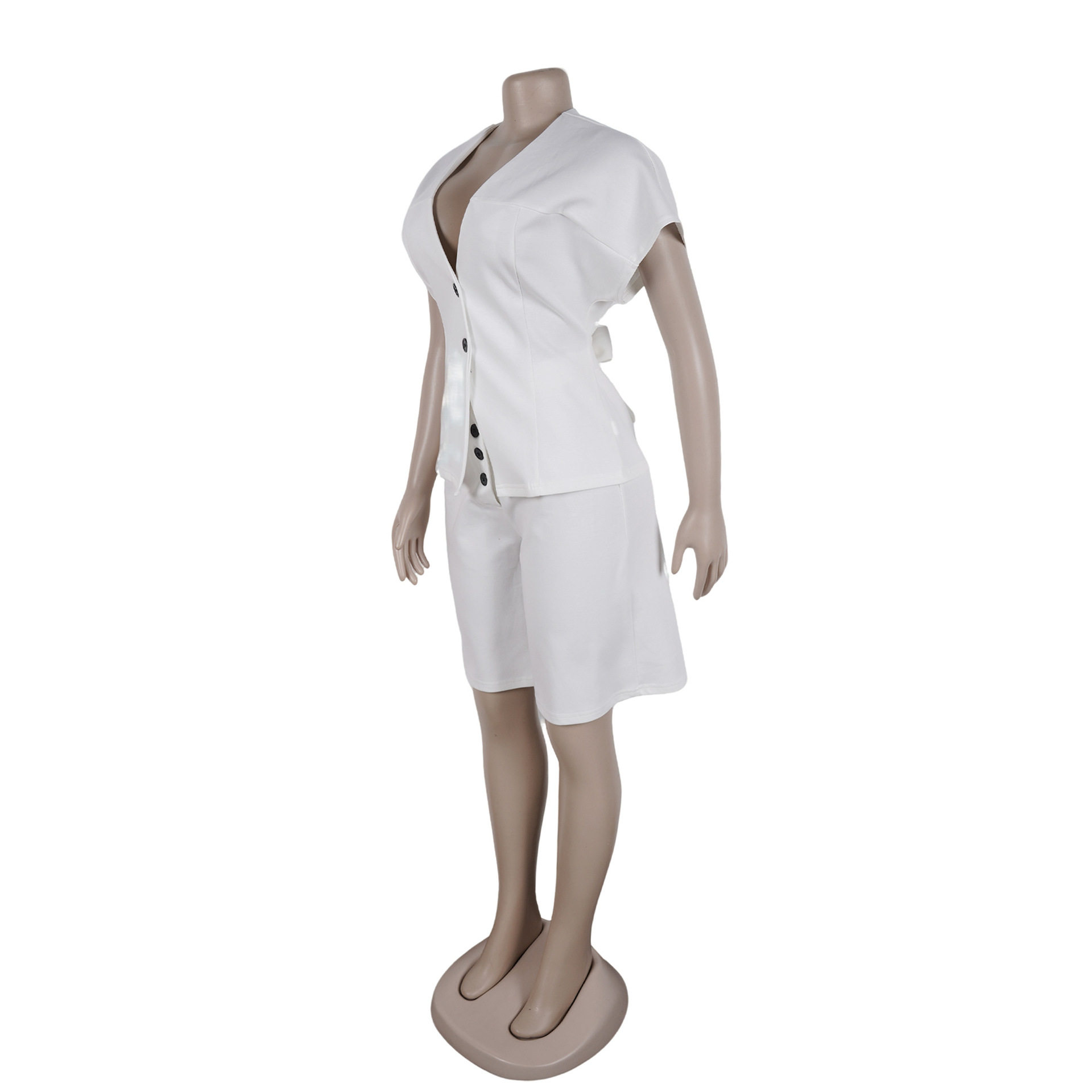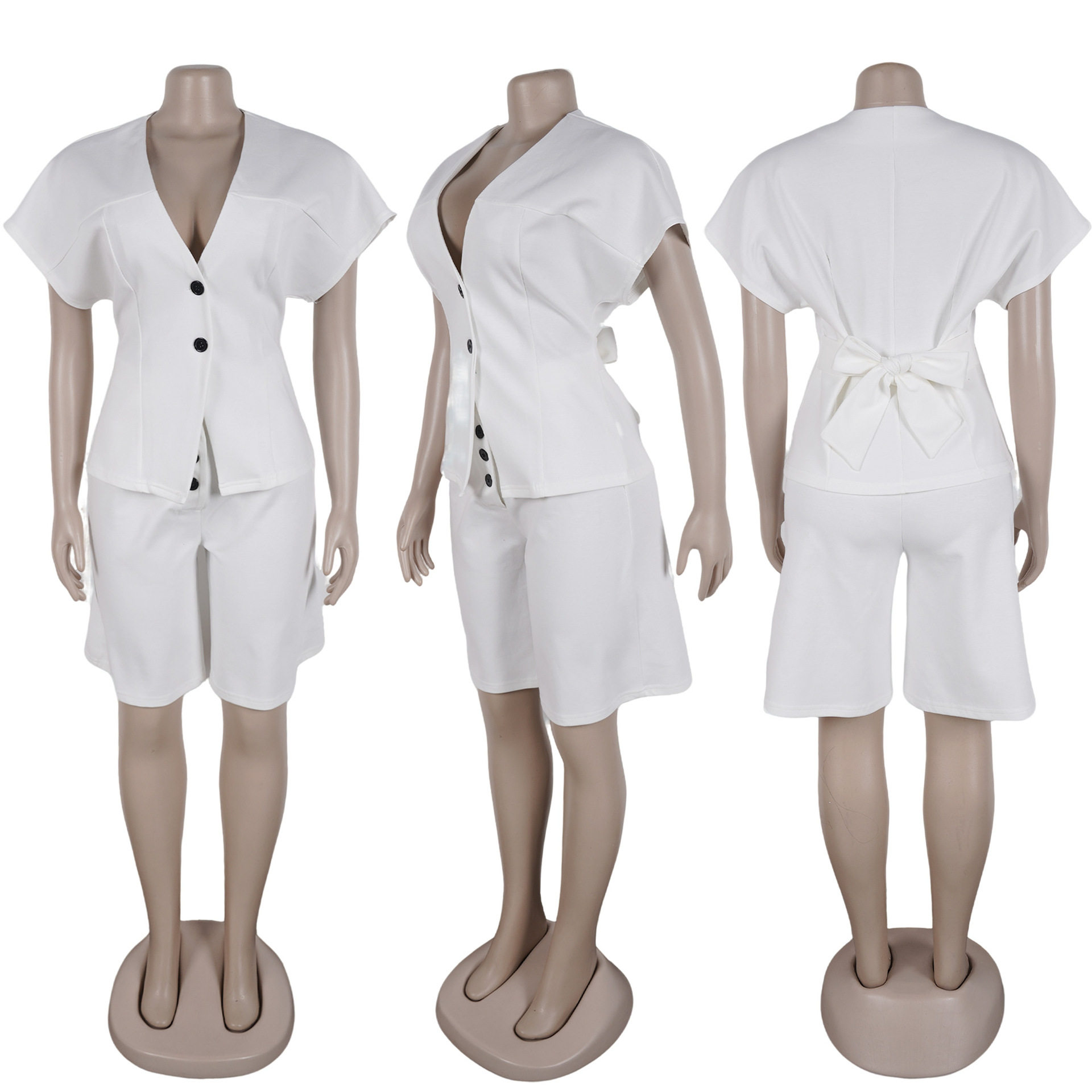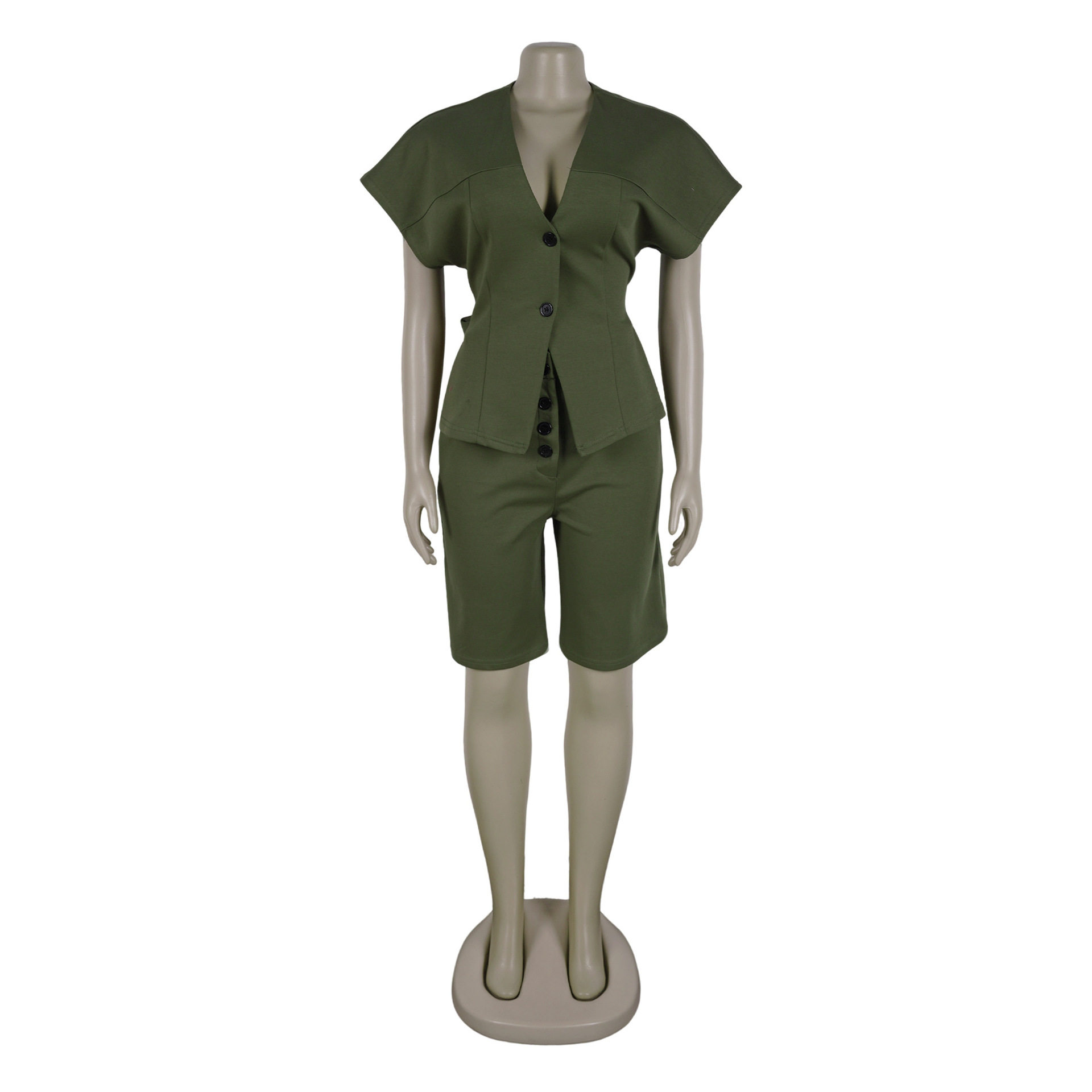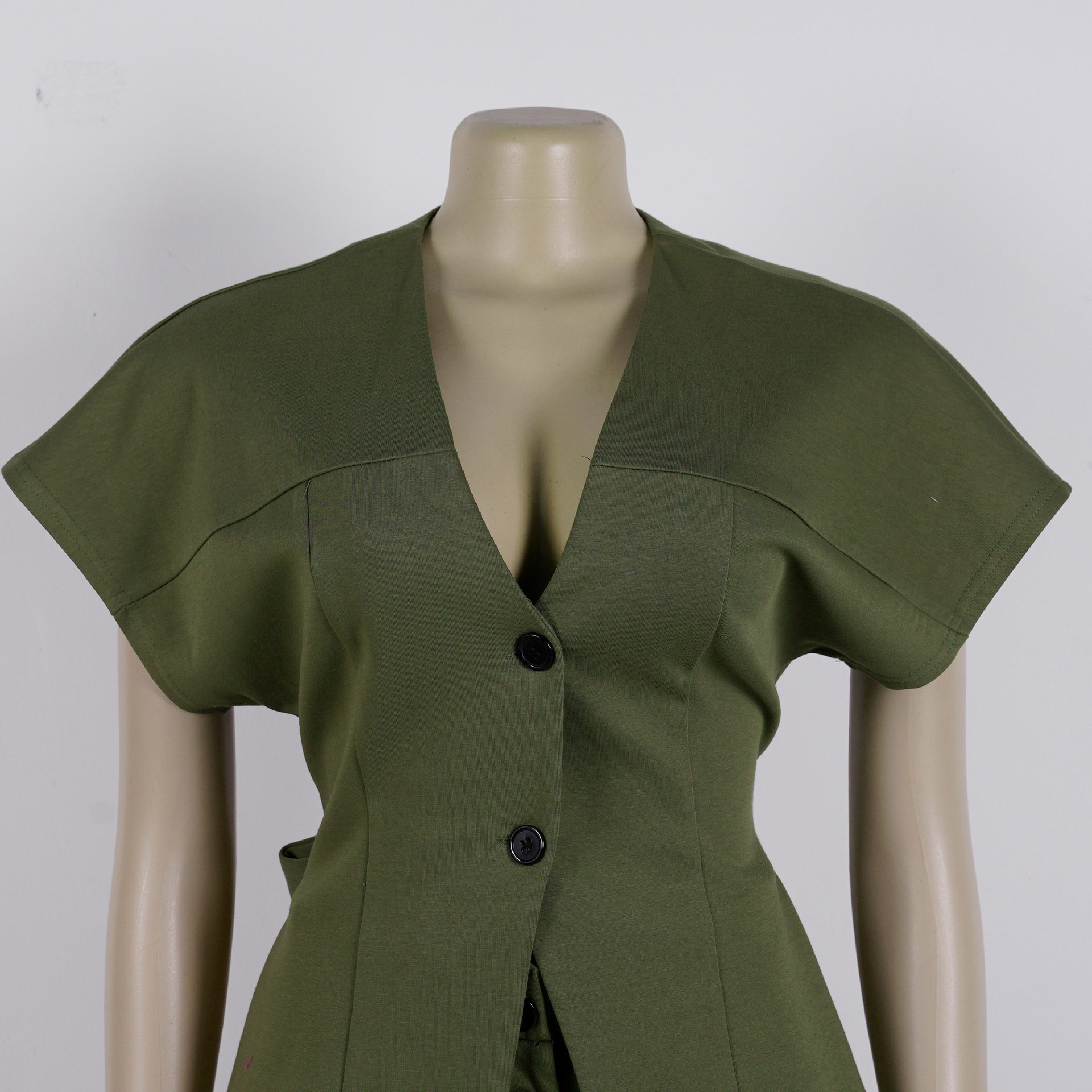S11219 European Elegant Commuter Raglan Sleeves Waist Strap Mid-Pants Two-Piece Set