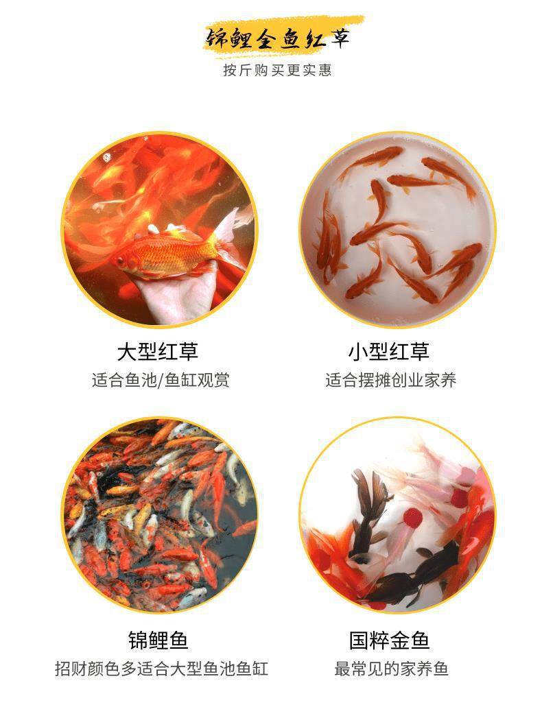 | Body shape | There are about 3-6 red grass per pound, 18- 25cm,There are about 5-10 red grass per pound 16- 20cm,Red grass 15-25 pounds 10- 15cm,There are about 30-40 red grasses per pound 9- 12cm,There are about 40-60 red grasses per pound 7- 9cm,There are about 6-80 pieces of red grass per pound 6- 8cm,There are about 80-100 pieces of red grass per pound 6- 7cm,There are about 100-120 red grass per pound 5- 7cm,There are about 120-140 red grass per pound 5- 6cm,Red grass carp 1kg, about 140-160 pieces 4- 6cm,Red grass 160-180 pieces per pound 3- 5cm,Red grass carp 1kg 200-250 2- 4cm,1 pound of flowers and plants, 40-60 pieces,Golden koi 1kg 30-50 pieces 6- 10cm,Golden koi 1kg 4-10 pieces 13- 20cm,Koi mixed hair 1kg 35-50 pieces 7- 12cm,Mixed koi, 1 pound, 10-15 fish, 10-15 cm in length,Koi mixed 1 pound 3-5 pieces 18- 23cm,Each big koi 0.5kg-2.8kg --45 cm 2.5kg,Koi mixed hair 1kg 1-3 24- 29cm,Goldfish mixed hair 1kg 15-25 8- 11cm |