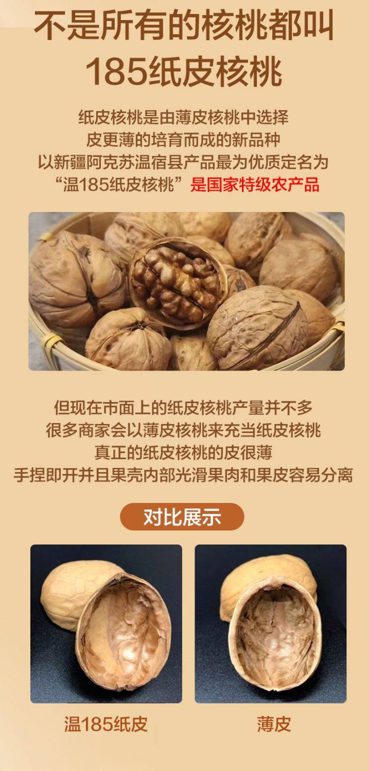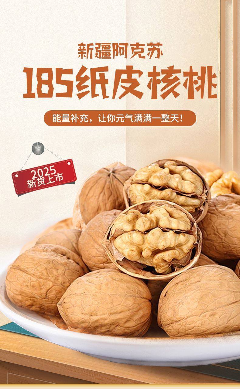 Xinjiang Direct Shipment 185 Paper-Skinned Walnuts Original Flavor Aksu Walnuts 2025 New Supply Factory Wholesale Free Shipping
