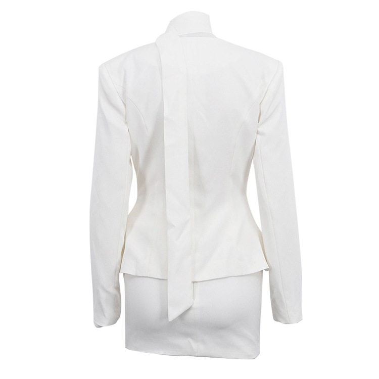 Commuting Fashion Skirt Suit Autum New Style Scarf V Neck Long-Sleeved Waist Suit Jacket Hip-Covering Skirt Two-Piece Set