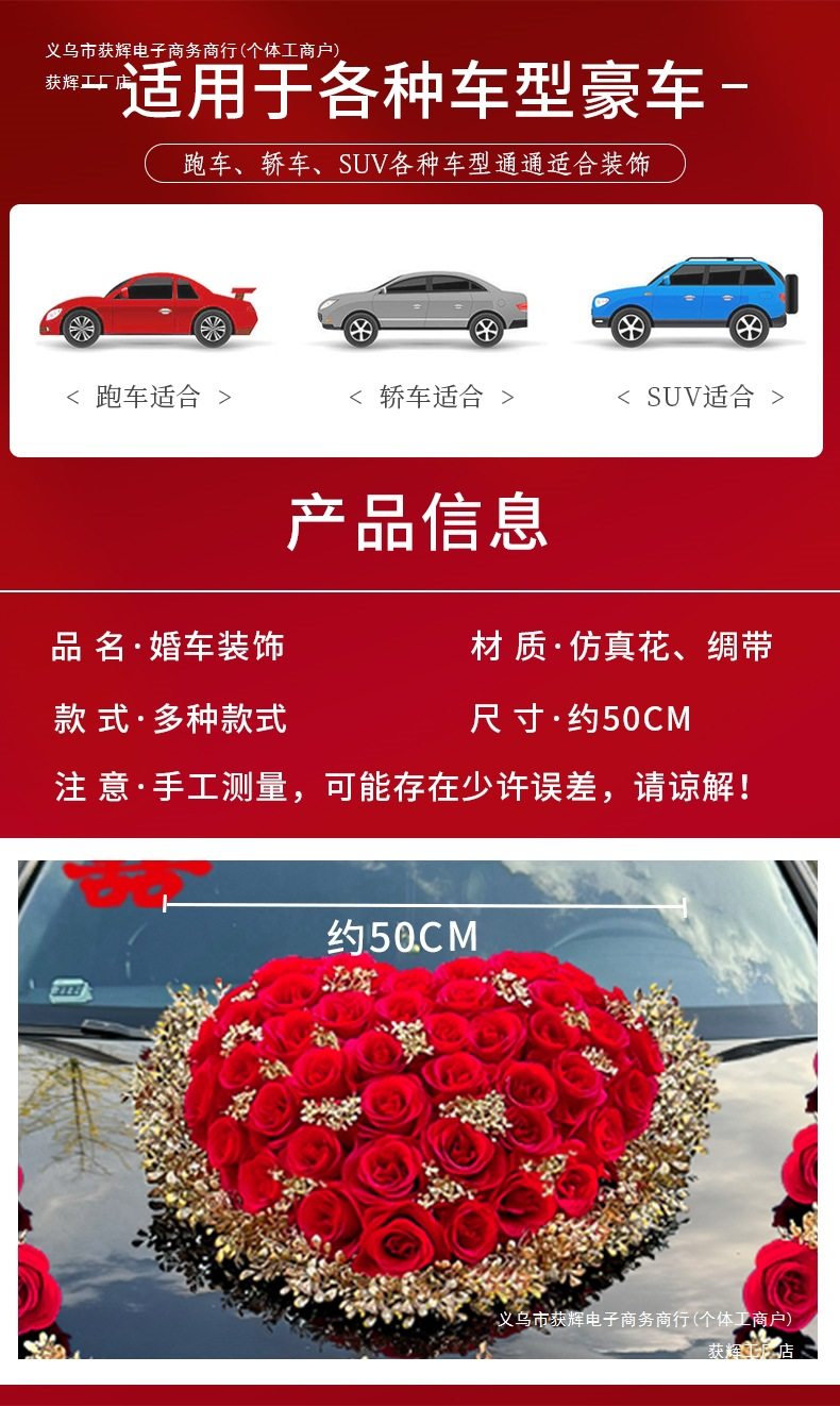 | Specifications | Type n_basic-wedding car departure, full of happiness,Type a_doll-same style as xiaohongshu,Type b_crown-high-speed escort without flying,Model c_classic-firm, the original car is intact,+doll+bouquet-highly recommended,+crown+bouquet-highly recommended,+flower bouquet - highly recommended,Type d_big v-wedding car photogenic,Type e_red-non-destructive installation, easy to remove and go,Model f_burgundy-high-speed wind resistance and stability,G model_red-simple operation, change in seconds,H style_red-the same style as the internet celebrity trend,Type i_red-universal design available for the whole car,Model j_orange-red-body, feel free to use,Model k_pink-high speed without shaking, worry-free all the way,L type_purple-easy to use, say goodbye to complexity,Model m_fenxi-suitable for all models, worry-free |