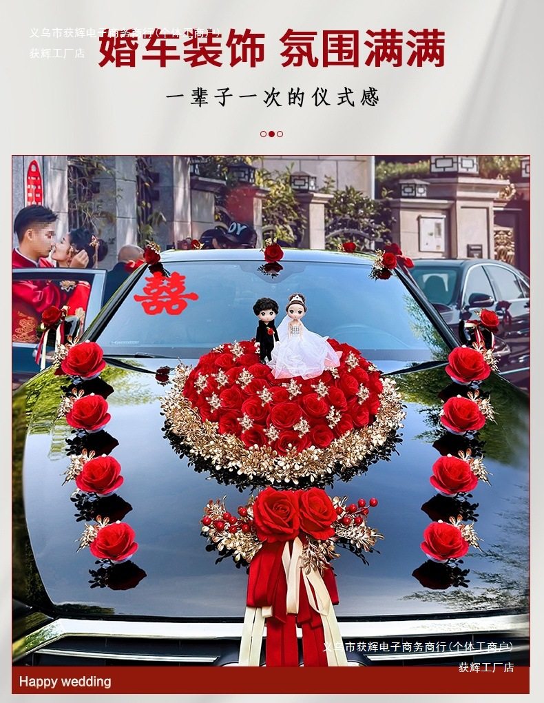 Full Set of Wedding Car Decorations, Flower Garlands, Wedding Car Roof Crown, Head Car Flowers 2025 Flowers