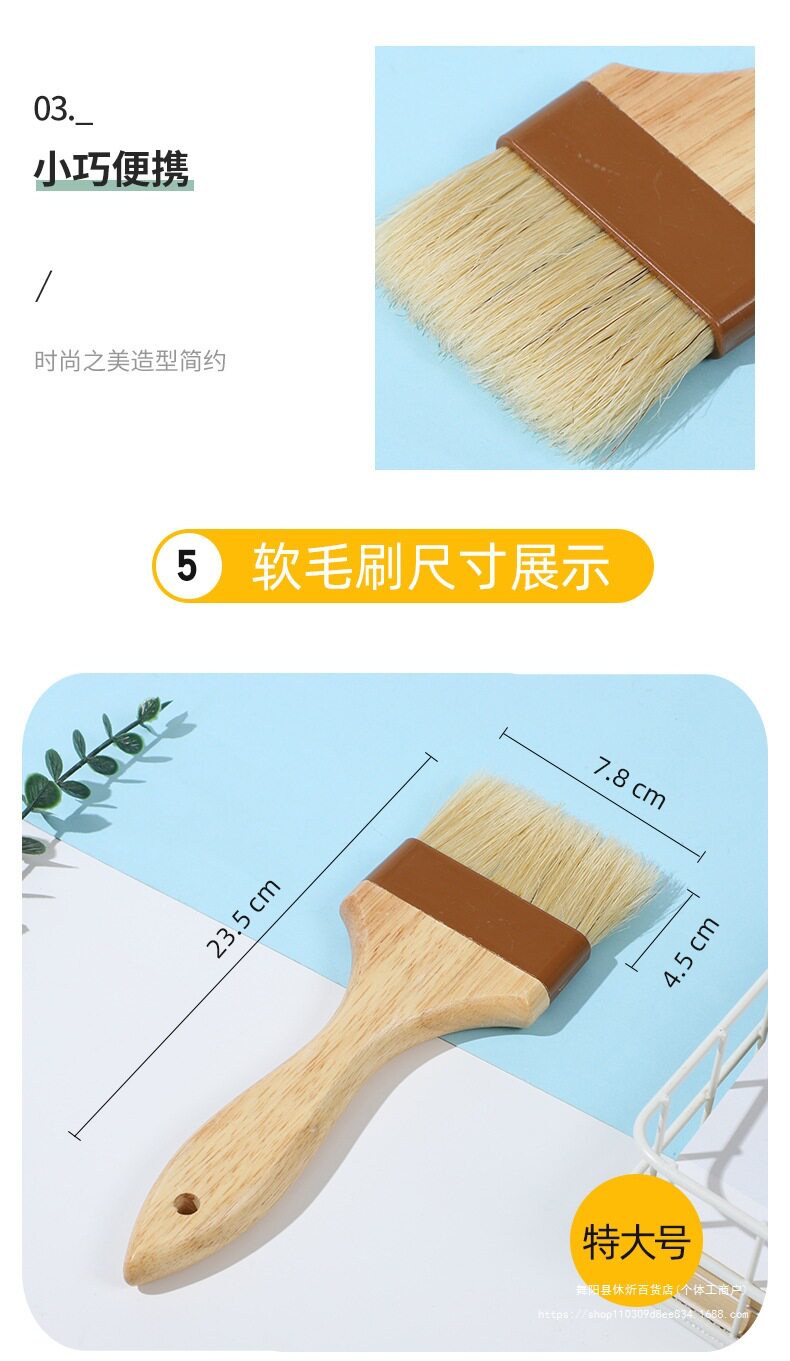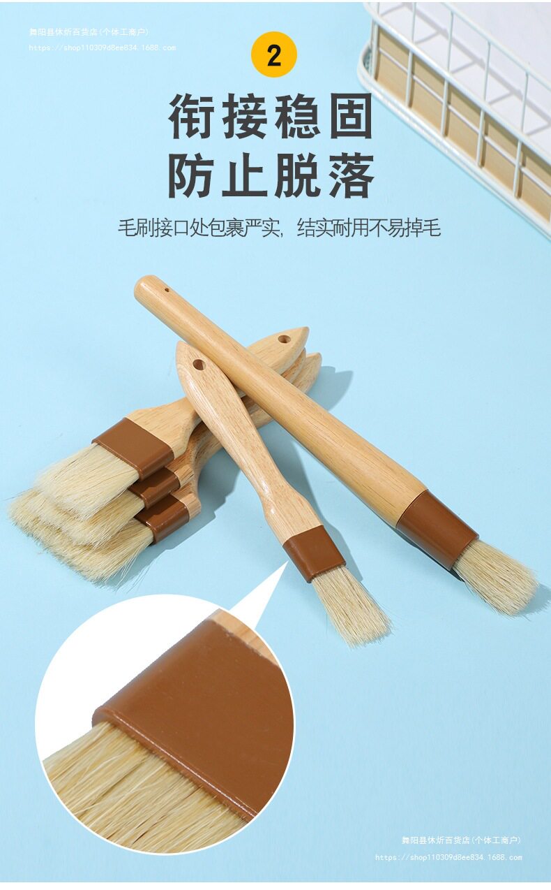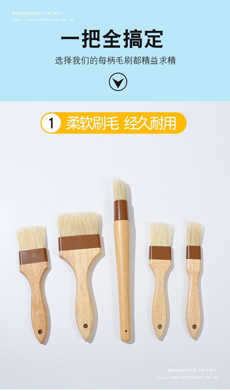 Multi-Specification Barbecue Brush for Cake and Biscuit Brush, Rubber Wood Handle Brush, Oil Brush, Baking Tool, Kitchen Brush, Oil Brush