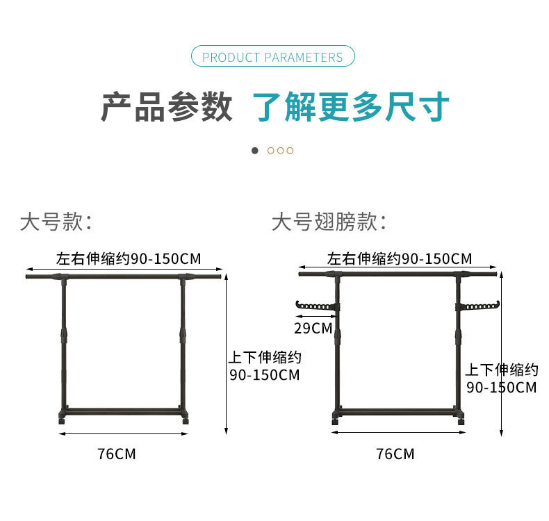 | Color | New fixed single pole 60 long (size is too small),New telescopic 68cm long (height adjustable),New telescopic 68 long (height adjustable) + wheel,New 68 length and height adjustable + 1 towel rack,The new 85 is retractable and 150 long (large size recommended),New 85 retractable 150 long + wheel,Newly upgraded single-pole 2-layer storage rack (retractable up, down, left, and right),[strong load-bearing] double pole comfortable model,[strong load-bearing] double pole comfort model + wheels,[recommended + strong load-bearing] double pole upgraded model + 2-layer storage rack,Double pole upgraded model + 2-layer storage rack + wheels,[recommended + strong load-bearing] double pole luxury model + 3-layer storage rack |