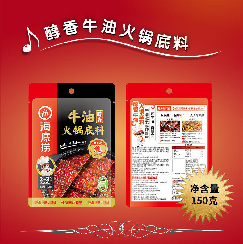 | Packaging specifications | Haidilao mellow butter hot pot base spicy flavor 150g,Haidilao hot pot dipping sauce 120g spicy flavor,Haidilao hot pot dipping sauce 120g original flavor |