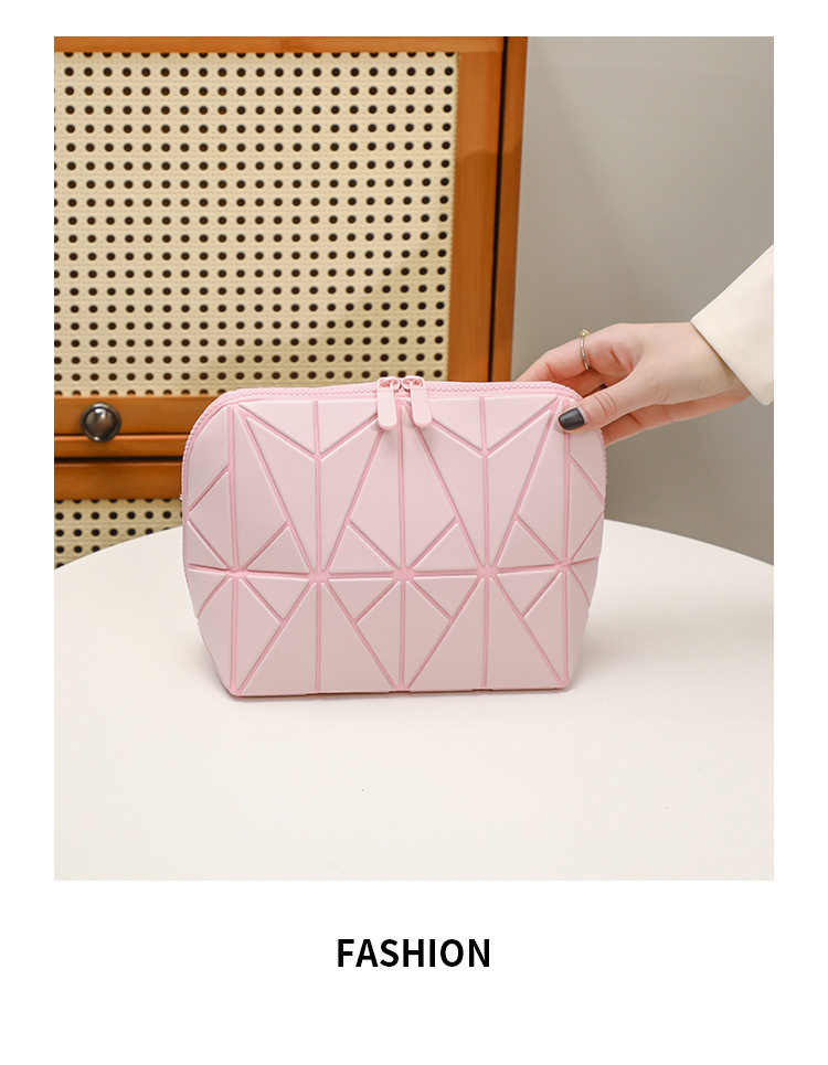 2025 New Geometric Diamond Cosmetic Bag Women's Large Capacity Partitioned Travel Commuting Shell Bag Striped Storage Bag
