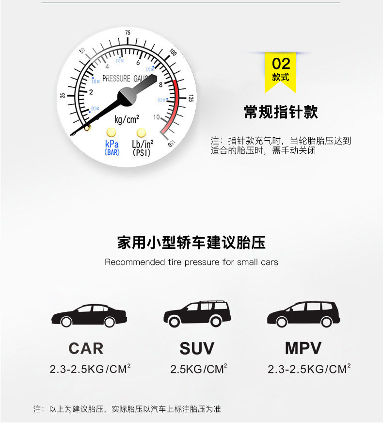 | Additional features | Lighting,Tire pressure gauge,Warning light |