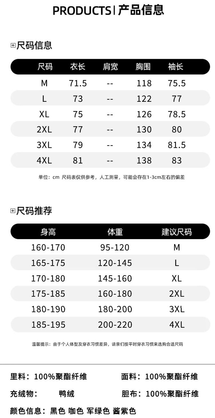 | Down filling amount | 150g (inclusive)-200g (exclusive) |
