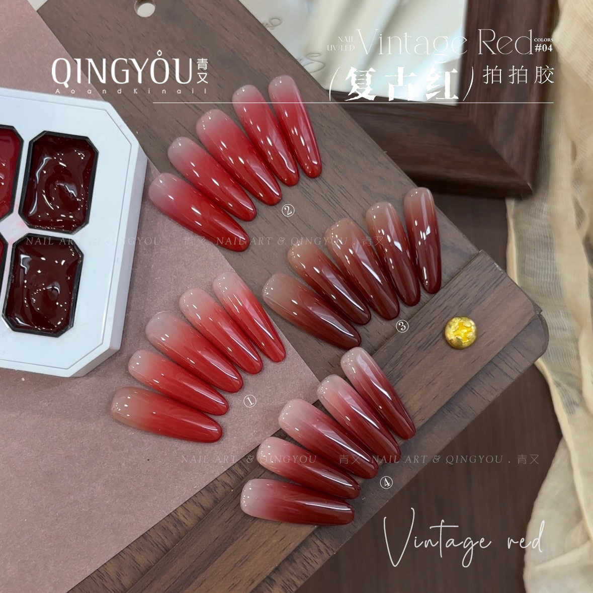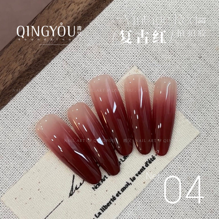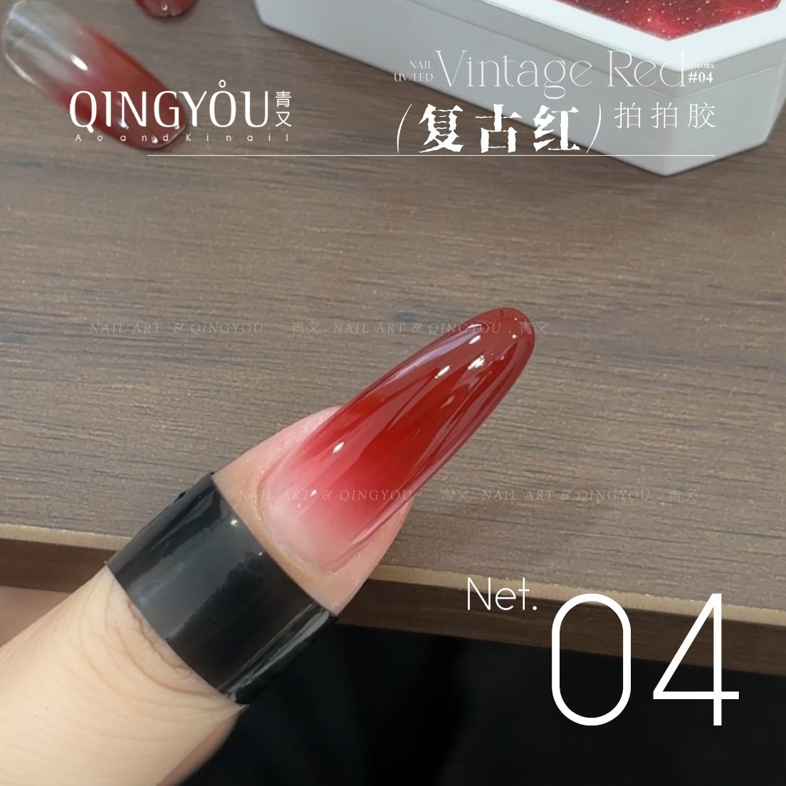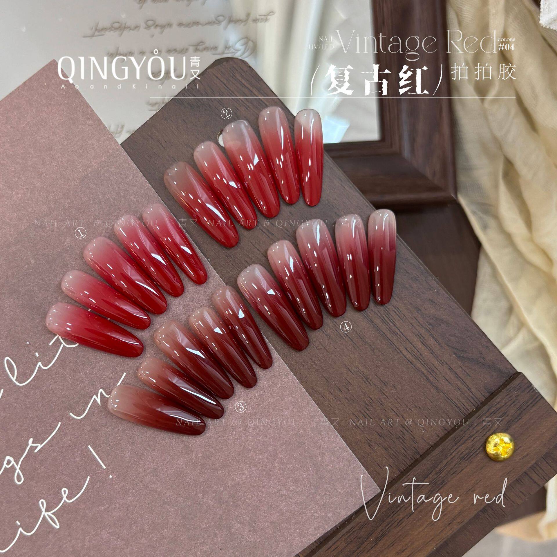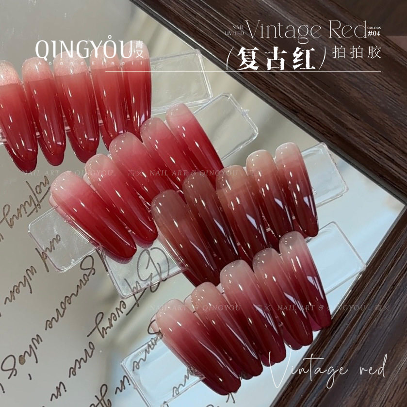 Qingyou's New Solid Four-Square Grids Retro Red Pat Glue Series Highly Saturated Gradient Whitening Nail Polish Glue