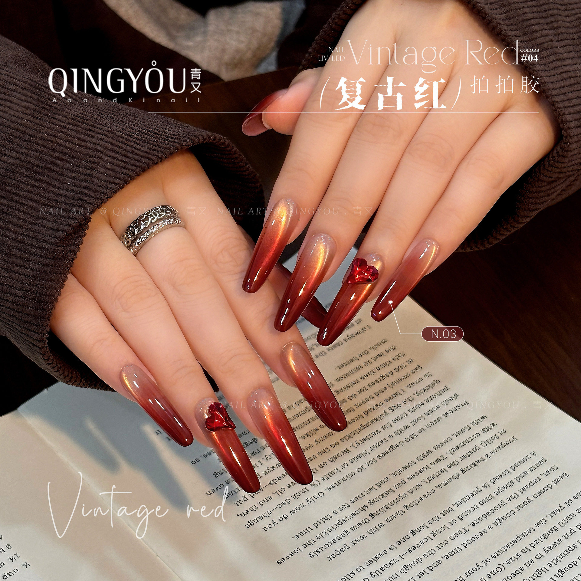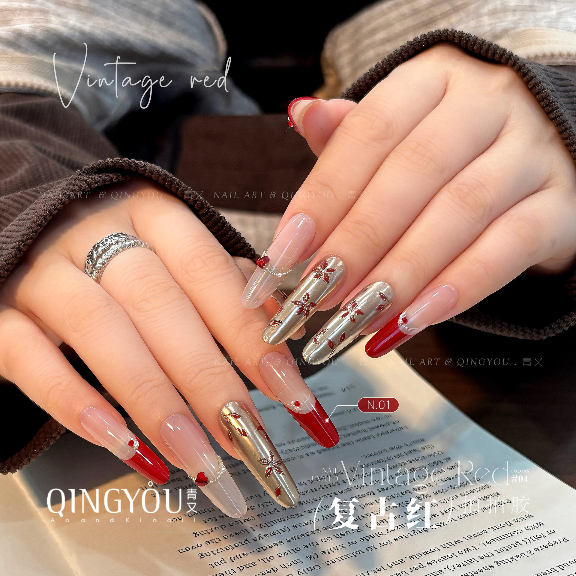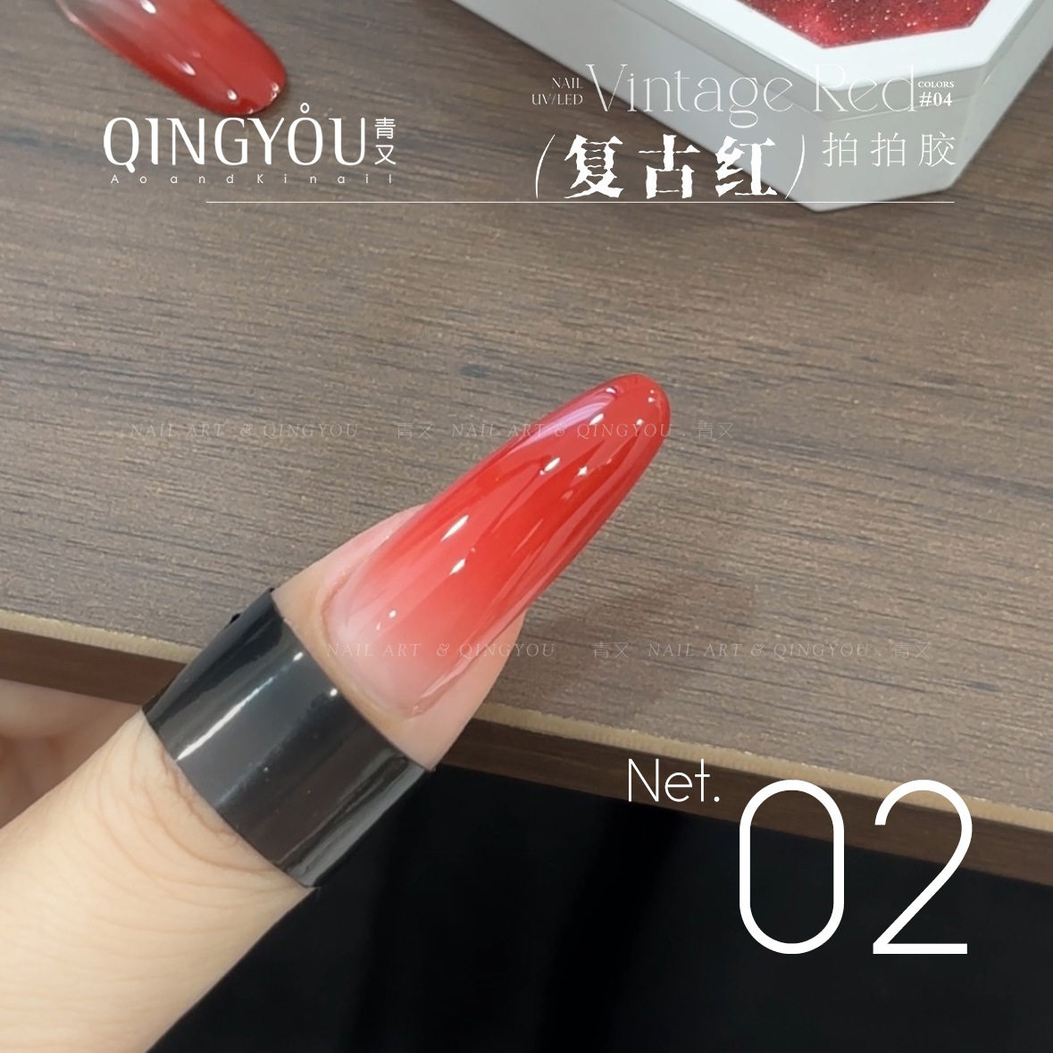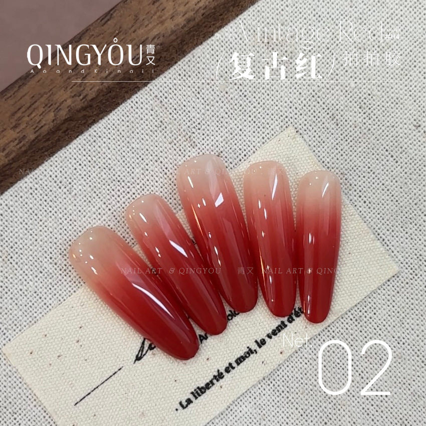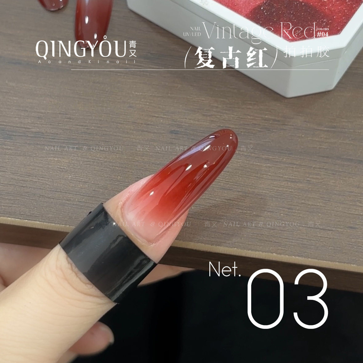 Qingyou's New Solid Four-Square Grids Retro Red Pat Glue Series Highly Saturated Gradient Whitening Nail Polish Glue