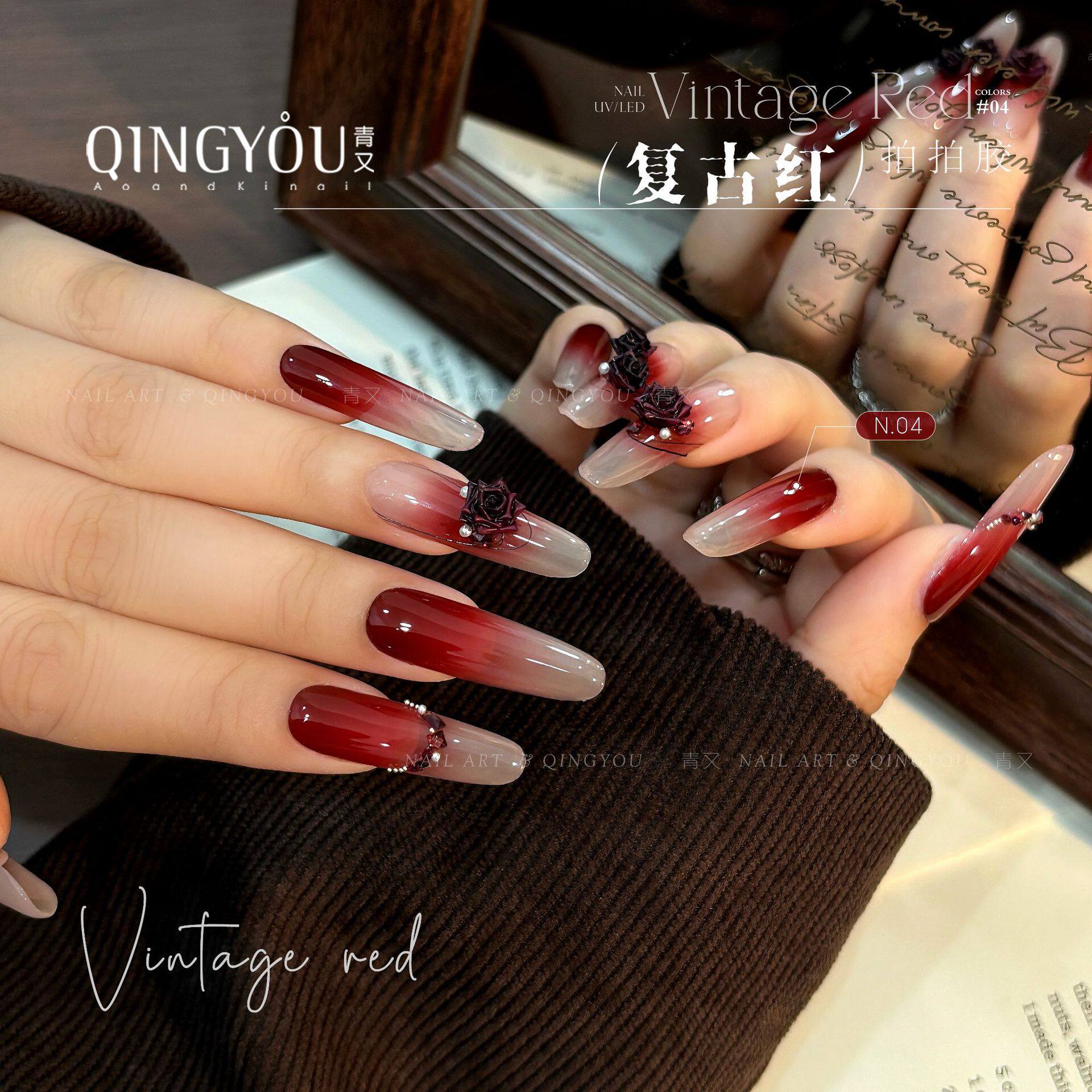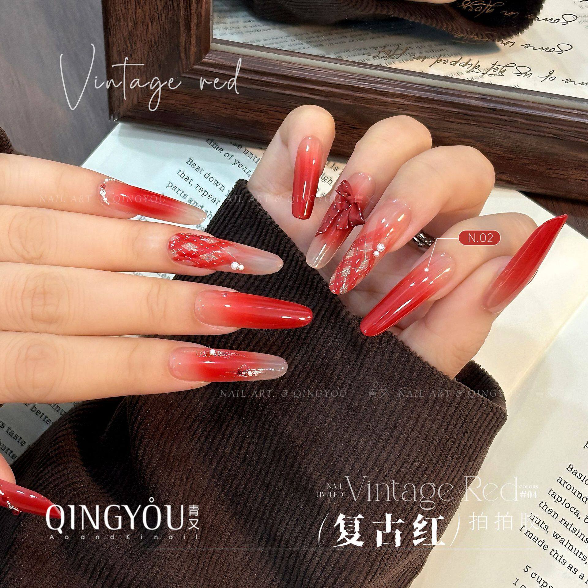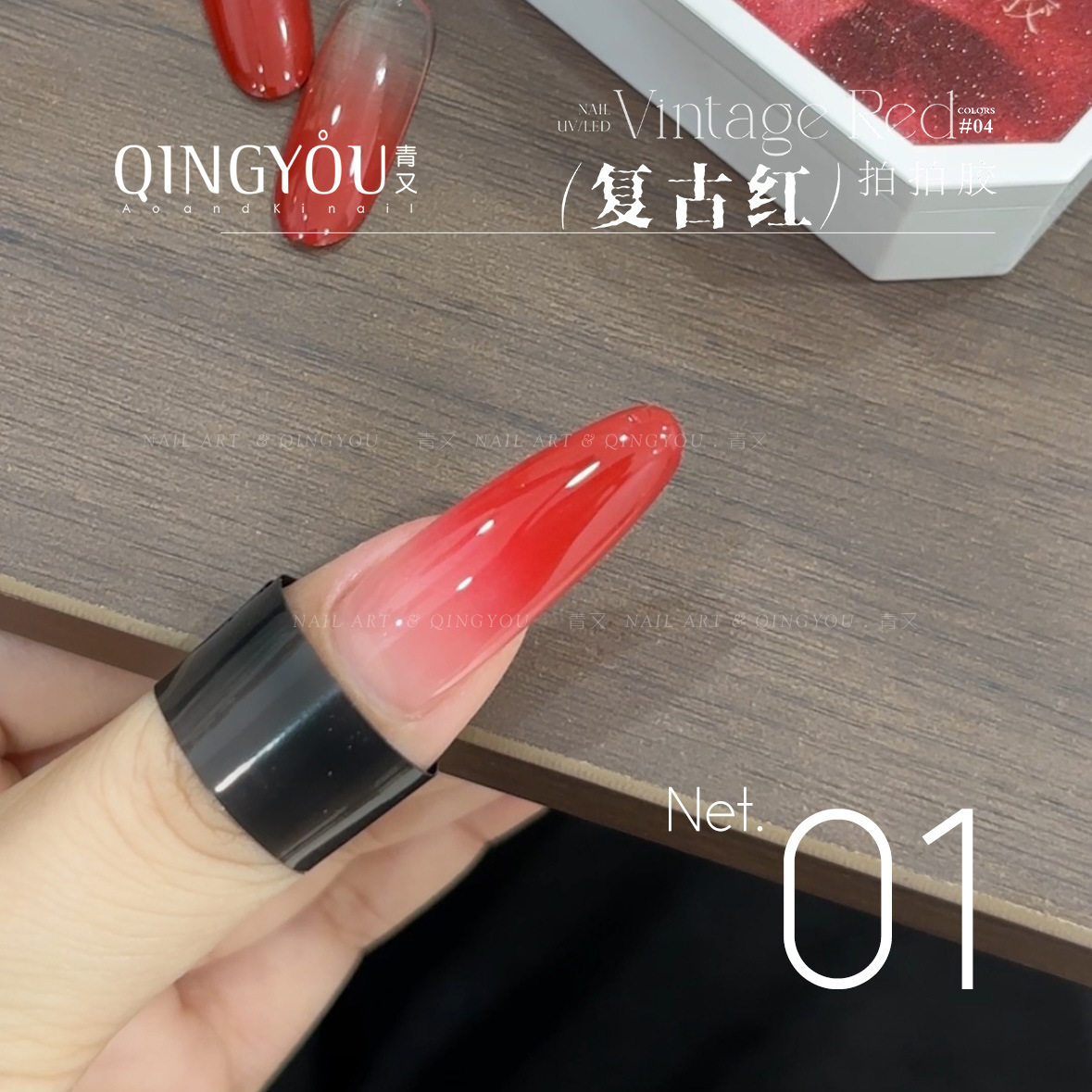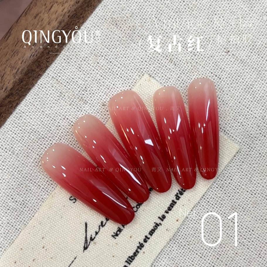 Qingyou's New Solid Four-Square Grids Retro Red Pat Glue Series Highly Saturated Gradient Whitening Nail Polish Glue
