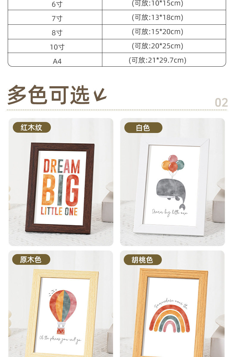 | Frame size | 5inch (inner diameter 8.9*12.7) pure table,5inch (inner diameter 8.9*12.7) can only be hung on the wall,6inch (inner diameter 10.1*15.2) pure swing table,6inch (inner diameter 10.1*15.2) can only be hung on the wall,7inch (inner diameter 12.7*17.8) pure table,7inch (inner diameter 12.7*17.8) can only be hung on the wall,8inch (inner diameter 15.3*20.3) pure table,8inch (inner diameter 15.3*20.3) can only be hung on the wall,10inch (inner diameter 20.3*25.4) pure table,10inch (inner diameter 20.3*25.4) can only be hung on the wall,A4 (inner diameter 21*29.7) pure table,A4 (inner diameter 21*29.7) can only be hung on the wall,A3 (inner diameter 42*29.7) can only be hung on the wall |