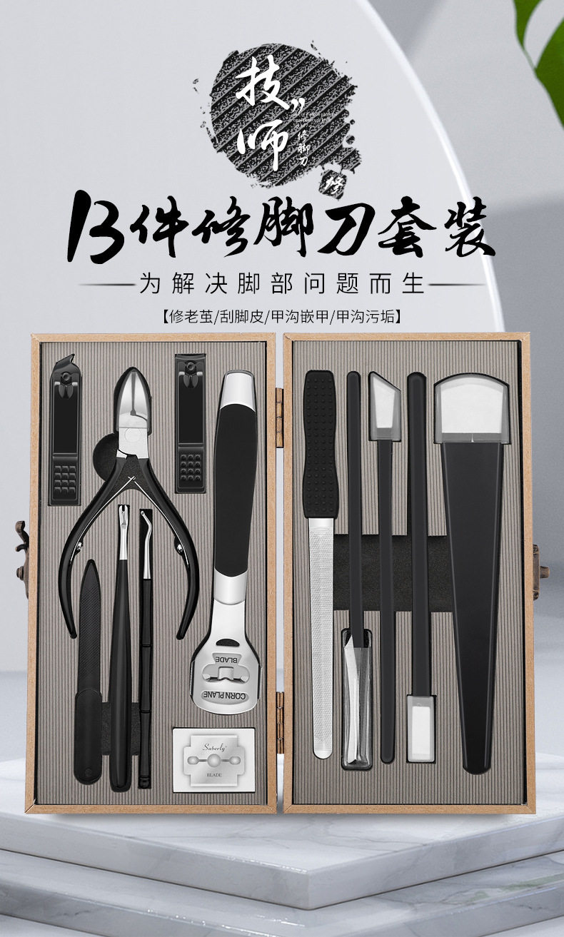 Manufacturer's Ready-Made Yangzhou Stainless Steel Pedicure Knife 13-Piece Set to Remove Calluses and Dead Skin, Manicure Groove Nail Scissors Tool Set