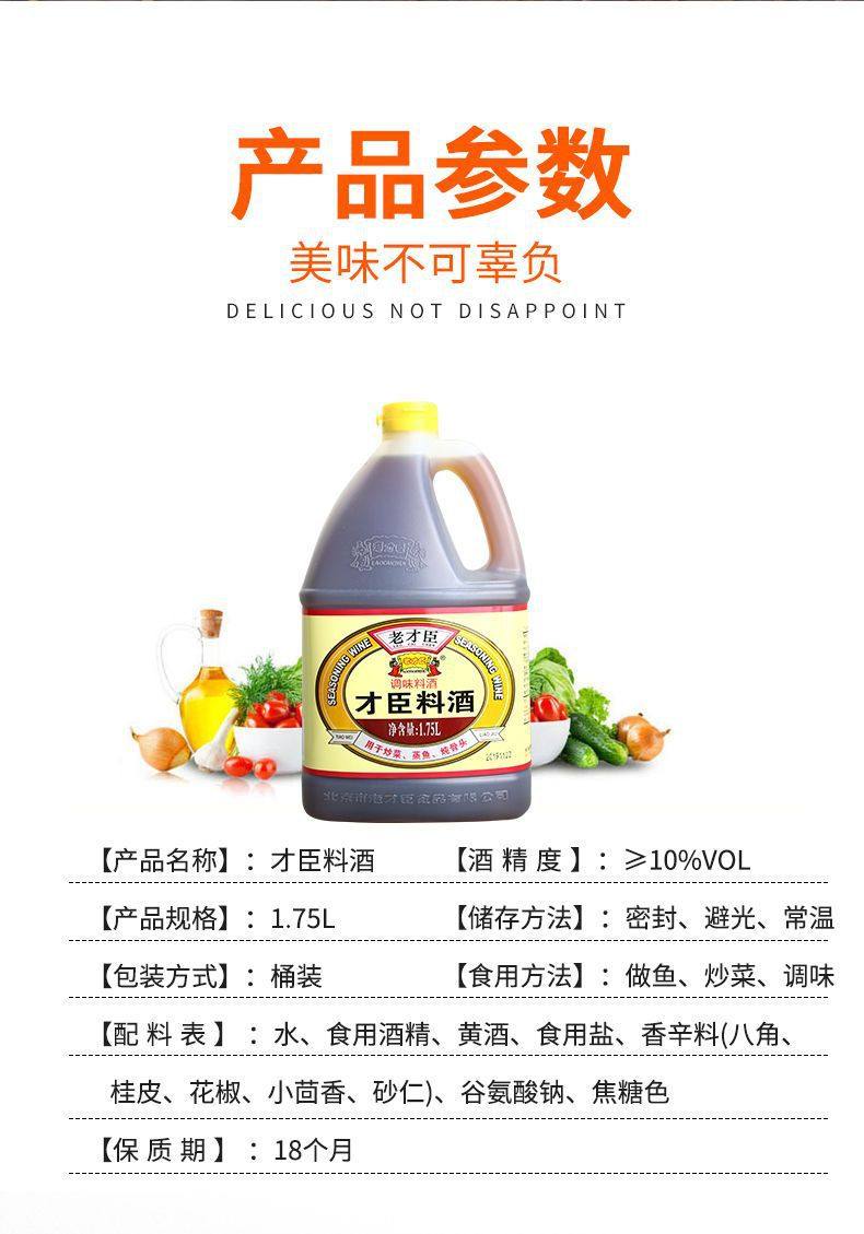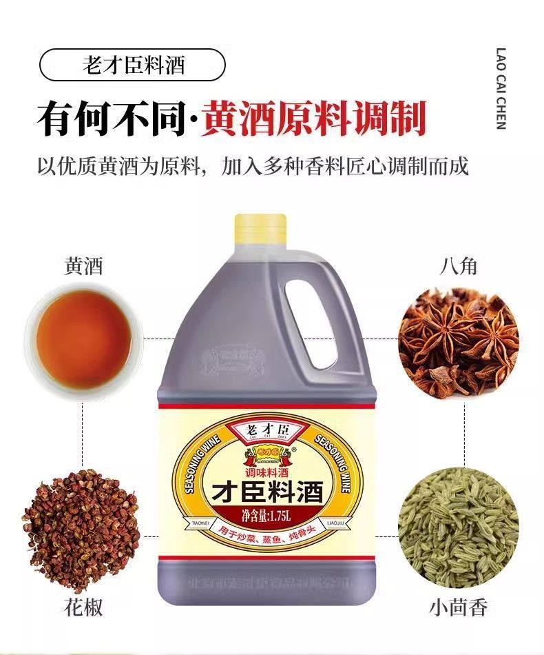 | Packaging specifications | Lao caichen cooking wine 1.75l*1 barrel |