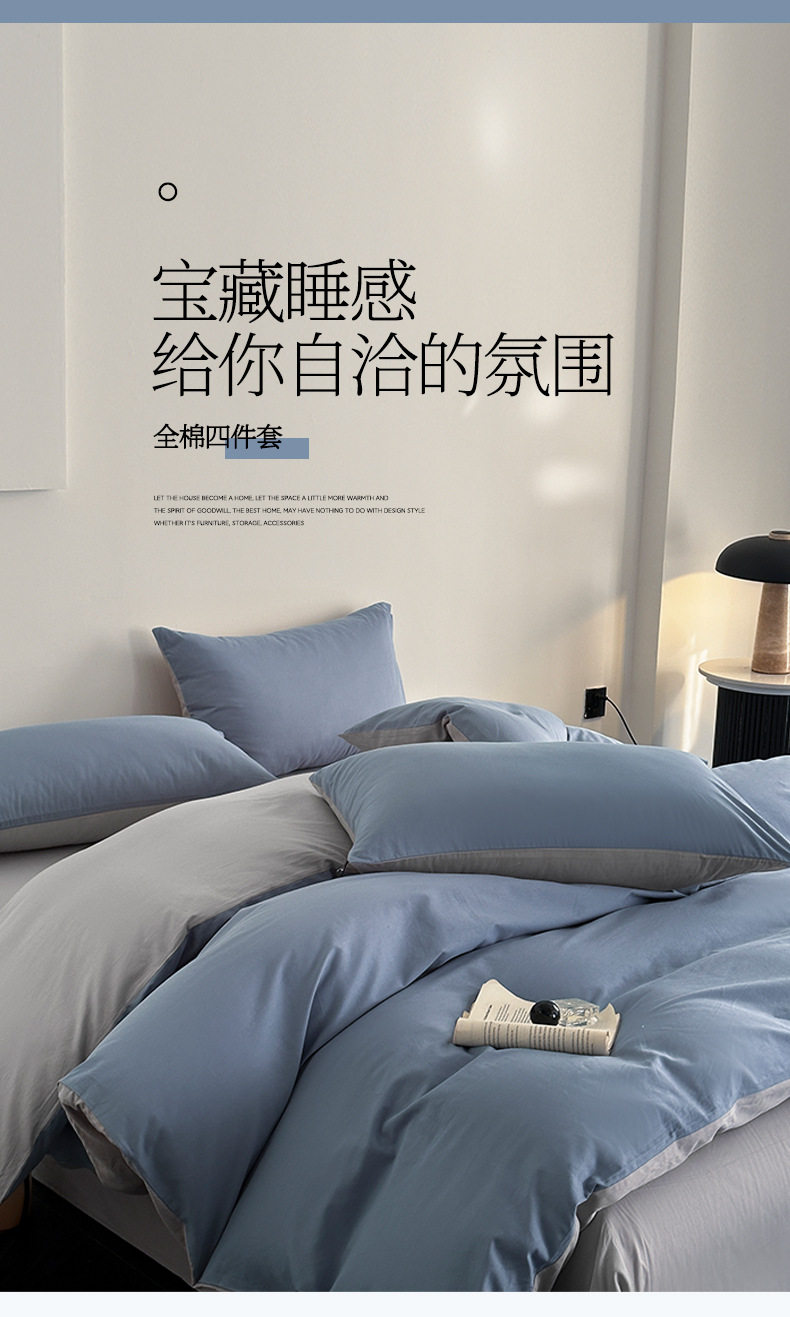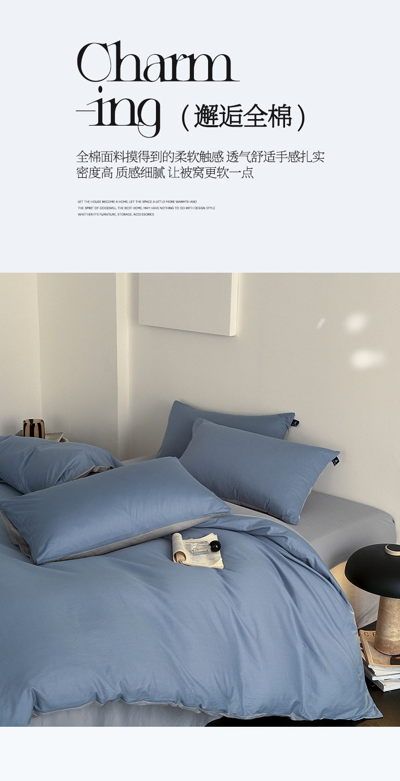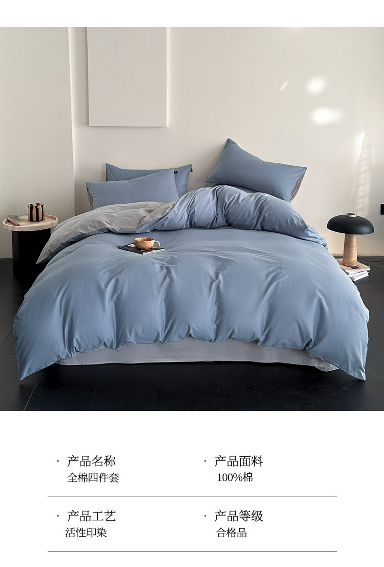 Pure Cotton Four-Piece Set, Class a Maternal and Infant Grade Pure Color Cotton Quilt Cover, Bed Sheets, Fitted Bed Sheets, Bedding