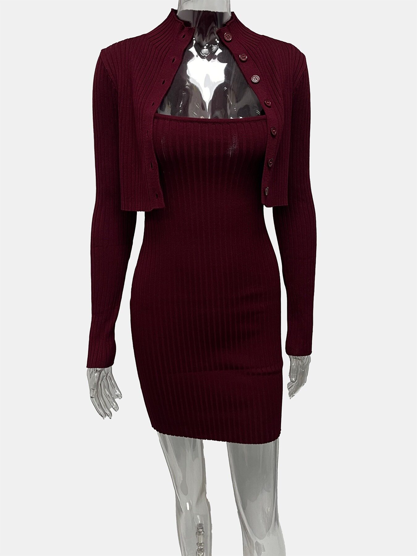 European and American Export 2025 Autumn and Winter New Long-Sleeved Short Cardigan Suspender Waist Slim Elegant Knitted Two-Piece Set