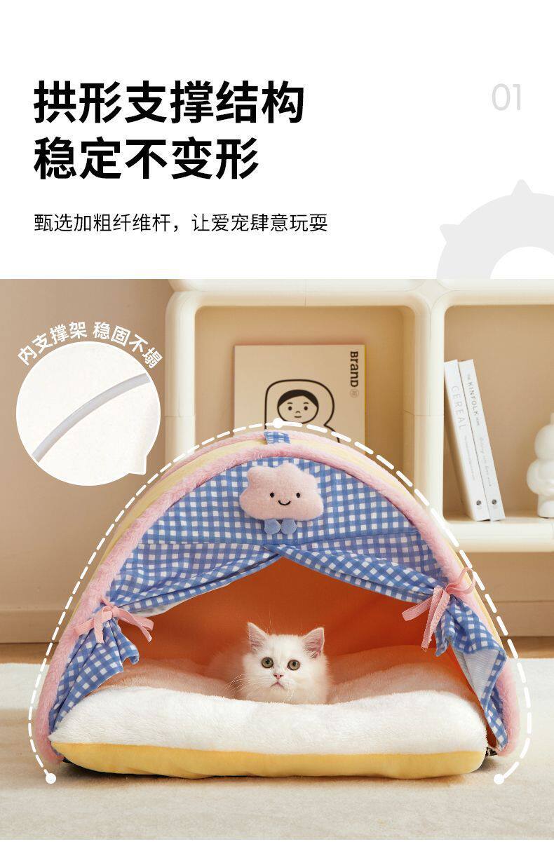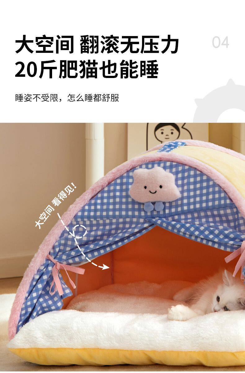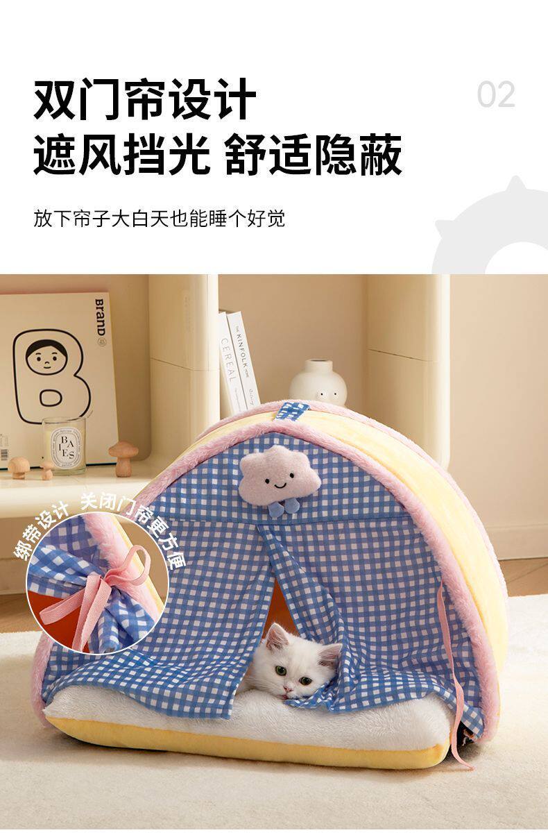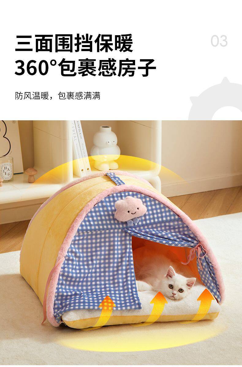 Cat Nest, Thickeneded and Warm Tent in Winter, Enclosed and Safe, Removable and Washable Dog Bed, Suitable for All Seasons, Pet Kitten