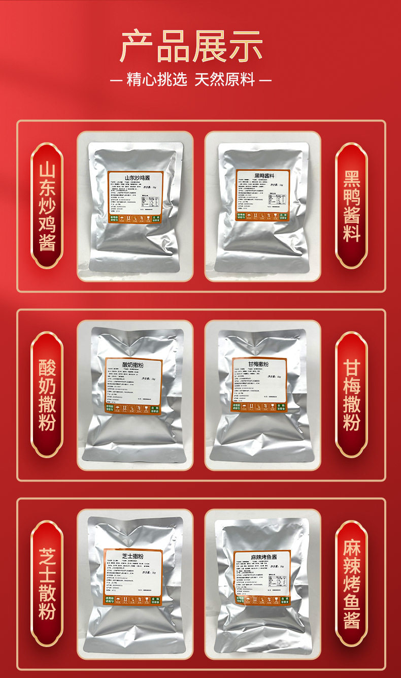 | Raw materials and ingredients | Cumin, chili, etc |